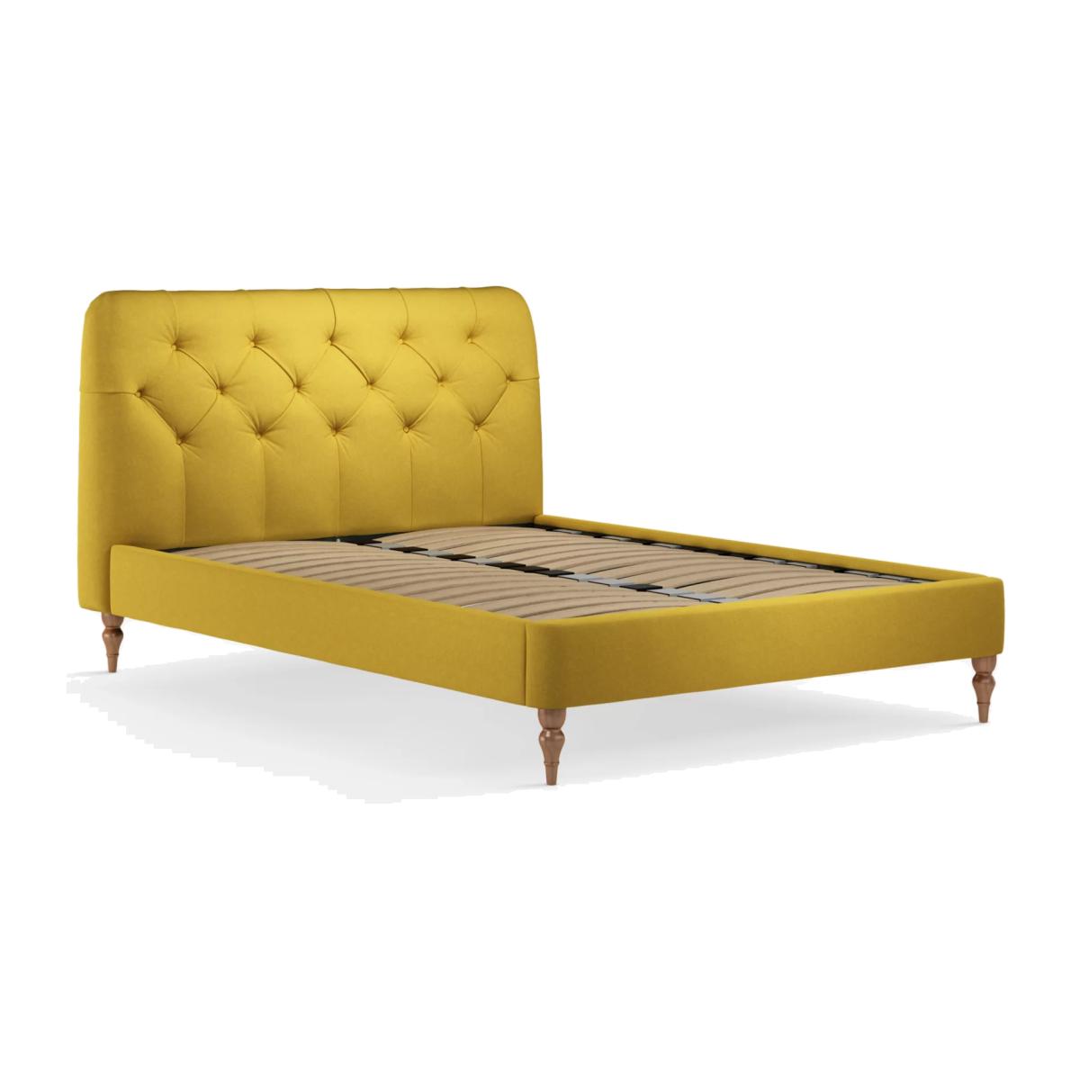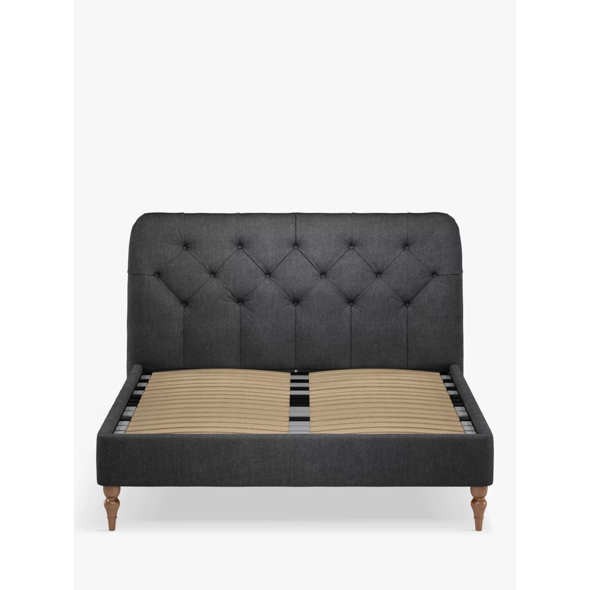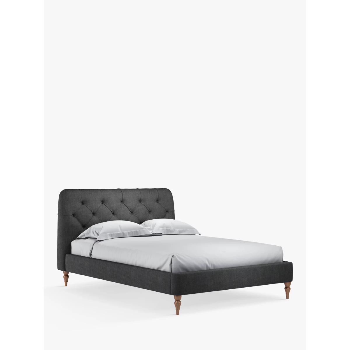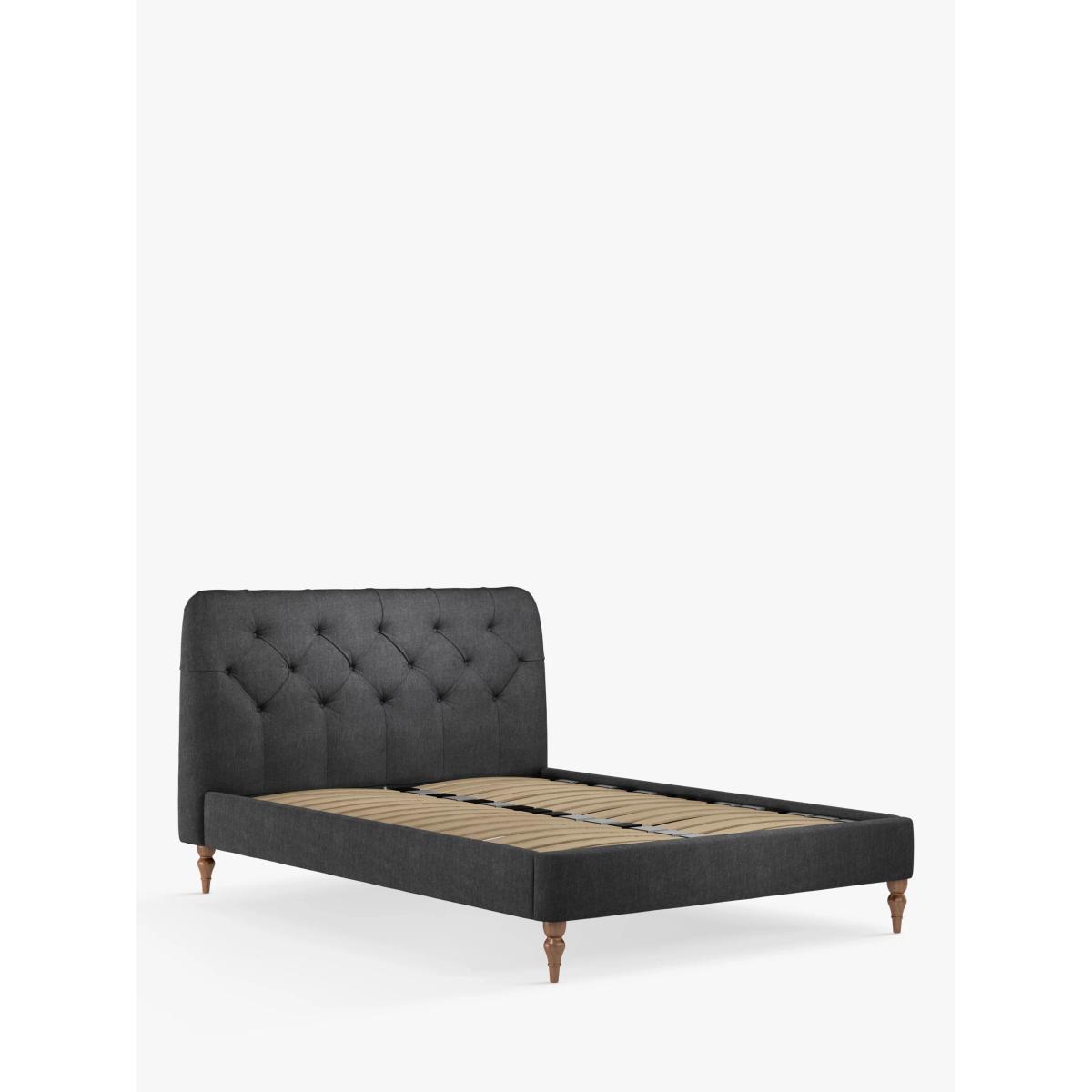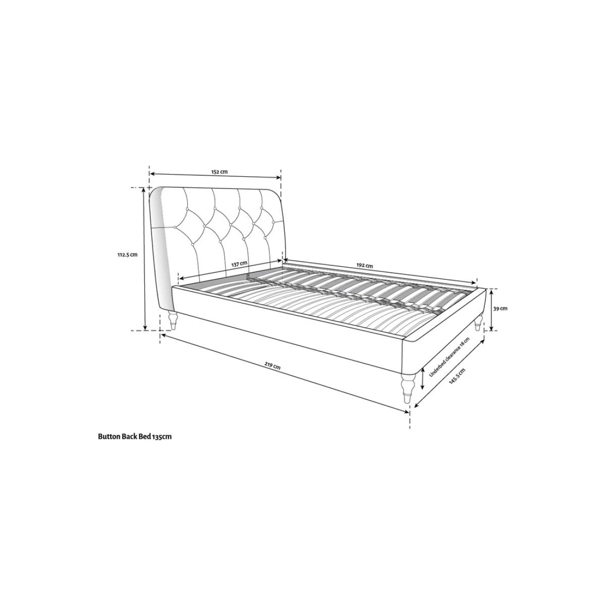 The timeless design of our Button Back bed frame makes it a versatile choice and the subtly curved padded headboard gives a modern edge. We've added button detailing to the headboard and supported the frame with low, turned legs made from high quality wood. There are also supportive sprung slats in the base. Assembly service Our assembly service is included in the selling price for our Made to Order beds. At the same time as delivery, we'll build your new bed and place it in your room of choice. We'll take away all of the packaging too, for recycling. Built with Smart SlatsThis bed frame is designed with wider slats at the shoulders, lumbar and feet. They provide maximum support for you and your mattress so that you experience perfect spinal alignment while you sleep. The standard slat caps are black so we have added grey slat caps to ensure that you know where to place the wider slats. Choose from one of our fabrics: Our Band A fabric, Cotton Effect has a laid-back and fine-textured look that looks like cotton, but it's made from durable polyester fibres Our Band A fabric, Brushed Tweed is made with a brushed herringbone weave that has a cosy wool look and soft 'peach skin' feel. It's really hard-wearing and a brilliant all-rounder Our Band A fabric, Soft Weave has a casual cotton look with a brushed finish that's soft-to-touch and a subtle texture that's created by slight variations in the tones of the woven fibres Our Band B fabric, Soft Touch Chenille is made from a blend of fibres that give it a super-soft feel and added durability Want to see it first? You may want to see and get a feel for the furniture before ordering. Pop into one of our shops to see the full range of colours and fabrics on offer. We'll be able to tell you where the range you'd like to view is on display.