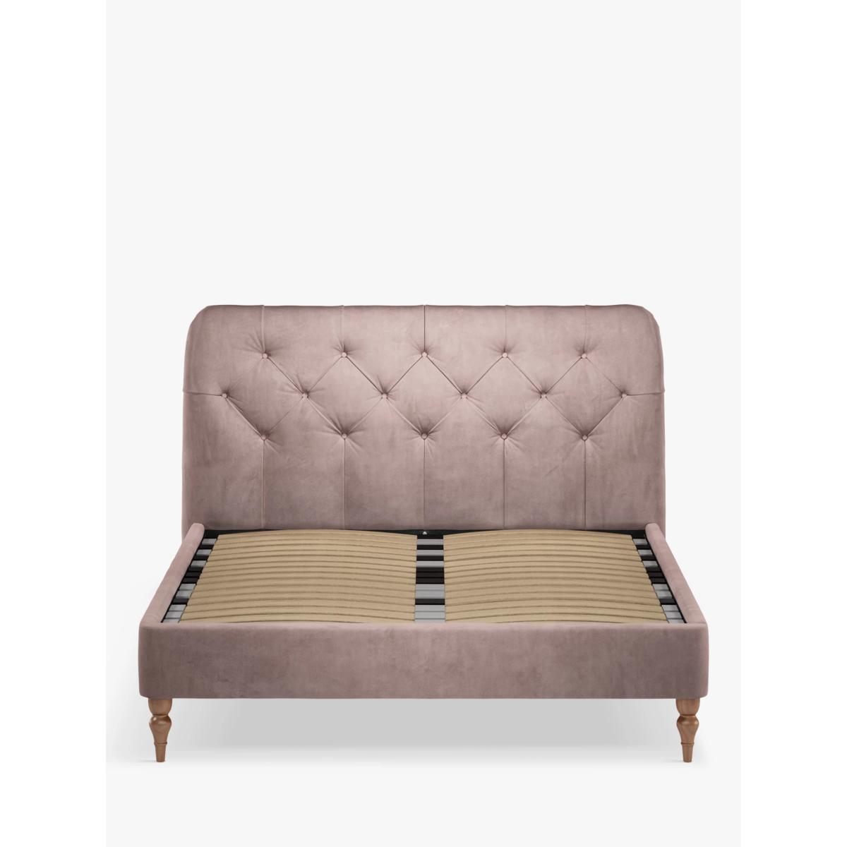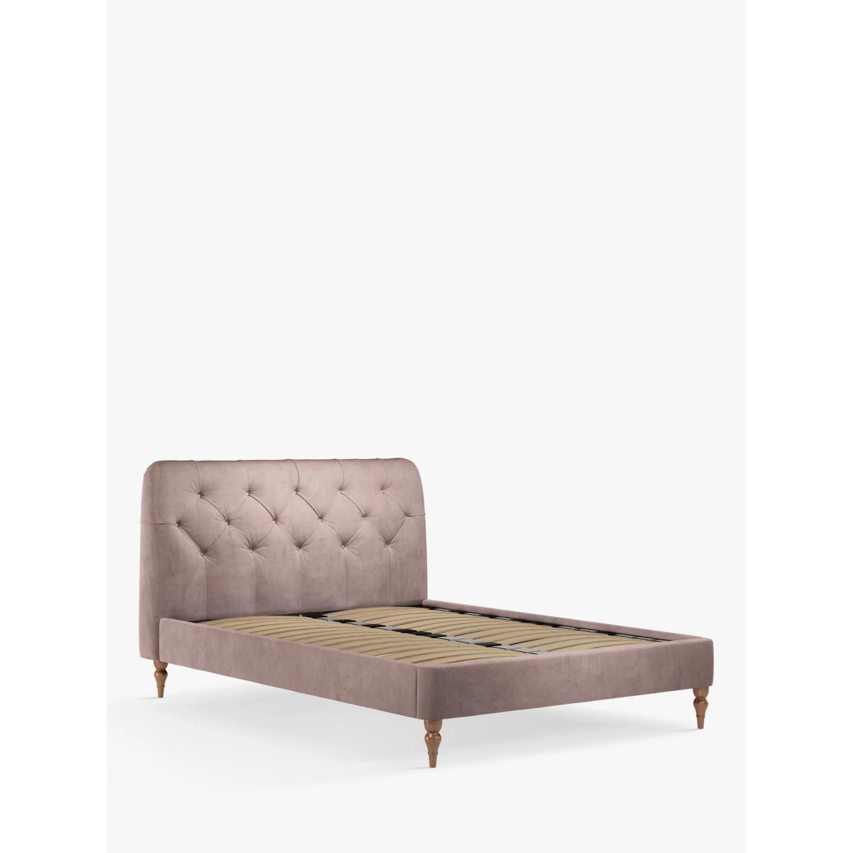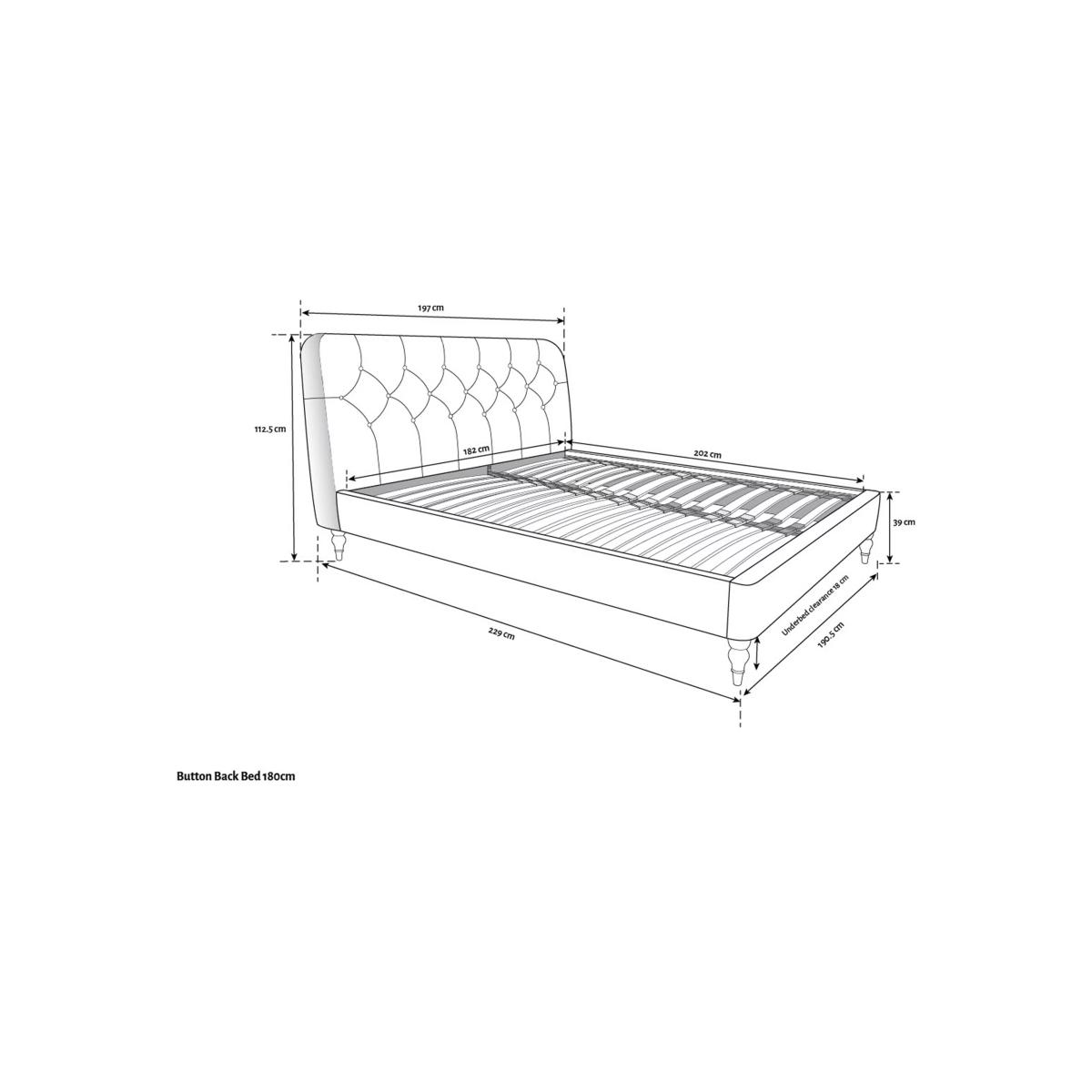 The timeless design of our Button Back bed frame makes it a versatile choice and the subtly curved padded headboard gives a modern edge. We've added button detailing to the headboard and supported the frame with low, turned legs made from high quality wood. There are also supportive sprung slats in the base. Assembly service Our assembly service is included in the selling price for our Made to Order beds. At the same time as delivery, we'll build your new bed and place it in your room of choice. We'll take away all of the packaging too, for recycling. Built with Smart SlatsThis bed frame is designed with wider slats at the shoulders, lumbar and feet. They provide maximum support for you and your mattress so that you experience perfect spinal alignment while you sleep. The standard slat caps are black so we have added grey slat caps to ensure that you know where to place the wider slats. Choose from one of our fabrics: Our Band A fabric, Brushed Tweed is made with a brushed herringbone weave that has a cosy wool look and soft 'peach skin' feel. It's really hard-wearing and a brilliant all-rounder Our Band A fabric, Soft Weave has a casual cotton look with a brushed finish that's soft-to-touch and a subtle texture that's created by slight variations in the tones of the woven fibres Our Band B fabric, Soft Touch Chenille is made from a blend of fibres that give it a super-soft feel and added durability Our Band B fabric, Deep Velvet will bring warmth and luxury to your bedroom. It's a short pile velvet with a soft, plush feel Want to see it first? You may want to see and get a feel for the furniture before ordering. Pop into one of our shops to see the full range of colours and fabrics on offer. We'll be able to tell you where the range you'd like to view is on display.
