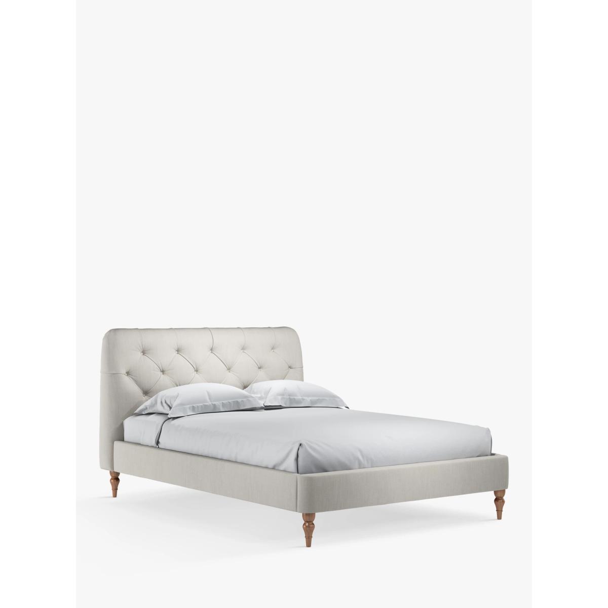 The design of our Button Back bed frame is timeless and sophisticated. We've added button detailing to the headboard and supported the frame with low, turned legs made from high quality wood. Sprung slats in the base provide additional support for you and your mattress. Fabric: Our Band B fabric, Relaxed Linen gives you the fine texture of cotton, the durability of synthetic fibres and the laid-back look of linen Built with Smart Slats This bed frame is designed with wider slats at the shoulders, lumbar and feet. They provide maximum support for you and your mattress so that you experience perfect spinal alignment while you sleep. The standard slat caps are black so we have added grey slat caps to ensure that you know where to place the wider slats. Want to see it first? You may want to see and get a feel for the furniture before ordering. Pop into one of our shops to see the full range of colours and fabrics on offer. We'll be able to tell you where the range you'd like to view is on display.
