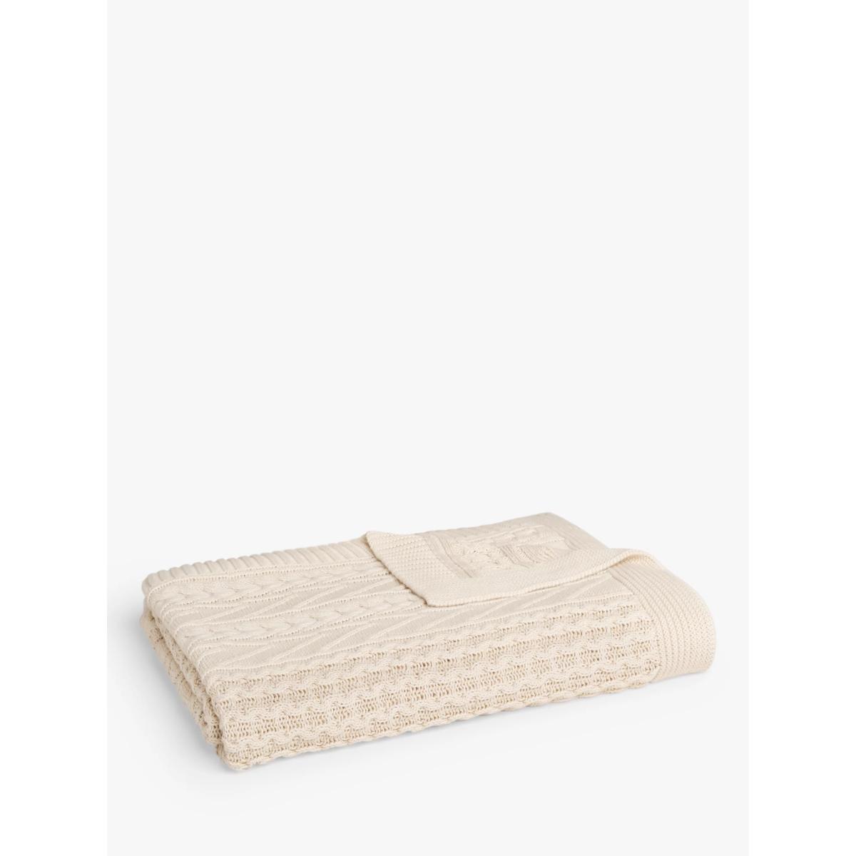 John Lewis Cable Knit Cotton Throw, Cream