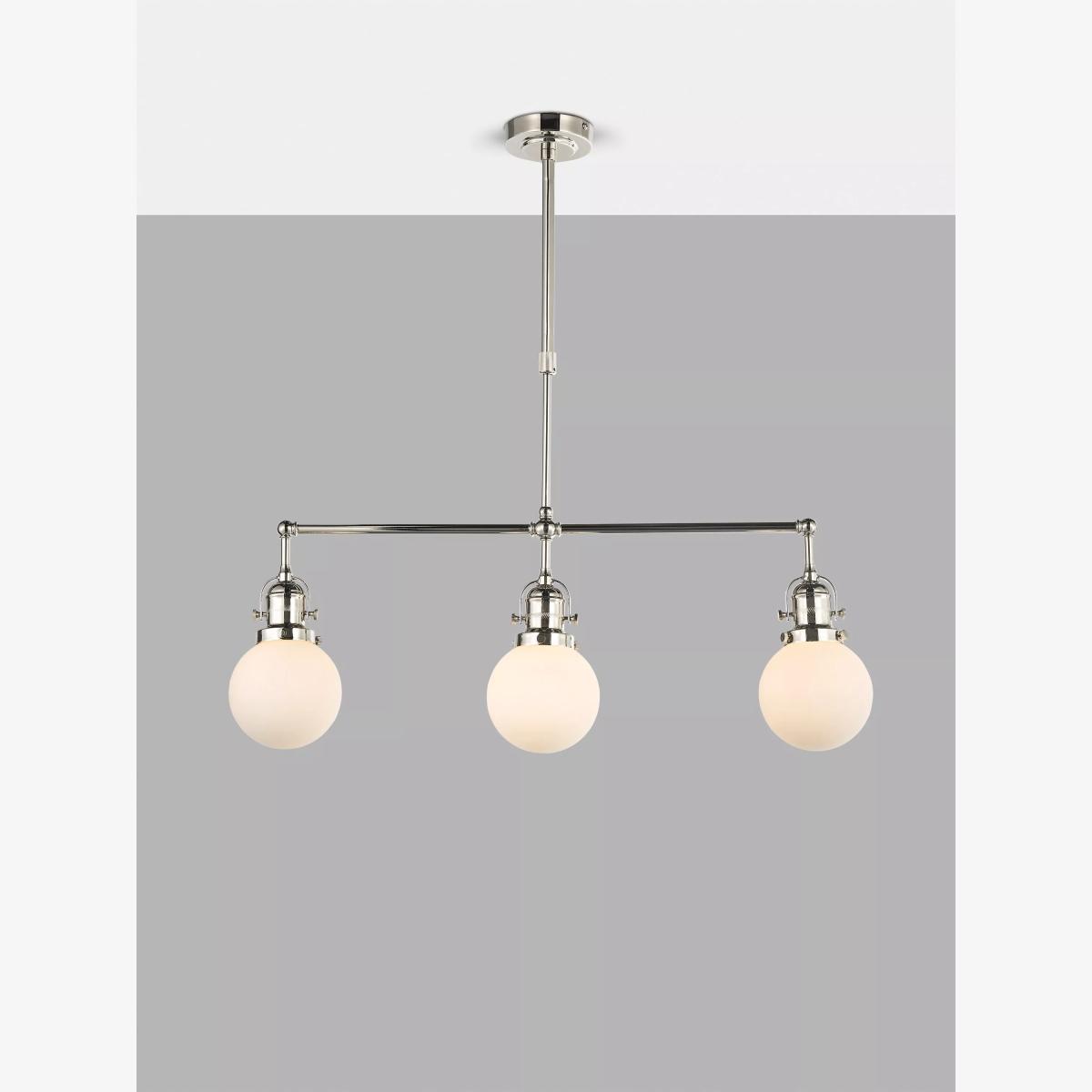Our exciting new John Lewis Studio design is inspired by French Cafés. This diner ceiling light has three opal glass shades for plenty of light and polished chrome metal with heritage detailing. This ceiling light works well over a kitchen island or dining table to create personality.