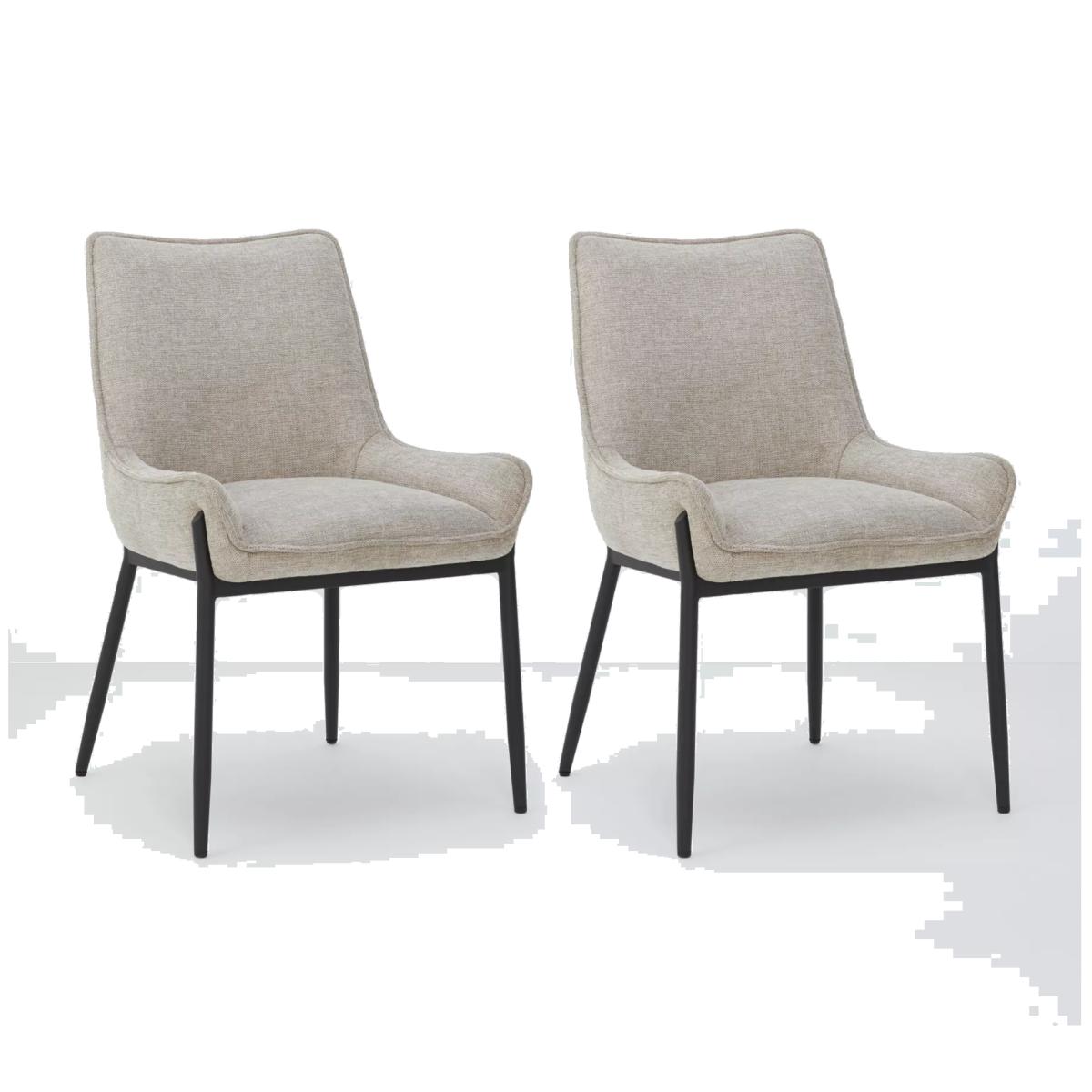 I’m a fan of these Calgary chairs for their clean lines and soft sand upholstery, which bring a relaxed yet refined feel to a dining space. The slender black metal legs add a contemporary edge, making them equally at home in a Scandi-inspired scheme or a pared-back industrial loft. Their neutral tone means they won’t compete with bolder furniture or patterned wallpaper, but rather anchor the room with subtle warmth. For styling, pair them with a light oak or marble-top table and layer in natural textures - a jute runner or linen tablecloth works well. If you want to introduce colour, drape a muted cushion or tailored throw over the back, and balance the look with matte ceramics or simple pendant lighting above.