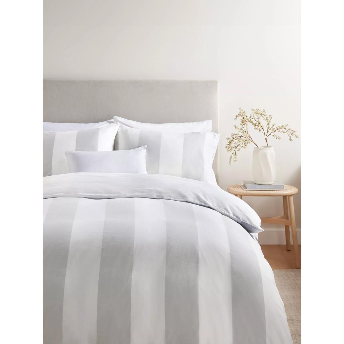 A wide stripe in subtle white and grey tones. Perfect for a classic and relaxed look in your sleep space. It's made from 100% washed cotton fabric which is naturally breathable, helping keep you cool and comfortable throughout the night. Please note that pillowcases are sold singly and not as part of a set. Better Cotton By choosing our cotton products, you’re supporting our investment in Better Cotton’s mission to help cotton communities survive and thrive while protecting and restoring the environment. Better Cotton Farmers are farmers who care for the environment and respect workers’ rights and wellbeing. This product is sourced via a system of mass balance and therefore may not contain Better Cotton. bettercotton.org/massbalance Bedding sizes To fit duvet/pillow size (cm) Standard pillowcase, L75 x W50cm Single duvet cover, L200 x W135cm Double duvet cover, L200 x W200cm King duvet cover, L220 x W225cm Super king duvet cover, L220 x W260cm Better Cotton By choosing our cotton products, you’re supporting our investment in Better Cotton’s mission to help cotton communities survive and thrive while protecting and restoring the environment. Better Cotton Farmers are farmers who care for the environment and respect workers’ rights and wellbeing. This product is sourced via a system of mass balance and therefore may not contain Better Cotton. bettercotton.org/massbalance