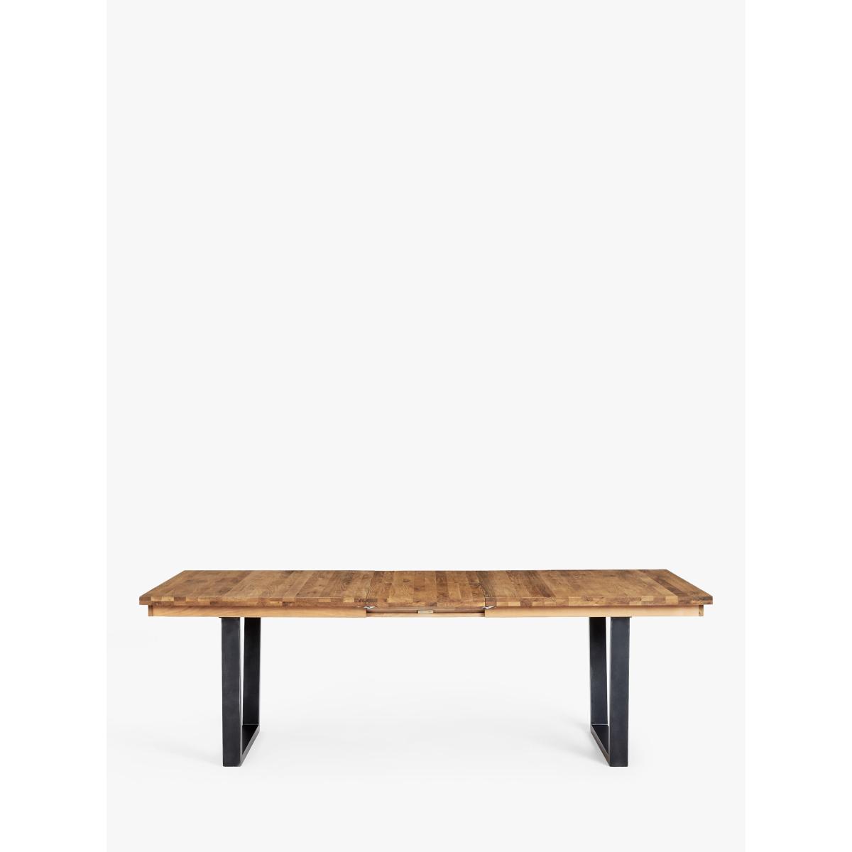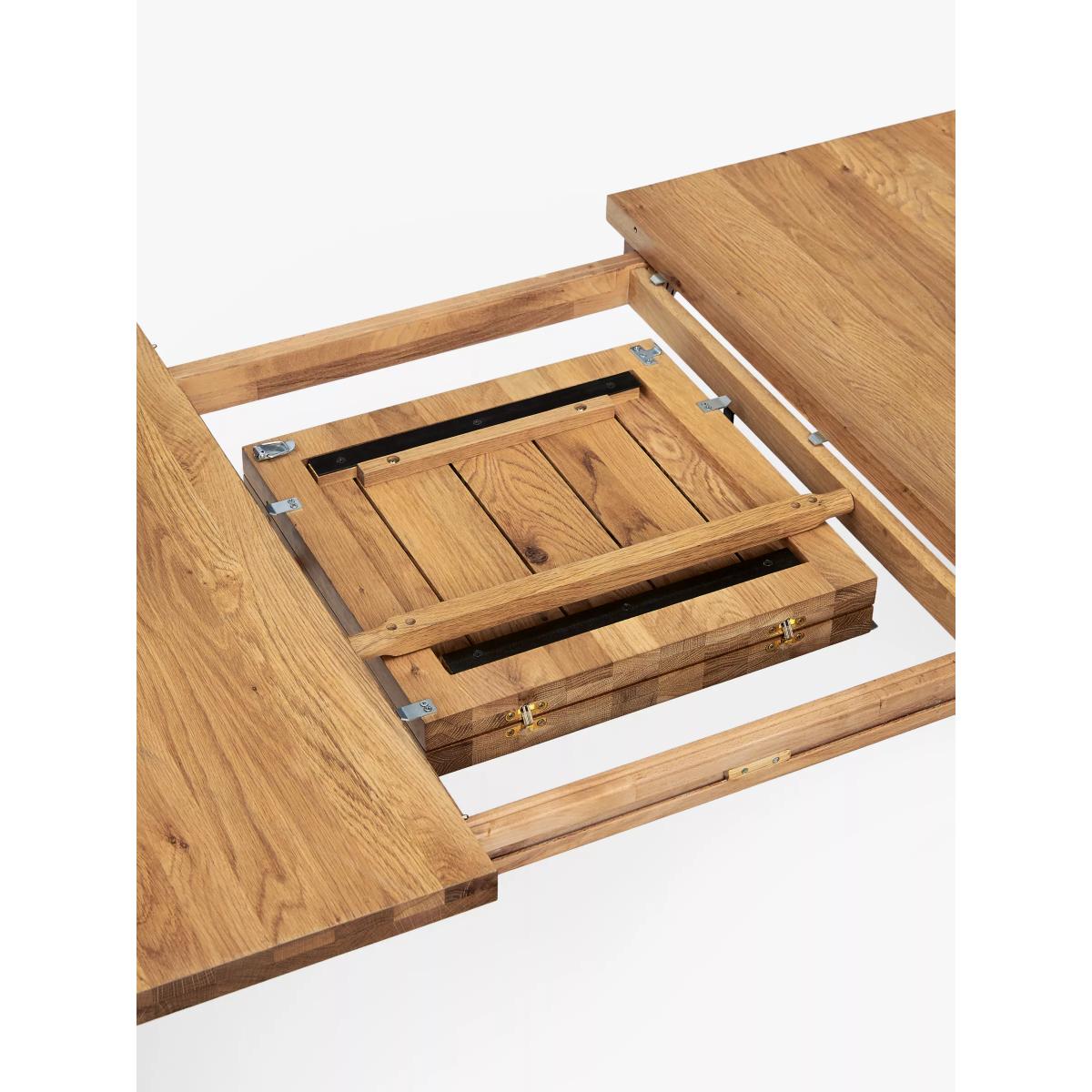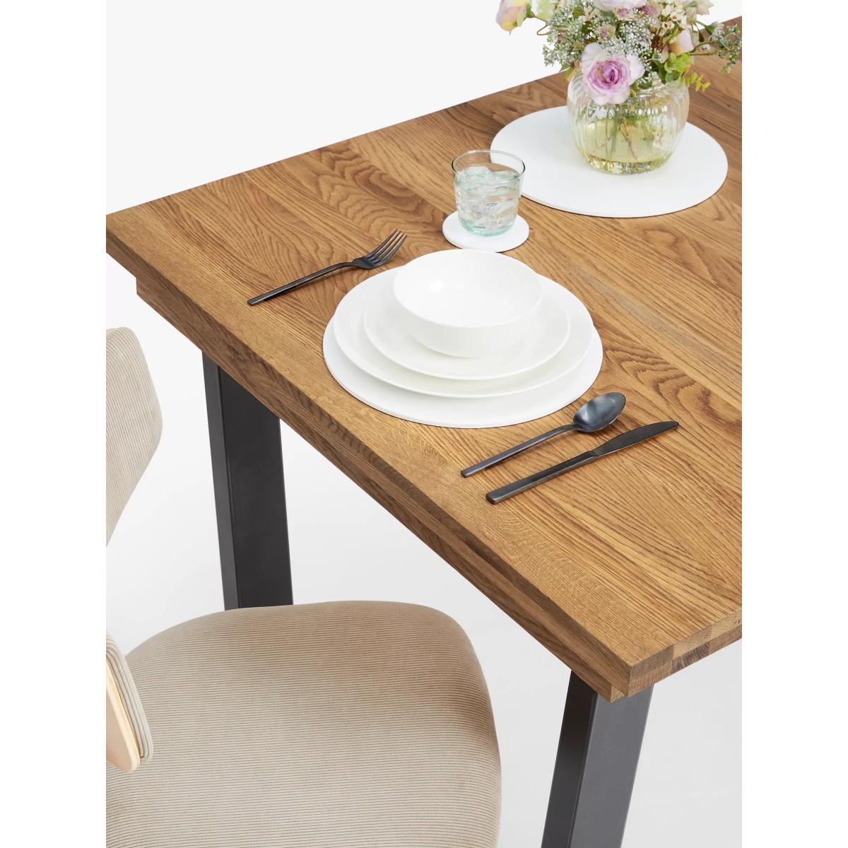 Made predominantly from solid American white oak, our Calia range of furniture has a natural, rustic look thanks to its wire-brushed, distressed finish. Each piece is made from individual wood slats that are carefully selected and sorted by skilled craftsman. They ensure that the natural pattern in the wood grain, even with its unique irregularities, uphold our design and quality standards, to offer an authentic and tactile look. This dining table has an extension in the centre to offer seating for up to ten diners. Supported by a robust, welded iron base that's finished with a durable lacquer, it has a striking and industrial-inspired aesthetic. Worth knowing Oak is a natural, living material, and part of its charm is that it develops over time. This means that surface splits may start to appear with the natural movement of the wood. Knots will vary in size and location and a subtle colour variation can also be expected. These distinctive qualities give the range a unique feel, as no two pieces will be exactly the same. To keep your furniture looking its best, we recommend periodic oiling and oiling before first use. More information can be found in the assembly instructions supplied. Want to see it first? You may want to see and get a feel for the furniture in one of our shops before ordering. We'll be able to tell you where the range you'd like to view is on display.