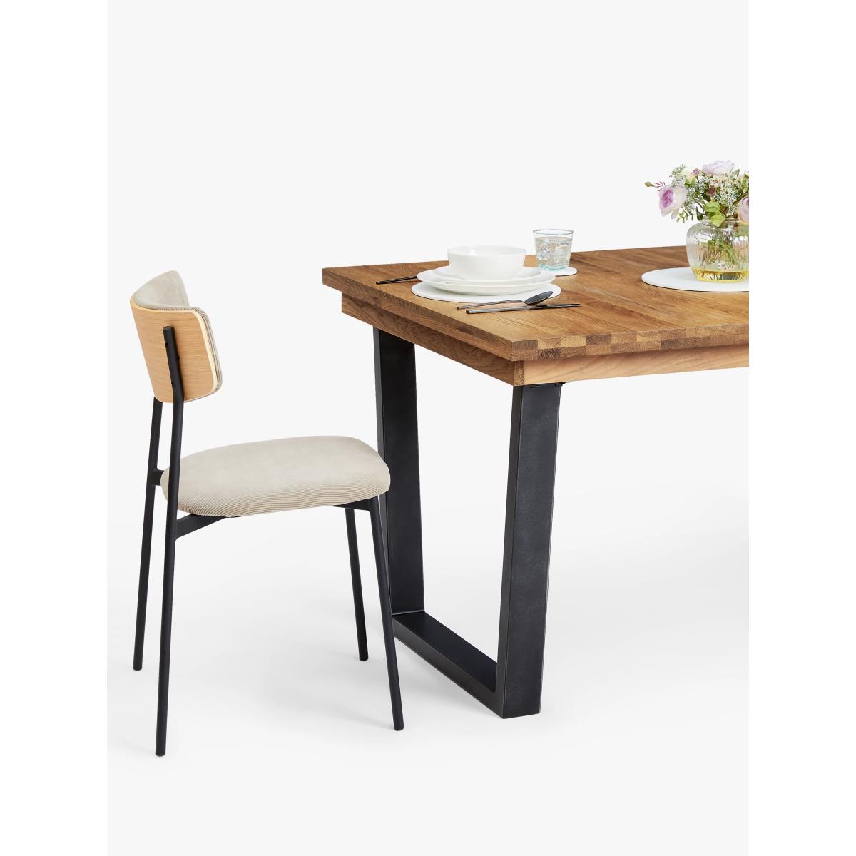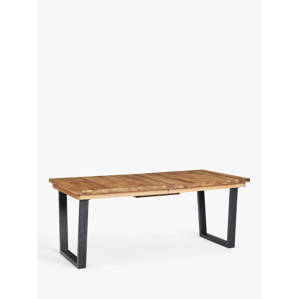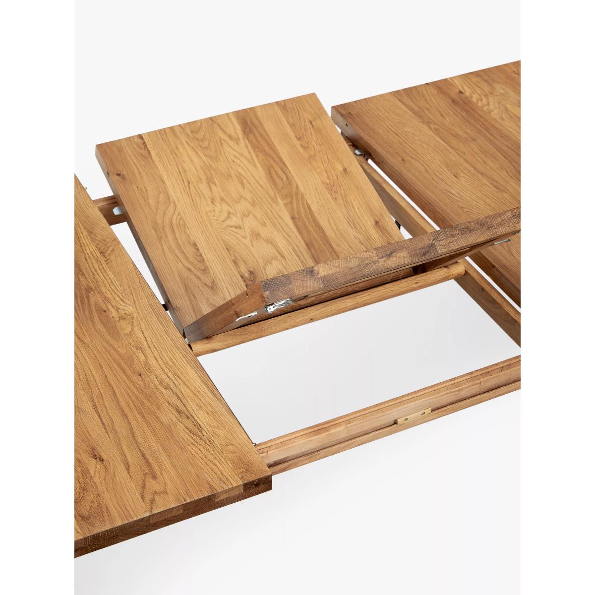 Made predominantly from solid American white oak, our Calia range of furniture has a natural, rustic look thanks to its wire-brushed, distressed finish. Each piece is made from individual wood slats that are carefully selected and sorted by skilled craftsman. They ensure that the natural pattern in the wood grain, even with its unique irregularities, uphold our design and quality standards, to offer an authentic and tactile look. This dining table has an extension in the centre to offer seating for up to ten diners. Supported by a robust, welded iron base that's finished with a durable lacquer, it has a striking and industrial-inspired aesthetic. Worth knowing Oak is a natural, living material, and part of its charm is that it develops over time. This means that surface splits may start to appear with the natural movement of the wood. Knots will vary in size and location and a subtle colour variation can also be expected. These distinctive qualities give the range a unique feel, as no two pieces will be exactly the same. To keep your furniture looking its best, we recommend periodic oiling and oiling before first use. More information can be found in the assembly instructions supplied. Want to see it first? You may want to see and get a feel for the furniture in one of our shops before ordering. We'll be able to tell you where the range you'd like to view is on display.