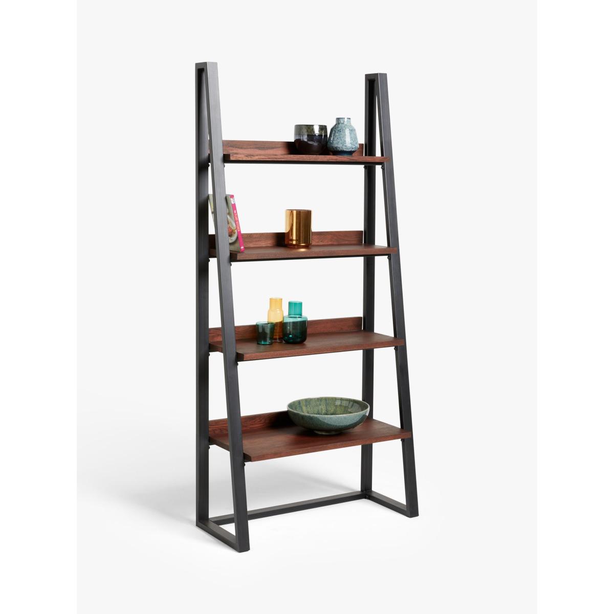 How would we describe our Calia range of furniture? Well for starters, it's loved for its industrial aesthetic and strong welded iron details, which have a wire-brushed and distressed finish. But it's also loved for its natural charm. Individual slats of solid oak make up the rustic surfaces which have been thoughtfully chosen by skilled craftspeople. They ensure that the natural pattern of the wood grain, even with its unique irregularities, uphold the design and quality standards that we're known for. This ensures our Calia range offers a look that's as authentic as possible. With four shelves that increase in size towards the base, style this bookcase with your best accessories, favourite photos or even a plant or two. It's incredibly sturdy, built with the addition of oak veneers and it will look really impressive in your space. Worth knowing Oak is a natural, living material, and part of its charm is that it develops over time. This means that surface splits may start to appear with the natural movement of the wood. Knots will vary in size and location and a subtle colour variation can also be expected. These distinctive qualities give the range a unique feel, as no two pieces will be exactly the same. To keep your furniture looking its best, we recommend periodic oiling and oiling before first use. This is applicable to the Oak version only, as the Chestnut version has a lacquered finish. More information can be found in the assembly instructions supplied. Maximum loads per shelf 1st (top) shelf: 11kg 2nd shelf: 14kg 3rd shelf: 17kg 4th (bottom) shelf: 21kg Want to see it first? You may want to see and get a feel for the furniture in one of our shops before ordering. We'll be able to tell you where the range you'd like to view is on display.