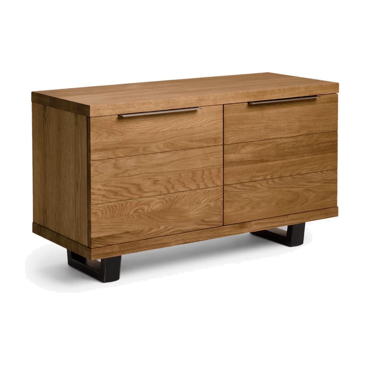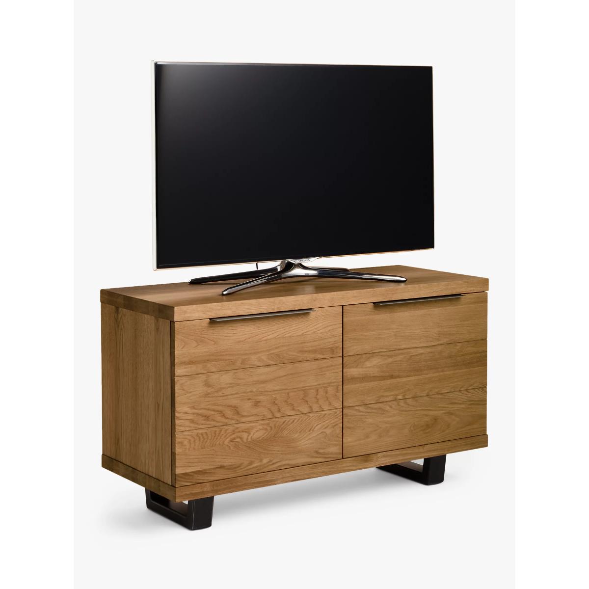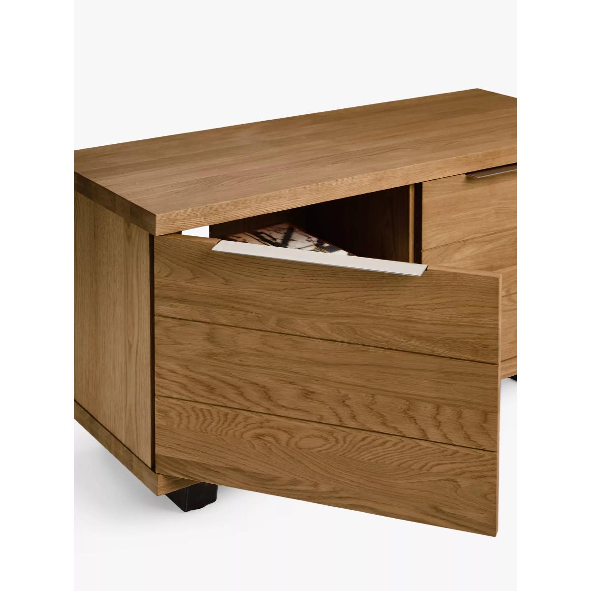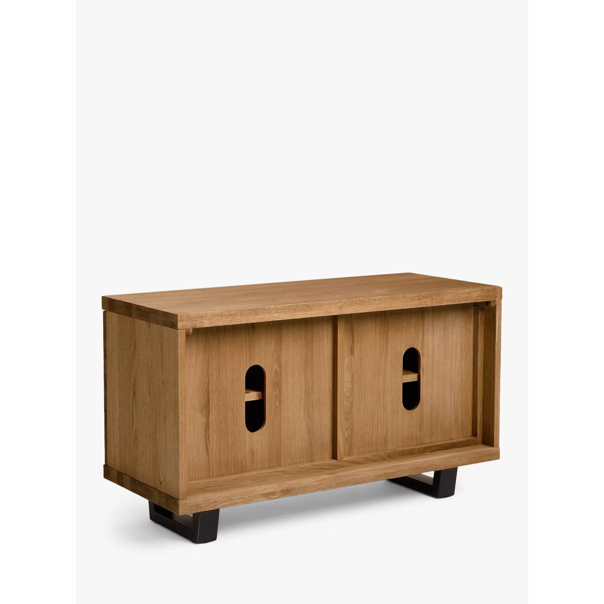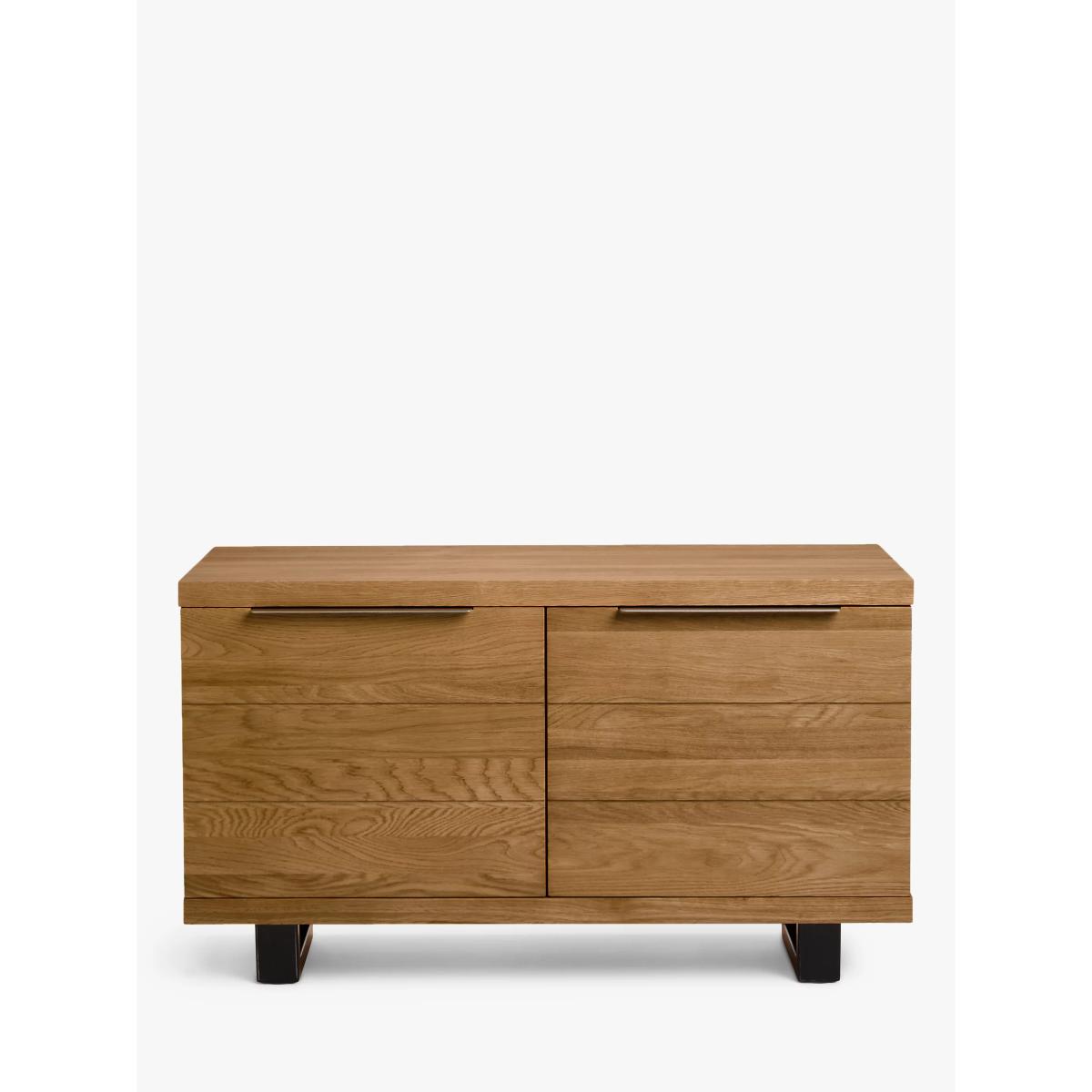 How would we describe our Calia range of furniture? Well, it's loved for its industrial aesthetic and strong welded iron details, which have a wire-brushed and distressed finish. But it's also loved for its natural charm. Individual slats of solid oak make up the rustic surfaces which have been thoughtfully chosen by skilled craftspeople. They ensure that the natural pattern of the wood grain, even with its unique irregularities, uphold the design and quality standards that we're known for. This ensures our Calia range offers a look that's as authentic as possible. There's plenty of storage space available with this media unit, there are wide cable holes in the back and the two side cupboards each have an adjustable shelf. Worth knowing Oak is a natural, living material, and part of its charm is that it develops over time. This means that surface splits may start to appear with the natural movement of the wood. Knots will vary in size and location and a subtle colour variation can also be expected. These distinctive qualities give the range a unique feel, as no two pieces will be exactly the same. To keep your furniture looking its best, we recommend periodic oiling and oiling before first use. This is applicable to the Oak version only, as the Dark version has a lacquered finish. More information can be found in the assembly instructions supplied. Want to see it first? You may want to see and get a feel for the furniture in one of our shops before ordering. We'll be able to tell you where the range you'd like to view is on display.