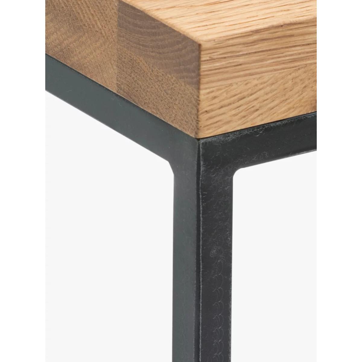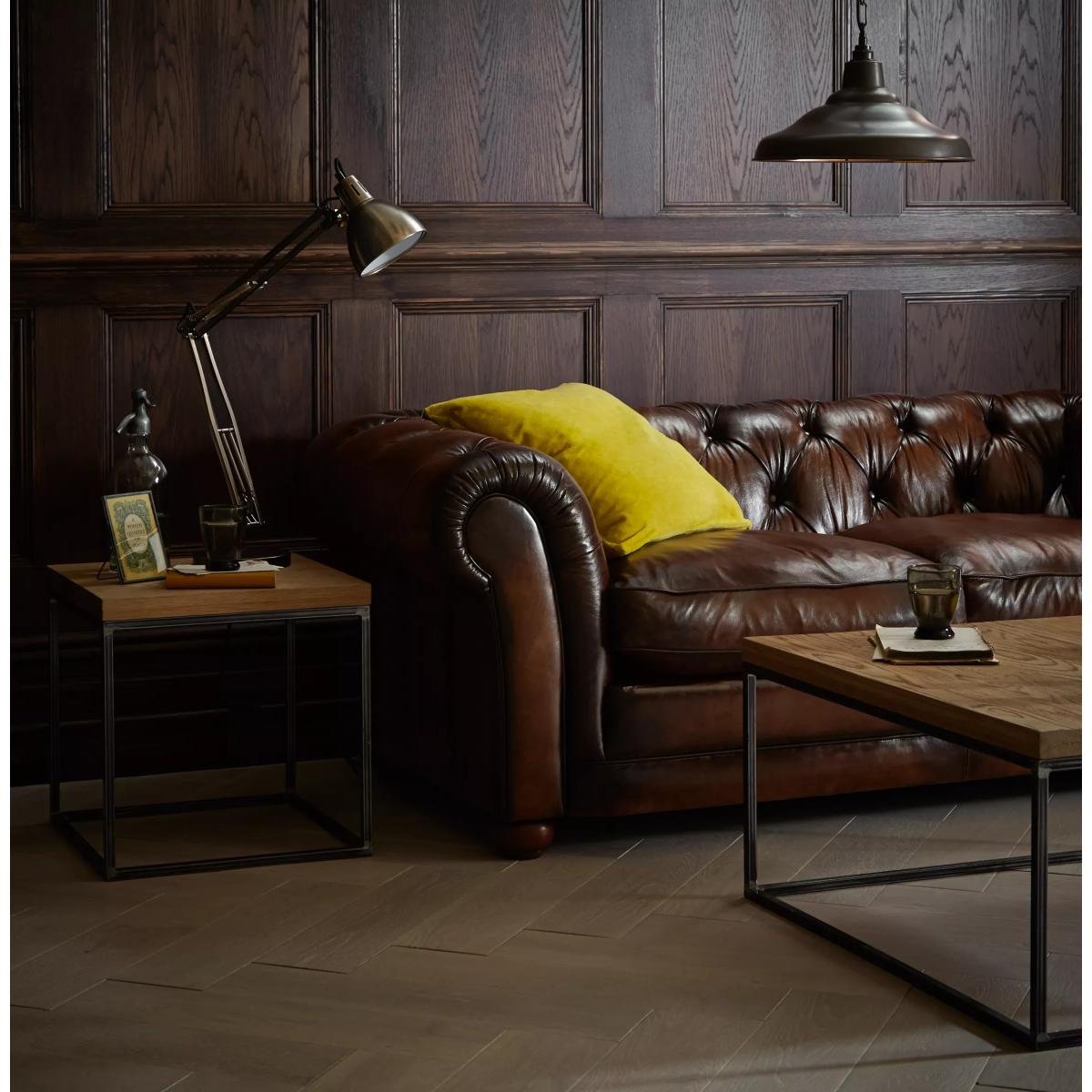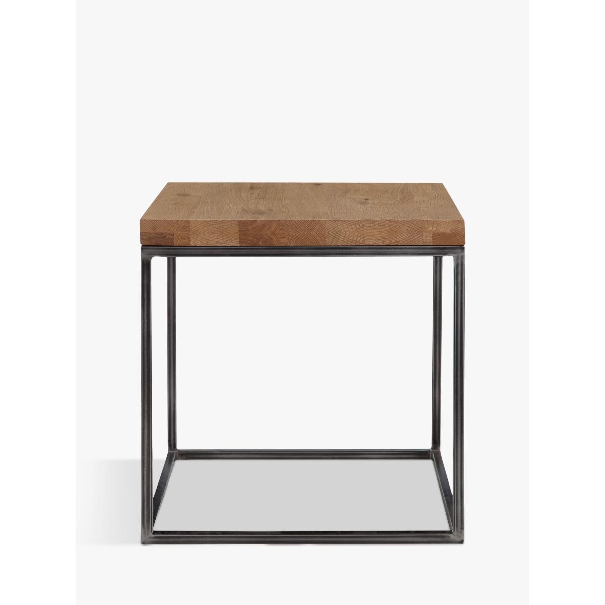 How would we describe our Calia range of furniture? Well for starters, it's loved for its industrial aesthetic and strong welded iron details, which have a wire-brushed and distressed finish. But it's also loved for its natural charm. Individual slats of solid oak make up the rustic surfaces which have been thoughtfully chosen by skilled craftspeople. They ensure that the natural pattern of the wood grain, even with its unique irregularities, uphold the design and quality standards that we're known for. This ensures our Calia range offers a look that's as authentic as possible. Brilliantly unfussy, this side table is simple, sturdy and a good option for smaller spaces. Worth knowing Oak is a natural, living material, and part of its charm is that it develops over time. This means that surface splits may start to appear with the natural movement of the wood. Knots will vary in size and location and a subtle colour variation can also be expected. These distinctive qualities give the range a unique feel, as no two pieces will be exactly the same. To keep your furniture looking its best, we recommend periodic oiling and oiling before first use. This is applicable to the Oak version only, as the Dark version has a lacquered finish. More information can be found in the assembly instructions supplied. Want to see it first? You may want to see and get a feel for the furniture in one of our shops before ordering. We'll be able to tell you where the range you'd like to view is on display.