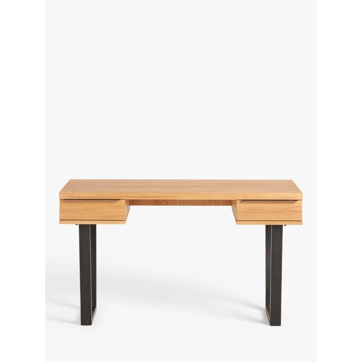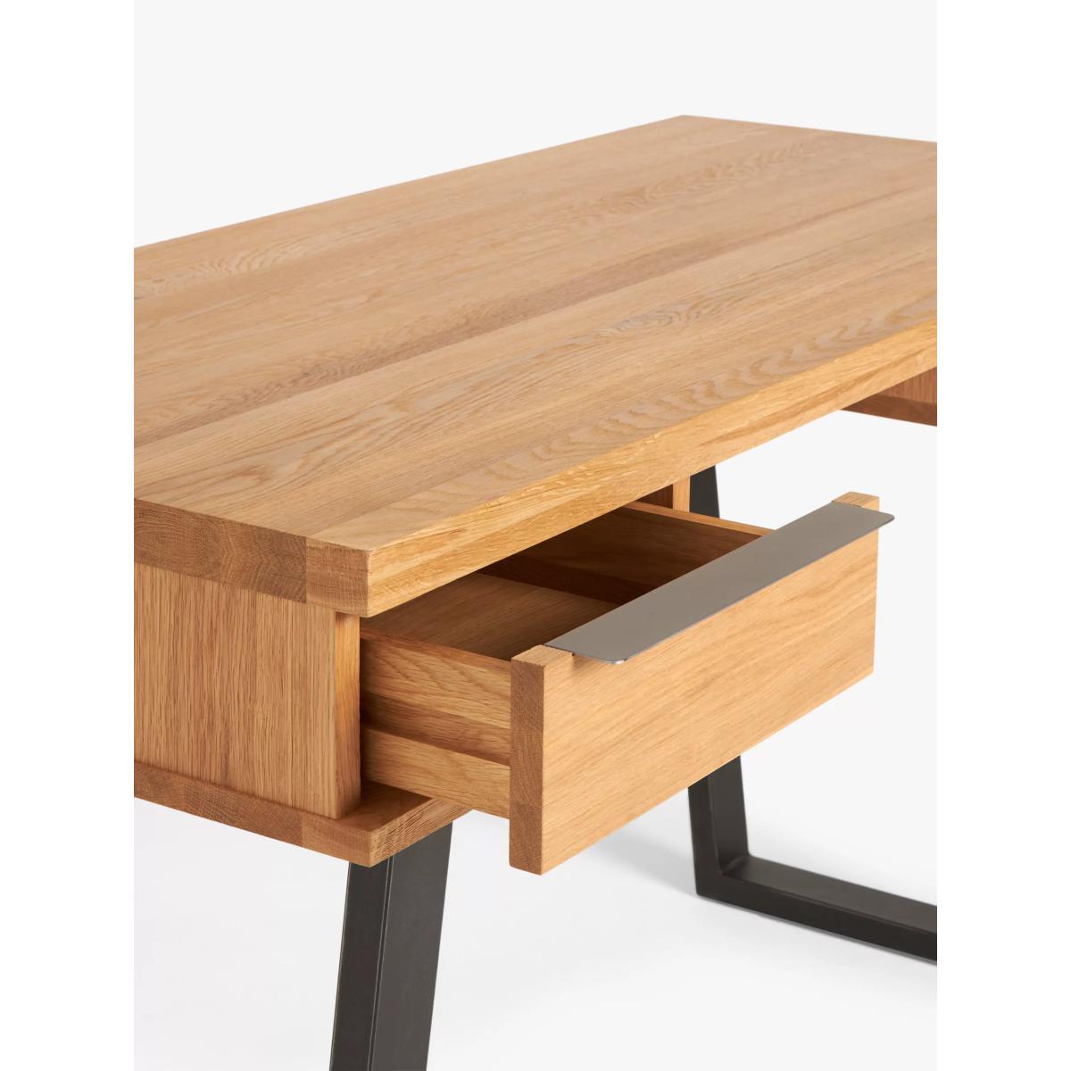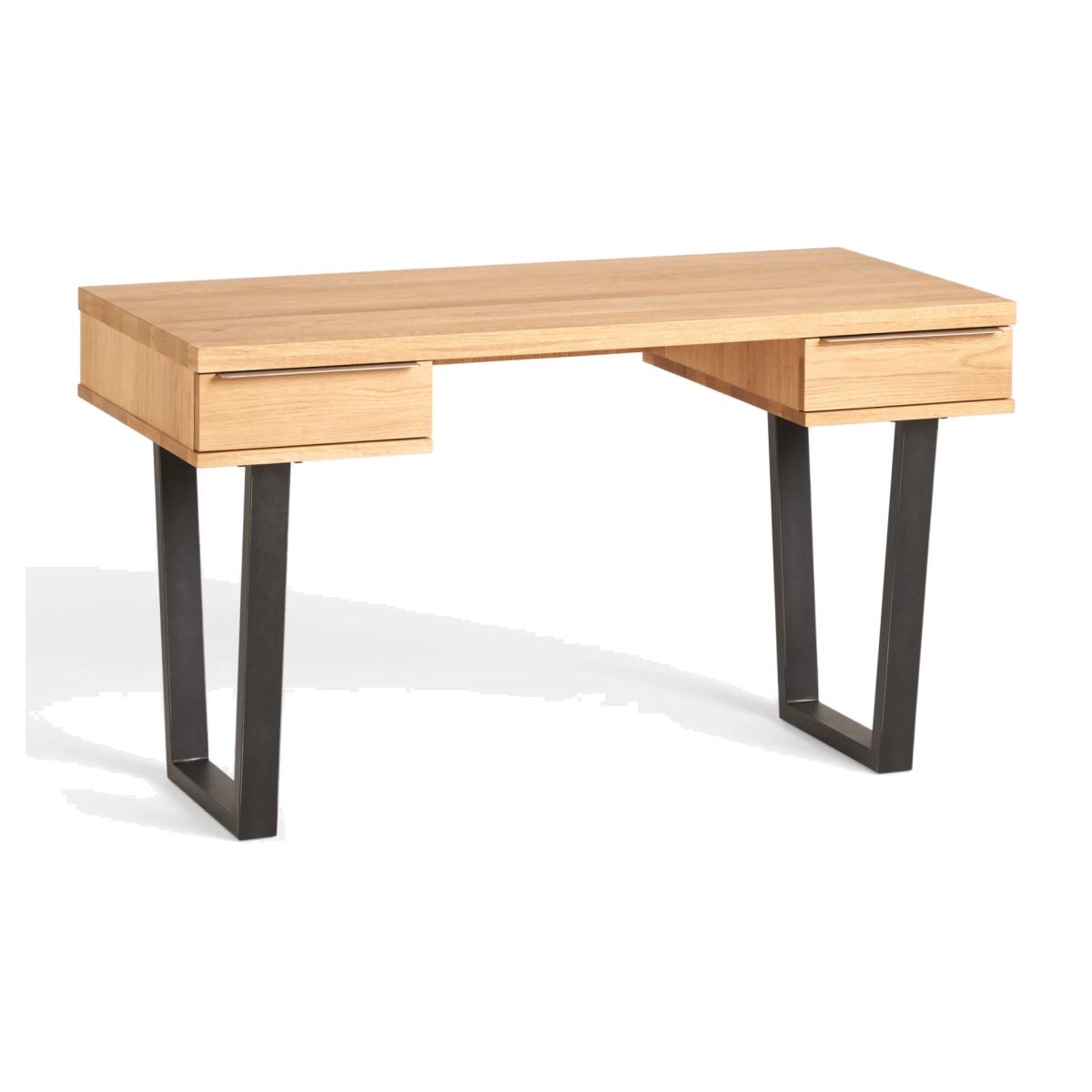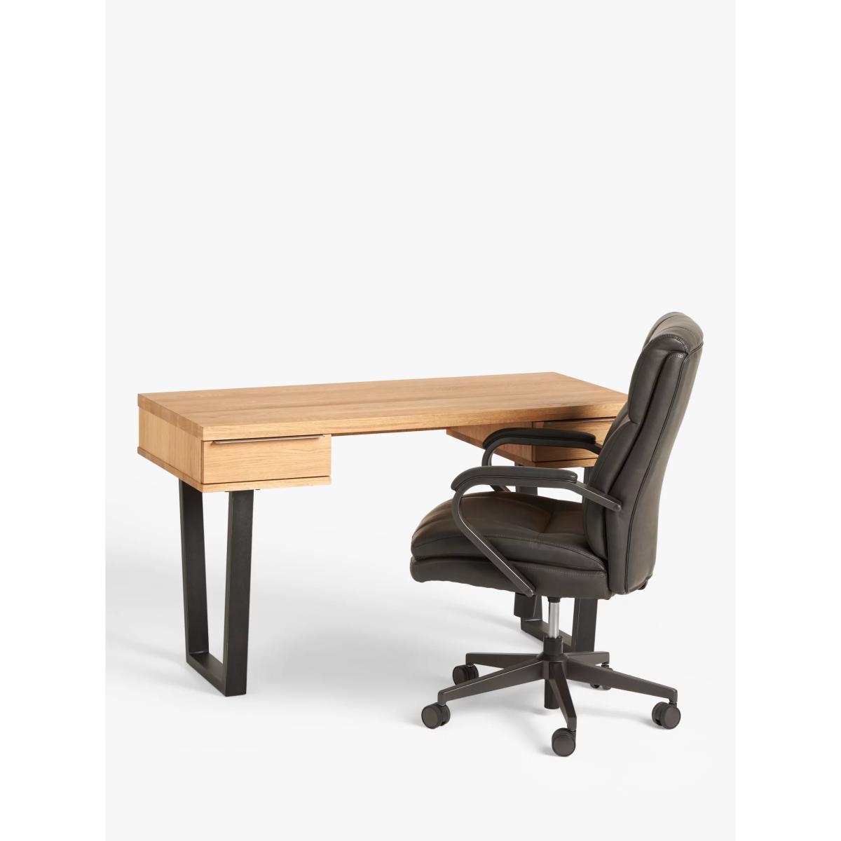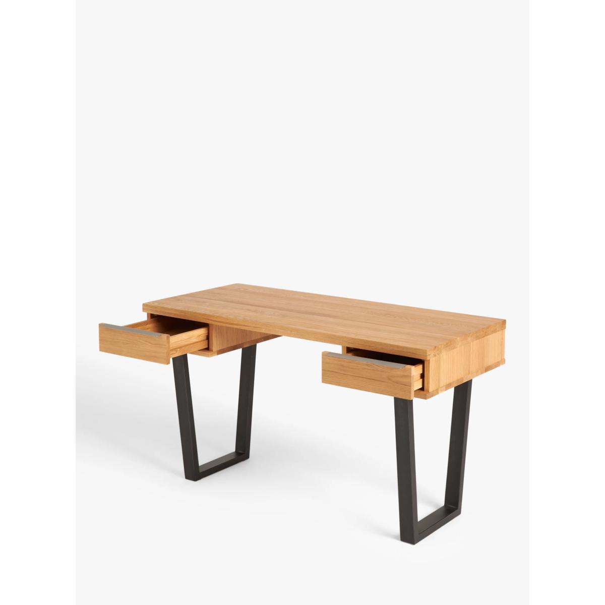 Our Calia range is made predominantly from solid American white oak. Calia has a wire-brushed, distressed finish that offers a rustic look and tactile feel, making the most of the beautiful natural grain of the wood. This "rough-and-ready" appearance is enhanced with the inclusion of welded iron bases and handles, giving the range an industrial, vintage edge. The compact footprint of this small desk is perfect for home working and has a pair of sliding drawers so you can tidy everything away at the end of the day. Worth knowing Oak is a natural, living material, and part of its charm is that it develops over time. This means that surface splits may start to appear with the natural movement of the wood. Knots will vary in size and location and a subtle colour variation can also be expected. These distinctive qualities give the range a unique feel, as no two pieces will be exactly the same. To keep your furniture looking its best, we recommend periodic oiling and oiling before first use. This is applicable to the Oak version only, as the Dark version has a lacquered finish. More information can be found in the assembly instructions supplied. Want to see it first? You may want to see and get a feel for the furniture in one of our shops before ordering. We'll be able to tell you where the range you'd like to view is on display.