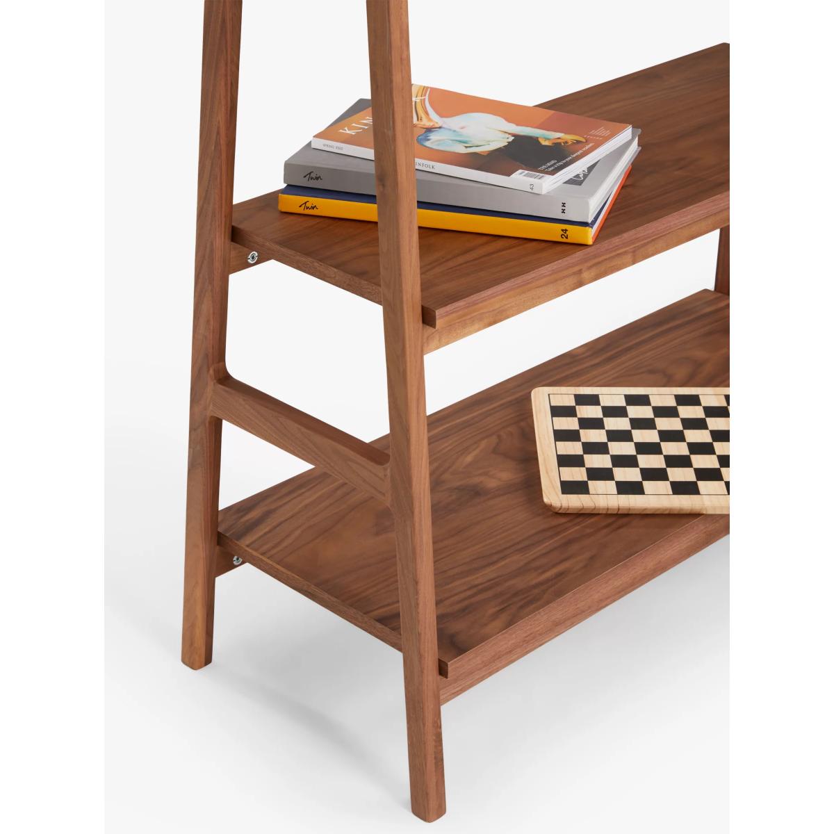 This A-frame ladder bookcase is constructed in solid and veneered American black walnut, with a slim and elegant appearance and oiled finish. Want to see it first? You may want to see and get a feel for the furniture in one of our shops before ordering. We'll be able to tell you where the range you'd like to view is on display.