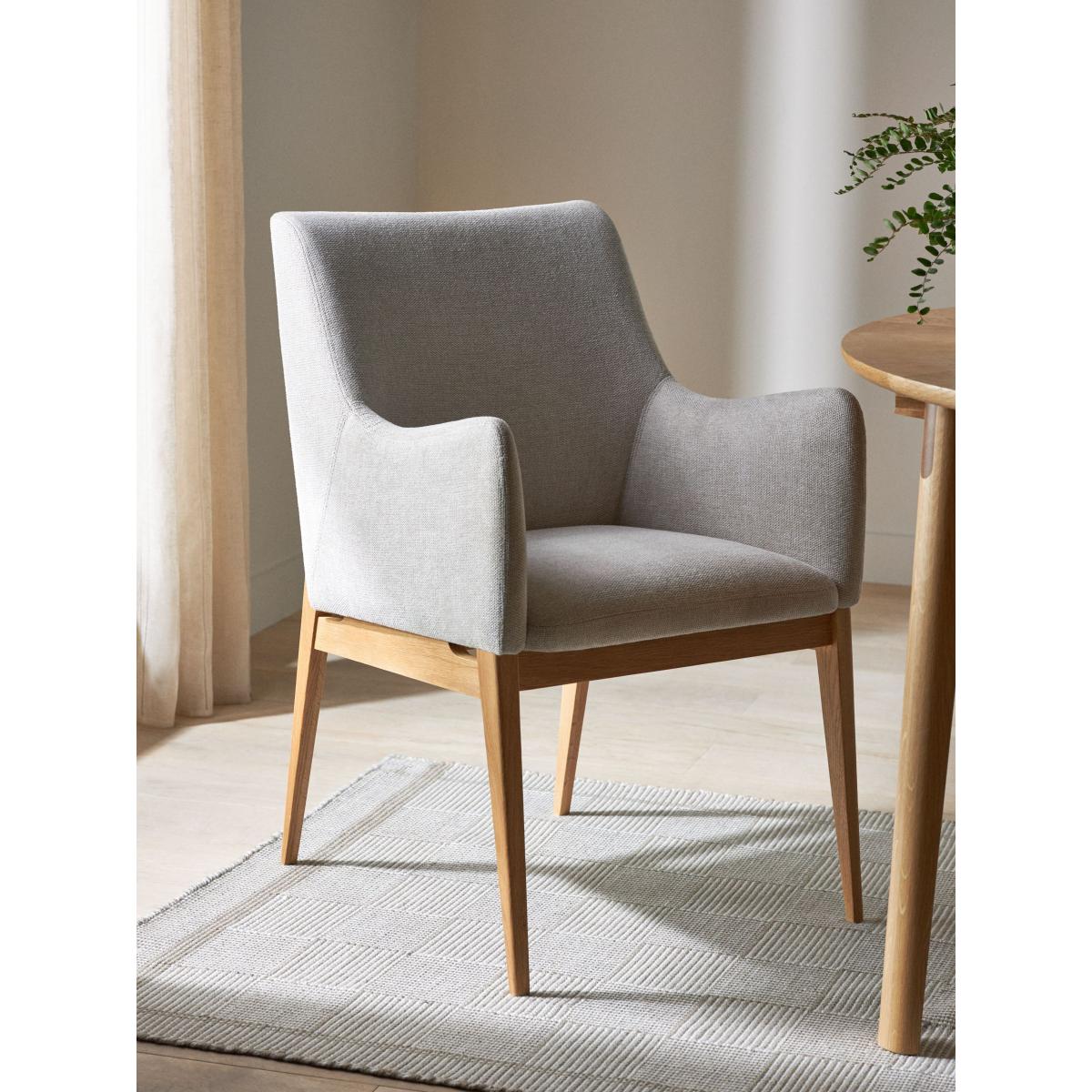 The John Lewis Cara armchair is a versatile piece that blends contemporary comfort with a classic silhouette, making it a great addition to dining or living spaces. I love how its natural oak frame adds warmth and subtle texture, allowing it to complement both modern and Scandi-inspired interiors as well as more traditional settings. For styling tips, consider pairing it with neutral-toned tableware and soft textiles to create a cohesive look, or add colourful cushions for a pop of personality. Its understated design makes it suitable for various interior schemes, from minimalist to cosy, and it's practical for creating inviting dining corners or reading nooks within larger open-plan spaces.