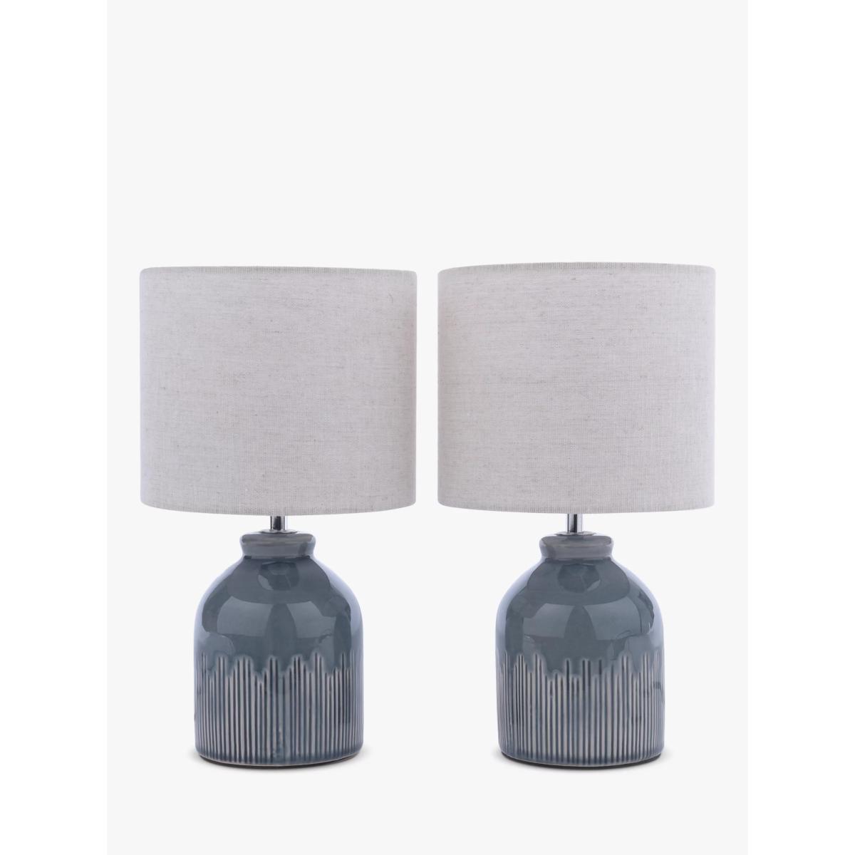 Thanks to their hand-crafted design, these ribbed ceramic lamps have a unique and individual appearance. The textured bases are finished with a reactive-glaze that highlights the stunning ribbed pattern. Combined with a linen lampshade, this set of two will make a beautiful addition to your home.