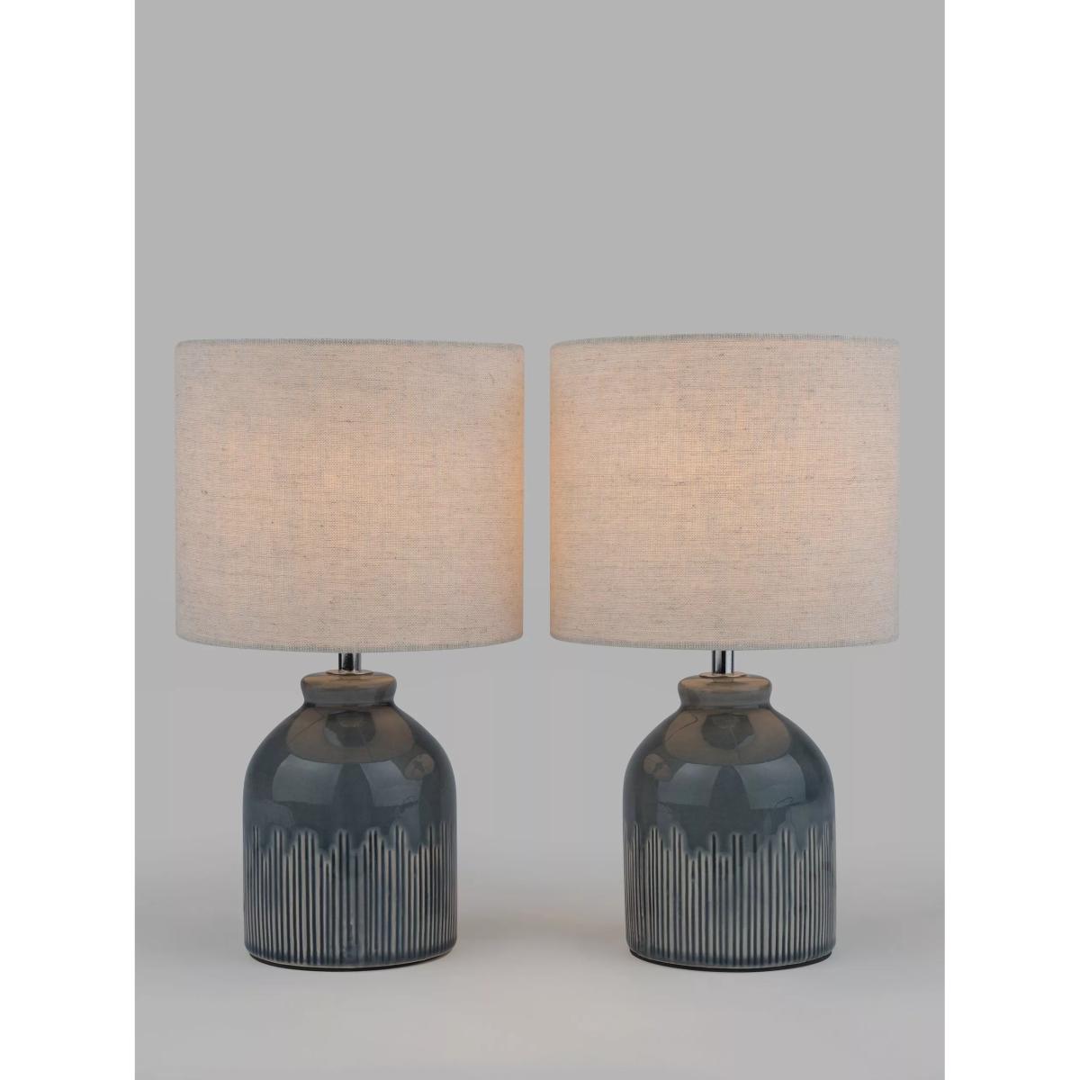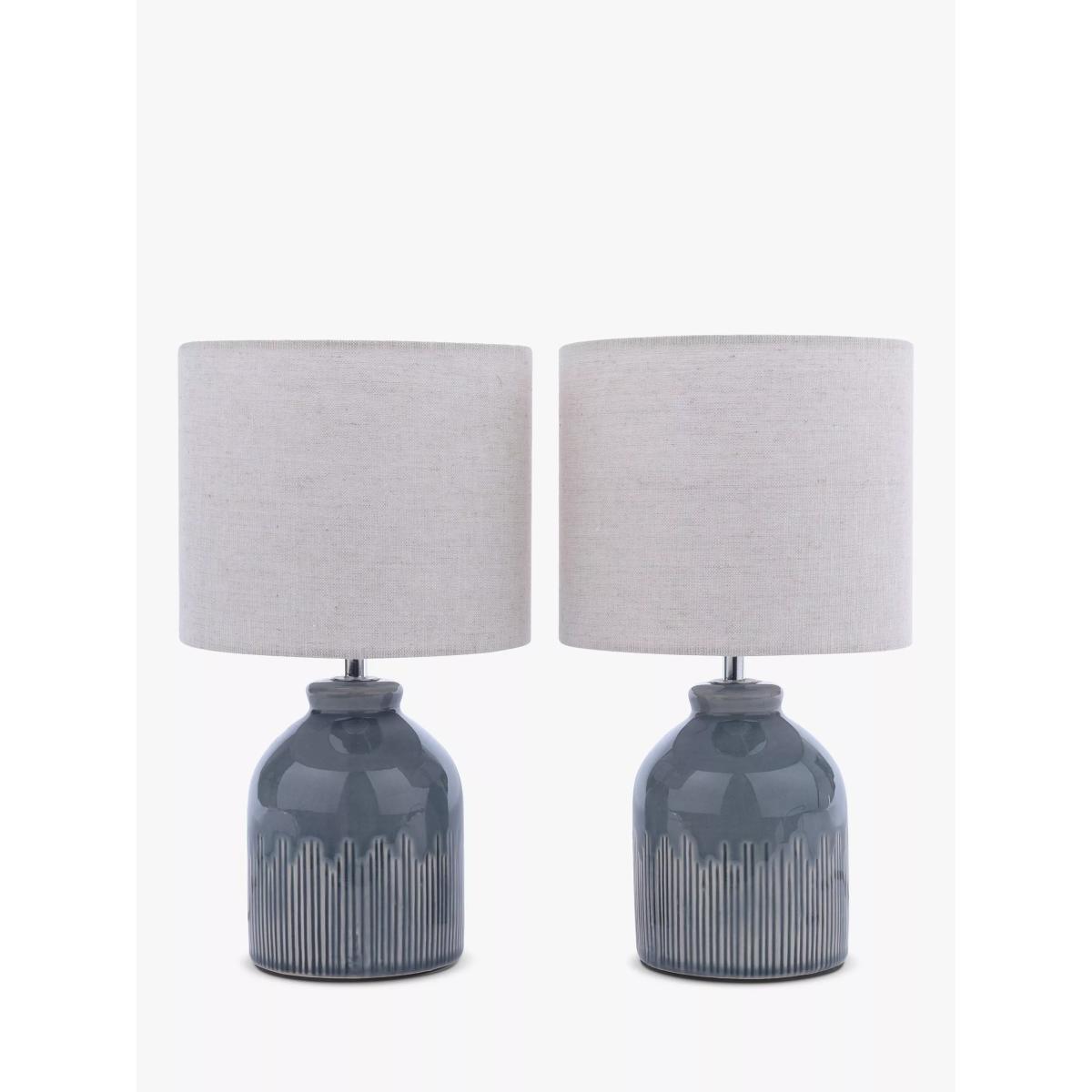 Thanks to their hand-crafted design, these ribbed ceramic lamps have a unique and individual appearance. The textured bases are finished with a reactive-glaze that highlights the stunning ribbed pattern. Combined with a linen lampshade, this set of two will make a beautiful addition to your home.