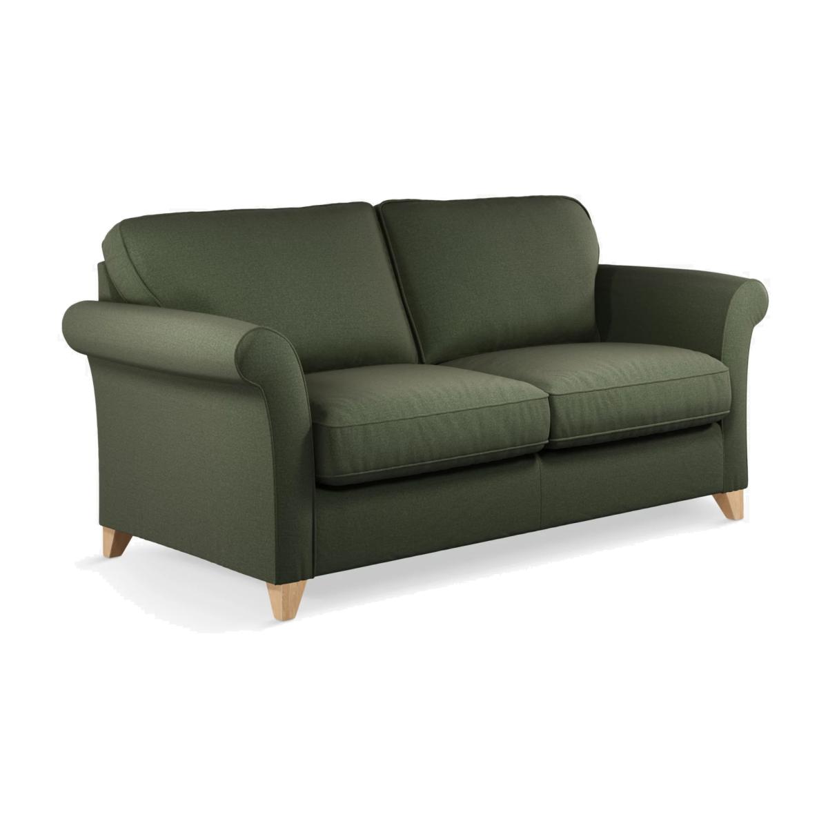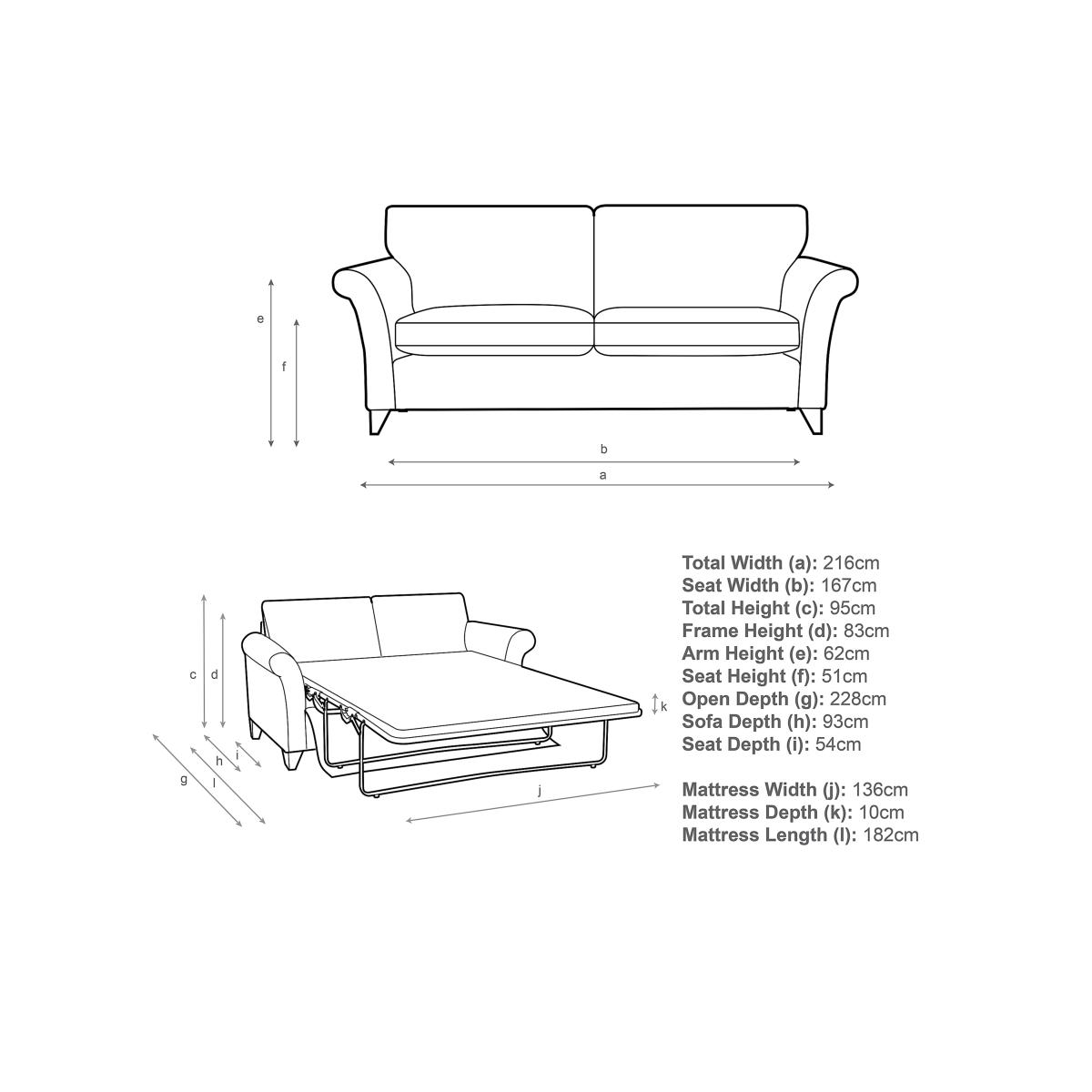 Product Information The traditional Charlotte range combines gently flared scrolled arms and tapered legs for an elegant look with fibre-filled cushions you can really sink into. Environmentally friendly fillingsWe use Quallofil® Blue fibres in our Charlotte range as a more sustainable choice than chemical-based foam fillings. Quallofil® Blue fibres are made using 50% recycled plastic from Plastic Bank; a globally recognised and award-winning solution to stop ocean plastic whilst improving the lives of people living in poverty, who collect the plastic. These fibres give firm, controlled support and are long-lasting so they'll retain the cushion's original appearance instead of becoming squashed and flat over time. Sustainably sourced timberWe make sure Charlotte's timber frames are sourced from carefully managed, sustainable forests. Sustainable manufacturingWe’re proud to work with Westbridge, our manufacturing partner based in North Wales who make our Charlotte range of sofas for us. Westbridge have been making more environmentally friendly choices for over a decade and haven’t sent anything to landfill since 2007. They also continue to work hard to offset their carbon footprint by introducing energy-saving procedures and equipment throughout their factory. A mattress that responds to your every movementThis sofa bed has a pocket sprung mattress which is only slightly less deep than a standard double bed mattress. The springs are individually sewn into their own fabric pockets which is what makes the mattress so responsive as you change position in the night. Suitable for regular use it provides a peaceful night's sleep. Unfolds from sofa to bedStarting as a sofa, the blocks of foam simply fold out to become a mattress, converting the model into a bed. It's the little thingsWe care about our furniture; how it's designed, the materials used and the people who make it. That's why every detail is carefully considered, with more than 20 quality checks, to ensure you're as proud of it as we are. Try before you buyWe're confident in our furniture's quality, but it's always a good idea to check that it's a good personal fit for you. Measuring Up for Furniture Guide Sofas, Sofa Beds & Chairs Buying Guide Upholstery Care Guide