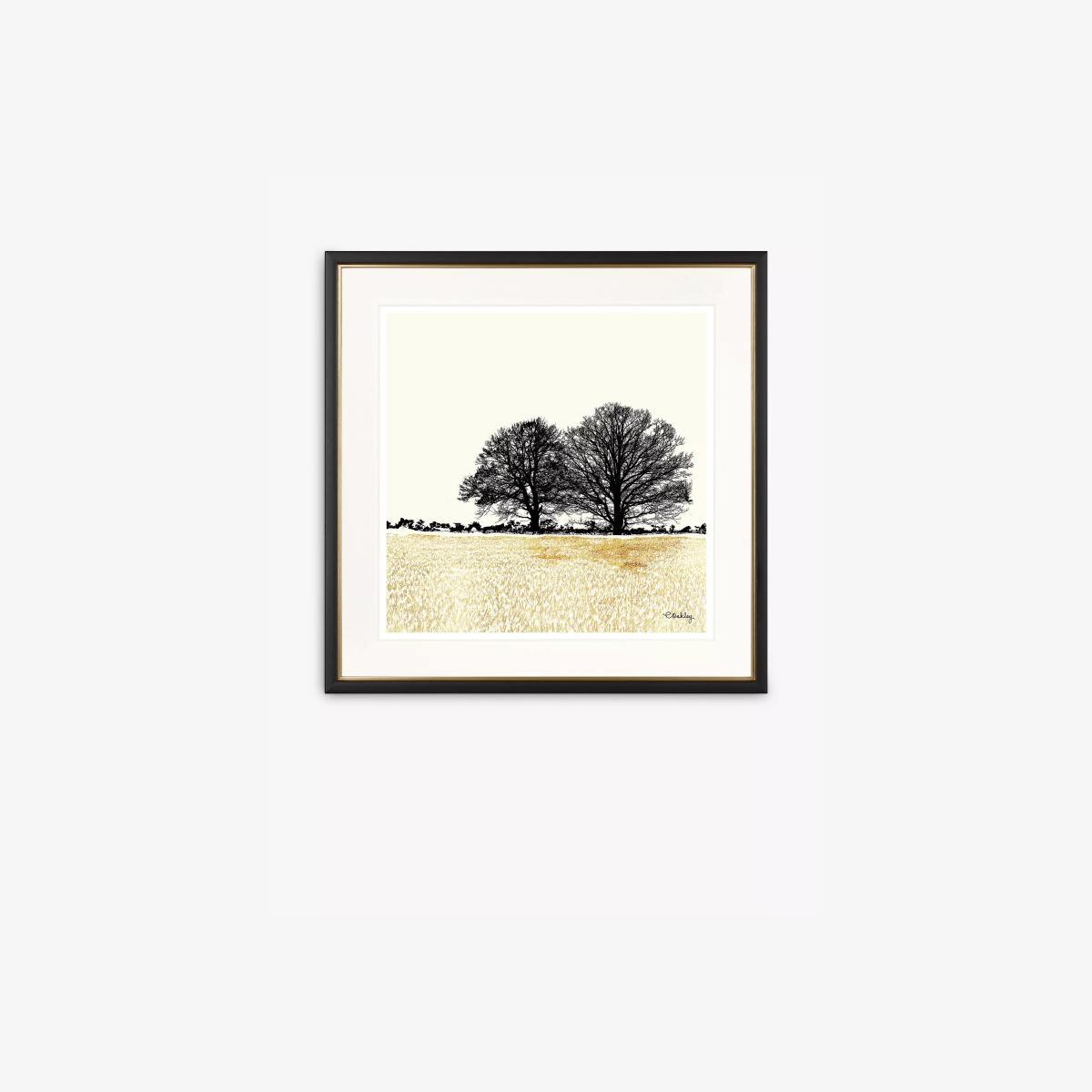 John Lewis Charlotte Oakley 'Tree Pair in Golden Field' Embellished Framed Print & Mount, 36 x 36cm, Gold