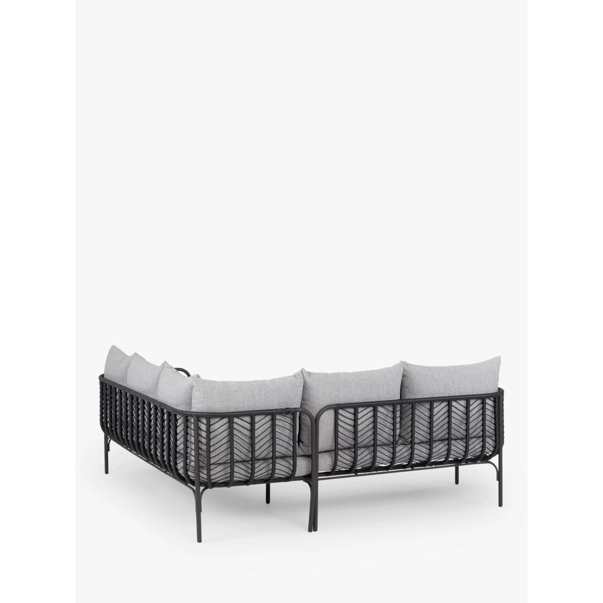 Traditional rattan garden furniture gets an update with our Chevron range. A contemporary chevron pattern is handwoven with a synthetic weave on powder-coated metal frames. The sturdy legs and frame can withstand a weight of 20 stone (127kg) per seat, exceeding the industry standard. The robust design allows the weave to form its distinctive shape and ensure comfortable support. The cushions can be unzipped and are washable, with care. Team the sofa with other Chevron garden furniture to create a matching set for a patio or conservatory. Key features: Corner garden sofa seats up to four people Hand-woven synthetic rattan design Lightweight and durable aluminium frame Shower-resistant and washable cushioning Comes with: 2 seat cushions, 6 back cushions Matches garden furniture in our Chevron range Garden furniture care:To keep your outdoor furniture in the best condition, store it in a cool, dry, well-ventilated spot indoors over the winter. If it’s staying outside, use an outdoor furniture cover whenever the weather is wet or unseasonal. Make sure furniture is clean and dry before storing it away and keep cushions in a clean and dry place when not in use.