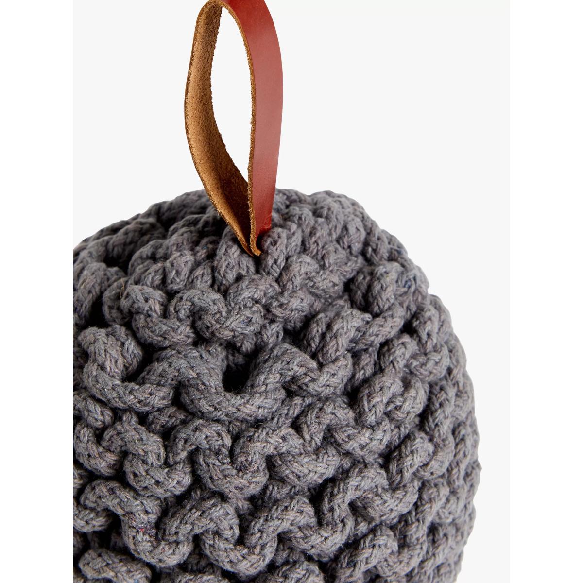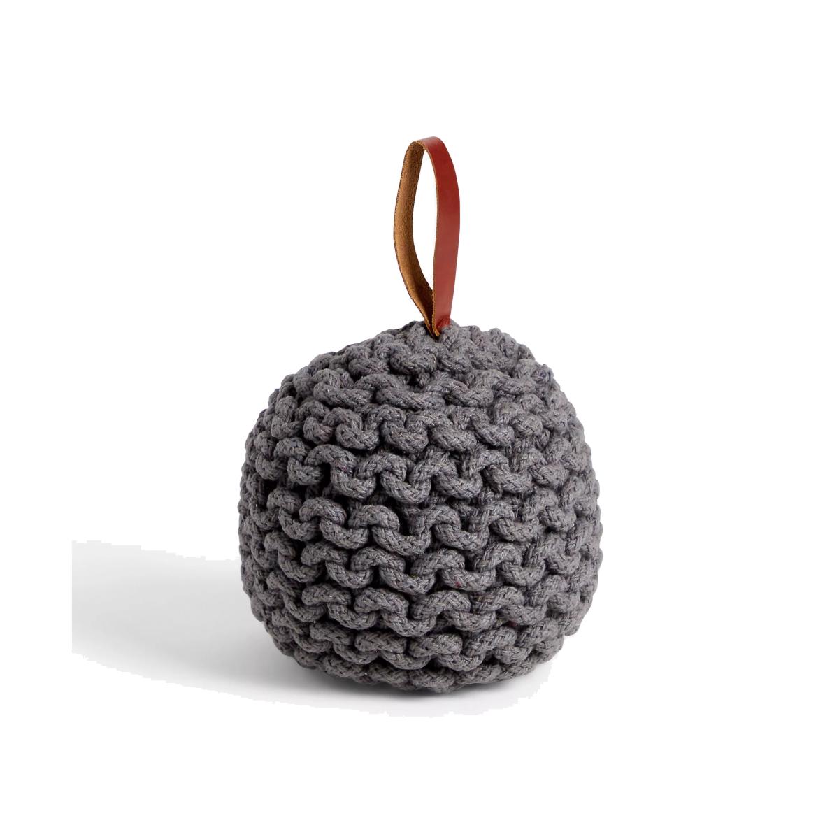 Soft but sturdy, with a leather carry handle, this chunky knit doorstop makes a practical and attractive accessory for any room.