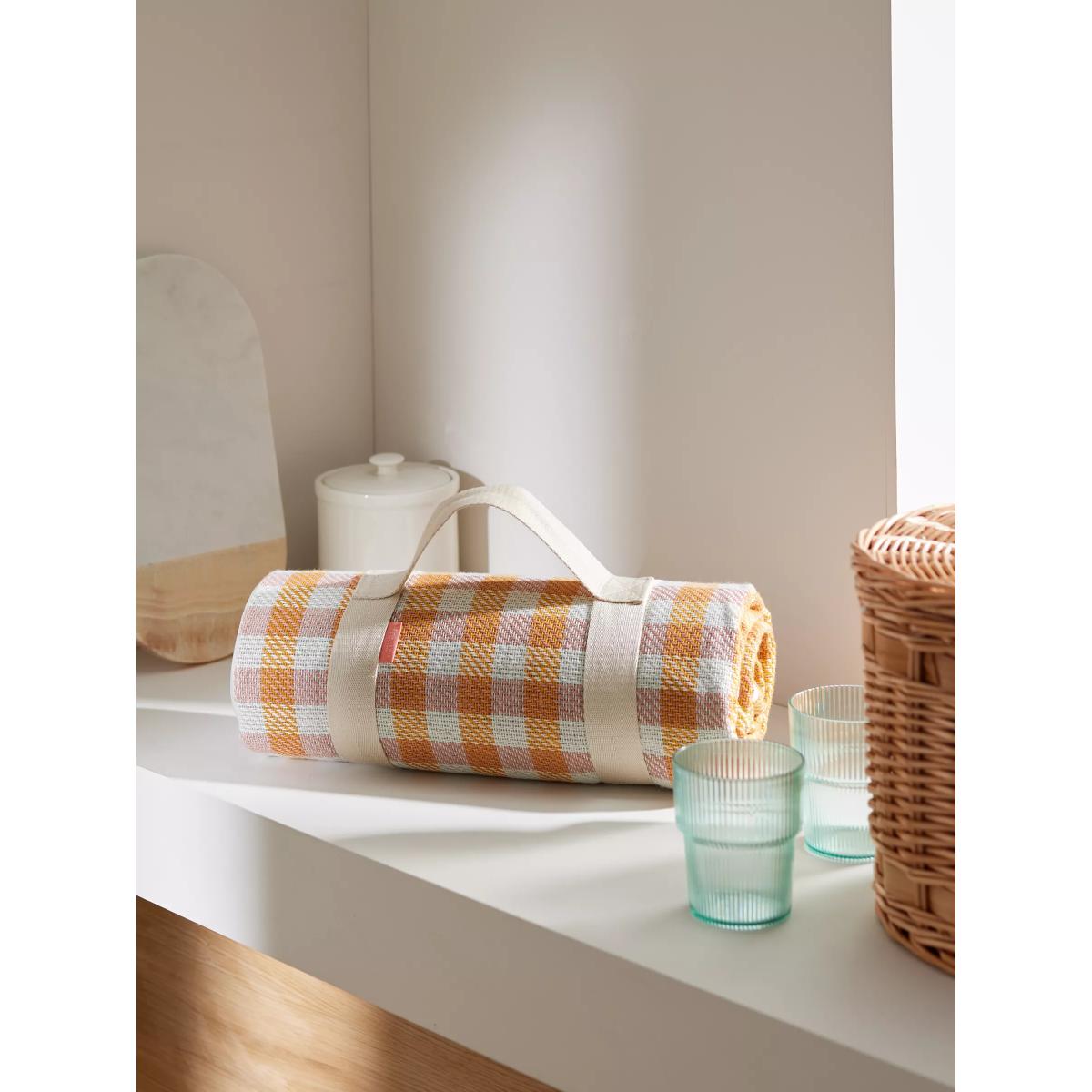 John Lewis Classic Check Picnic Rug, Orange/Pink