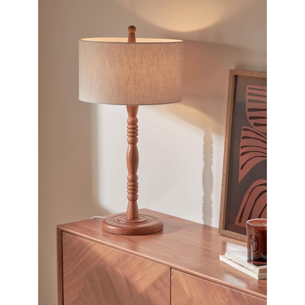 I love this lamp for its timeless and versatile design; the walnut base adds warmth and richness that works beautifully in both classic and contemporary interiors. It’s a great choice for living rooms, ottomans, or bedside tables where you want a touch of elegance without fuss. Practical styling tips include pairing it with neutral or patterned shades to create contrast or enhance its natural wood tone. It also sits well with other wooden or textured accessories, making it easy to build a cohesive, cosy space. Overall, this lamp combines functionality with understated style, making it a solid, long-lasting addition to a range of interiors.
