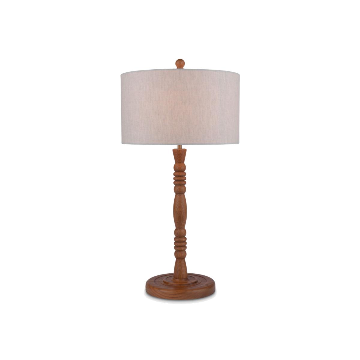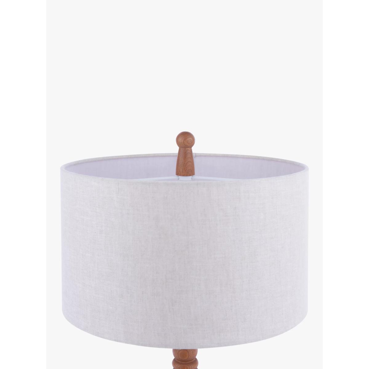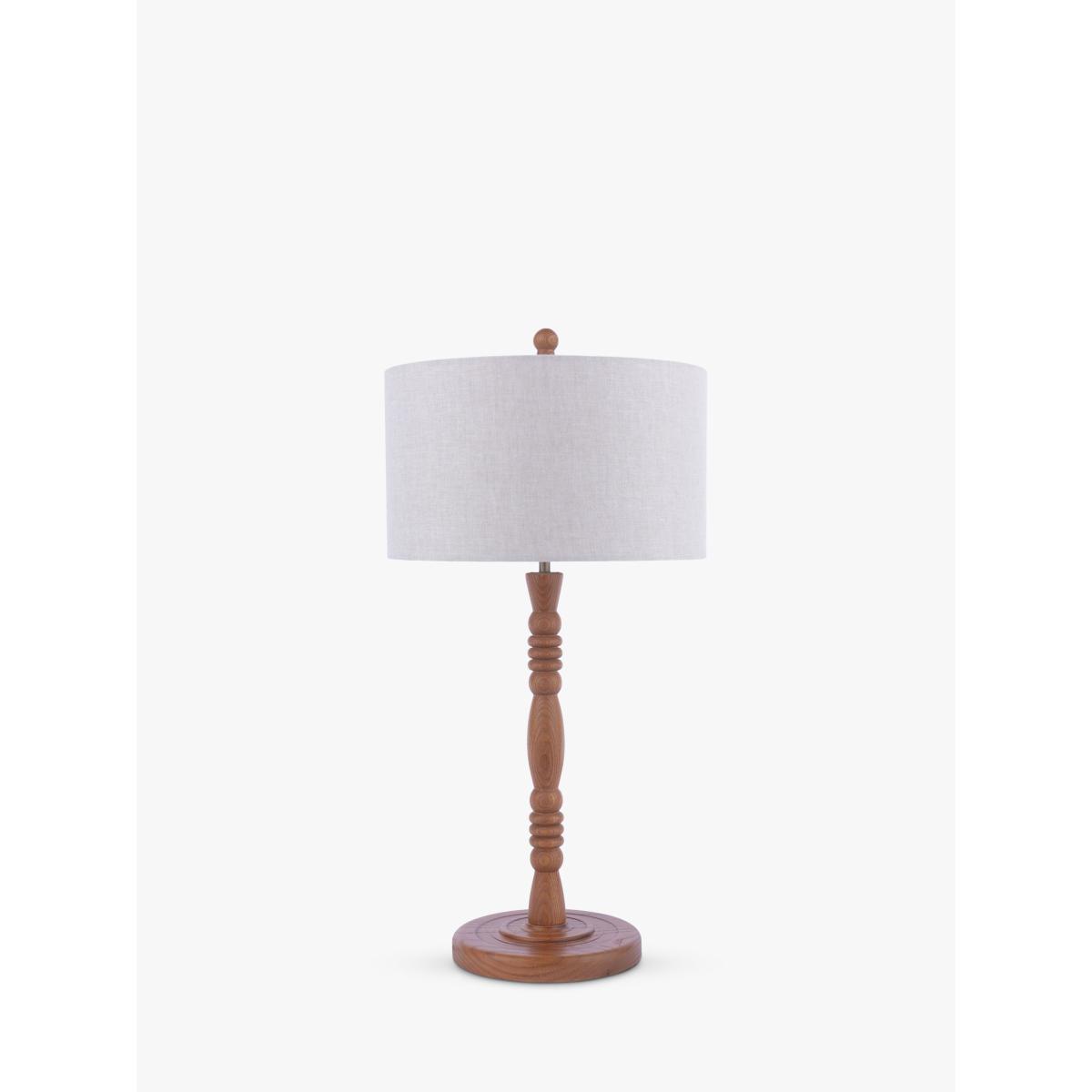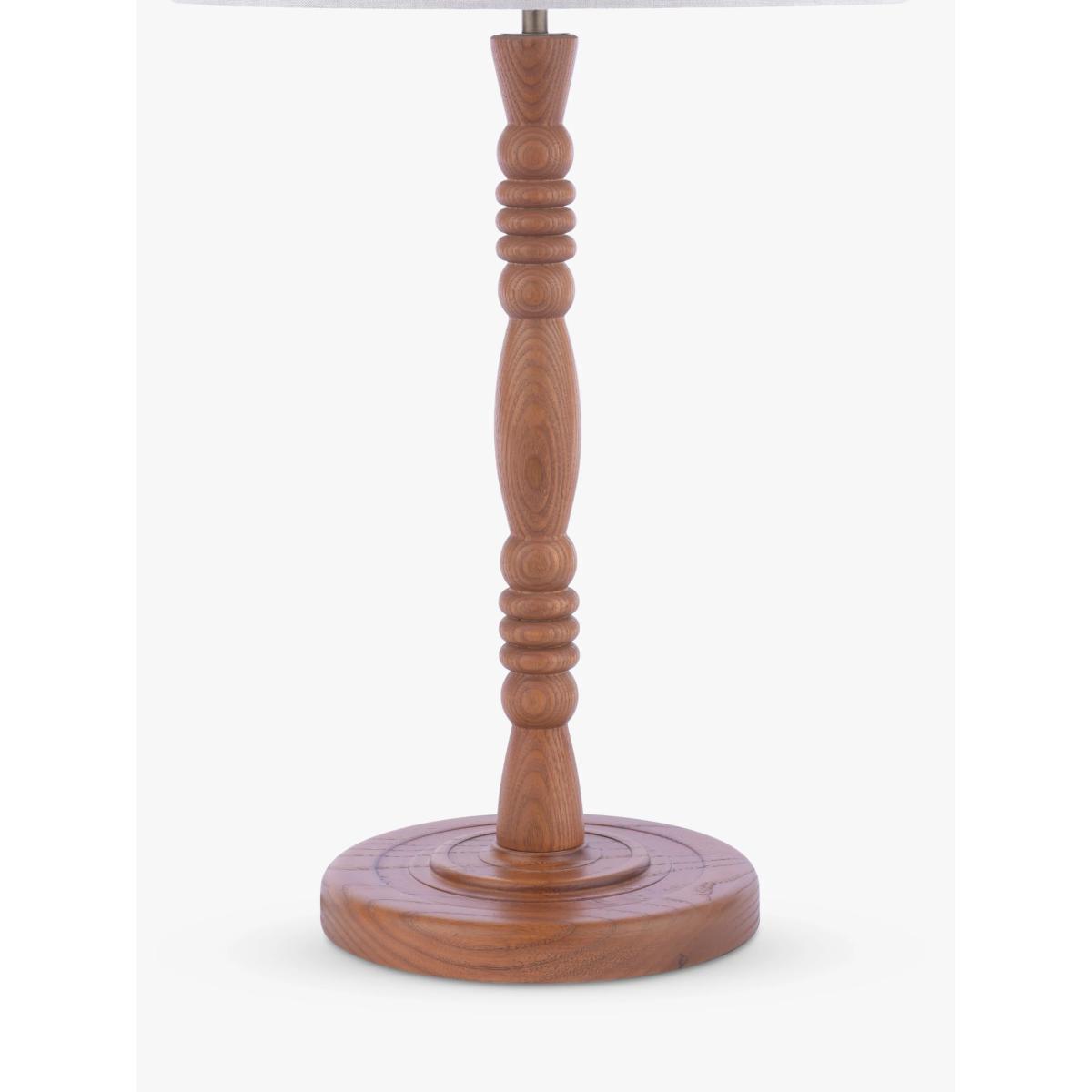 This table lamp is designed with a classic candlestick silhouette. The lamp's stem rises up from a turned, solid ash base and the drum lampshade adds a warm wash of light that suits a variety of living spaces.