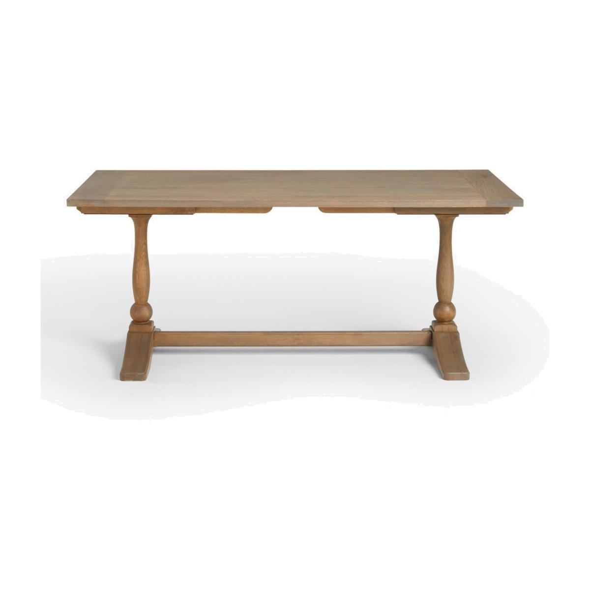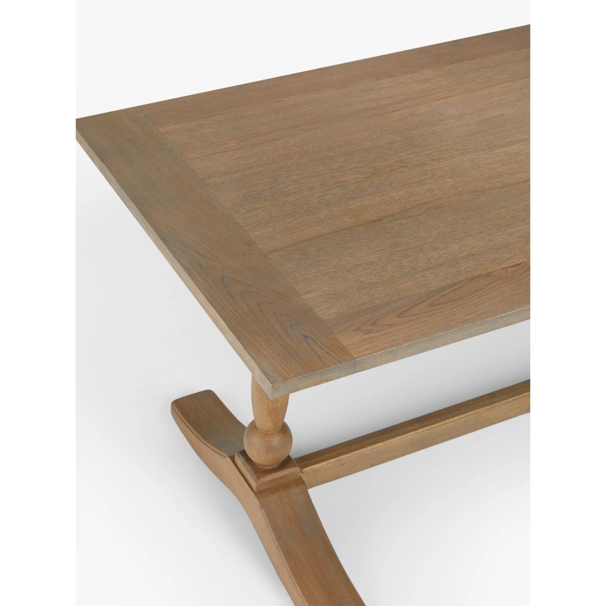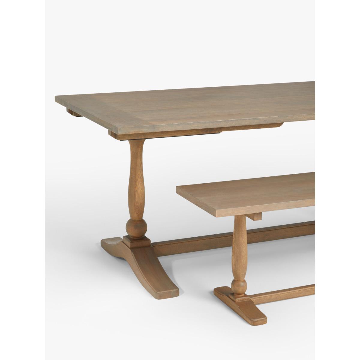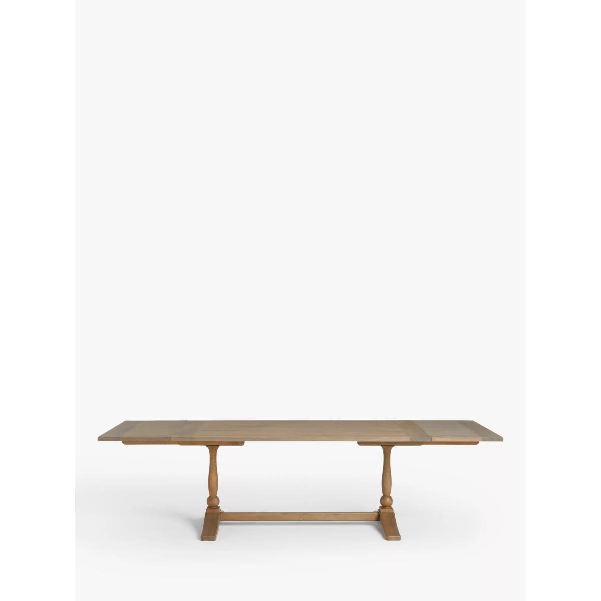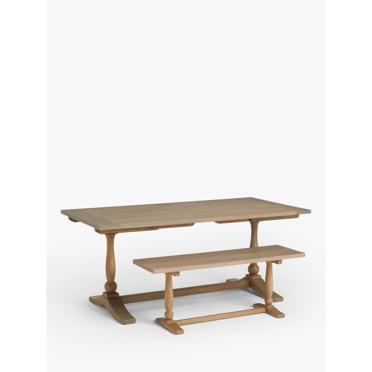 This attractive dining table extends via a slide-out leaf to seat up to 8 and features extended, braced pillar legs for stability. Designed in-house by the design studio, Clemence is an oak and rattan range with antique brass hardware and heritage detailing, elegant turned and fluted details and pillar legs. A soft grey stain adds a refined and aged look to this classic range. Want to see it first? You may want to see and get a feel for the furniture in one of our shops before ordering. We'll be able to tell you where the range you'd like to view is on display.