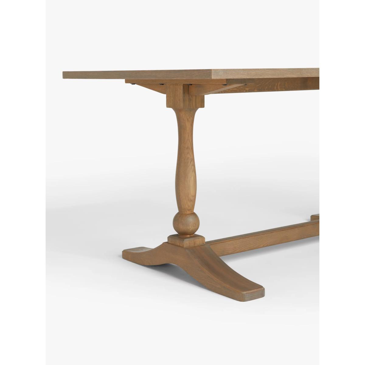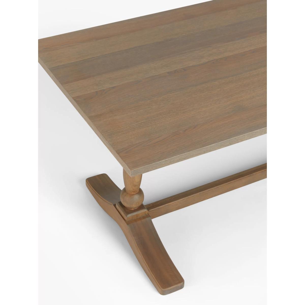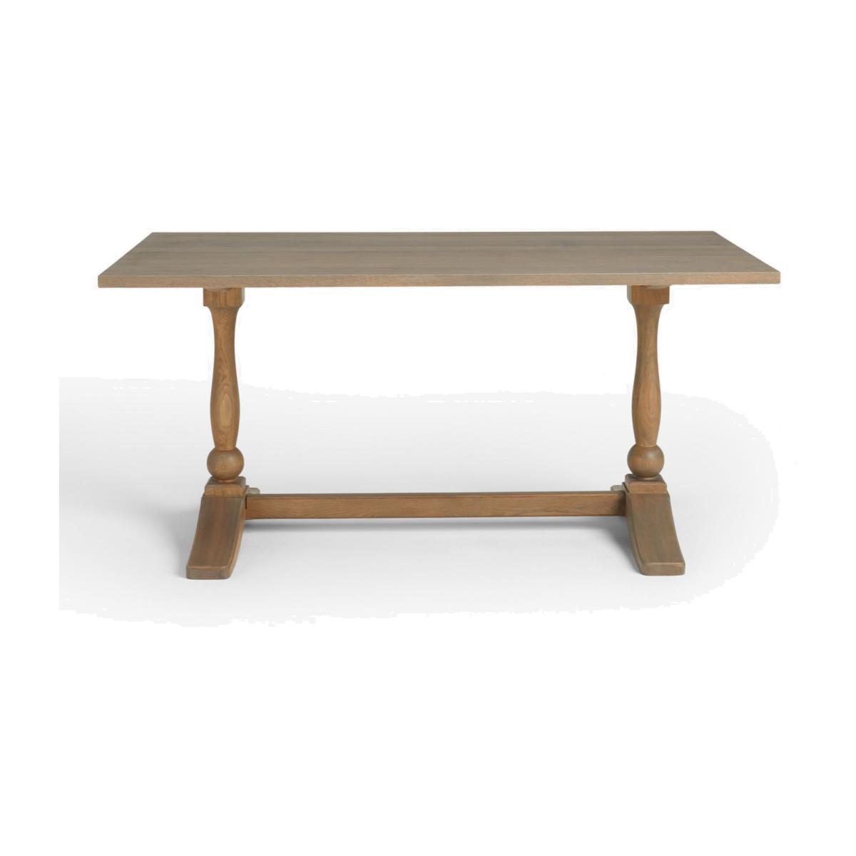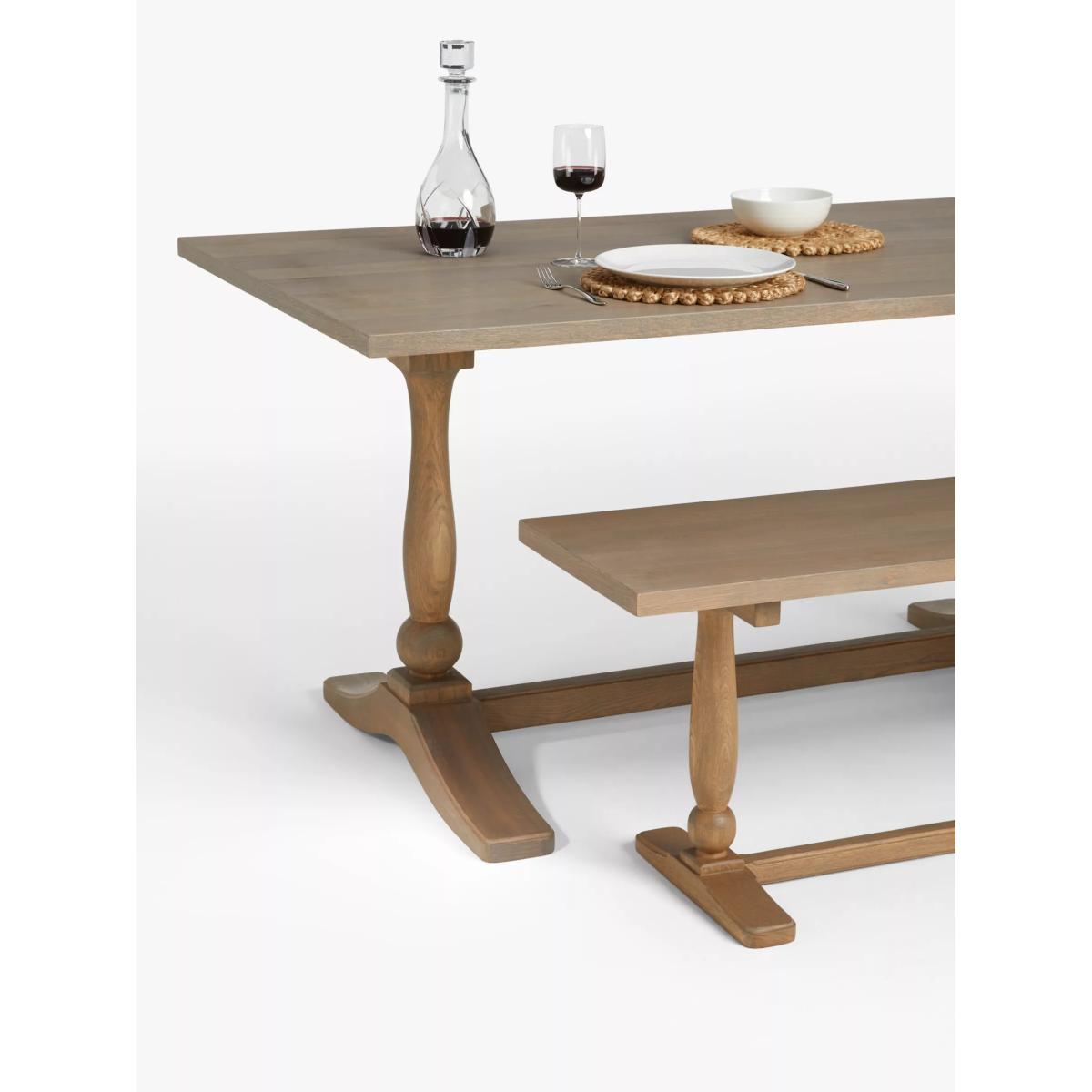 A classic oak table for the dining area, Clemence has sturdy, beautifully wood-turned pillar legs and fluted details. Seating up to six people comfortably, this highly durable design makes the most of its natural wood grain patterns. A soft grey wood stain adds a refined and aged look. By choosing this product you are supporting responsible management of the world's forests. The Forest Stewardship Council® (FSC®) is a global, not-for-profit organisation that helps take care of forests and the people and wildlife that call them home. To learn more, visit fsc.org. Want to see it first? You may want to see and get a feel for the furniture in one of our shops before ordering. We'll be able to tell you where the range you'd like to view is on display.