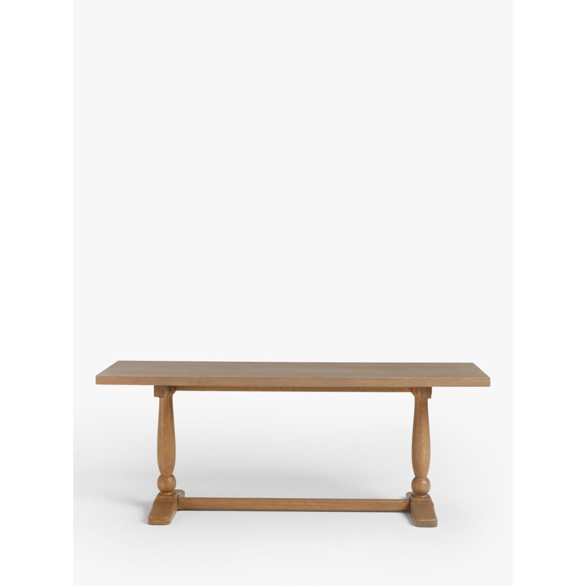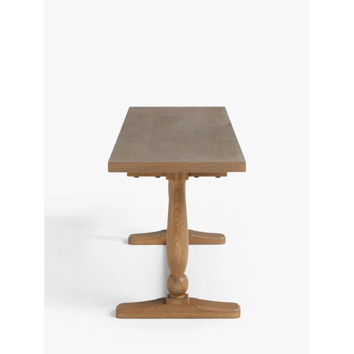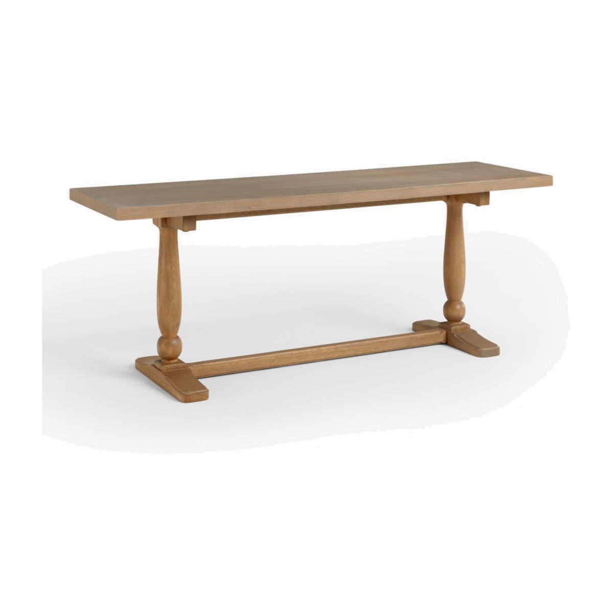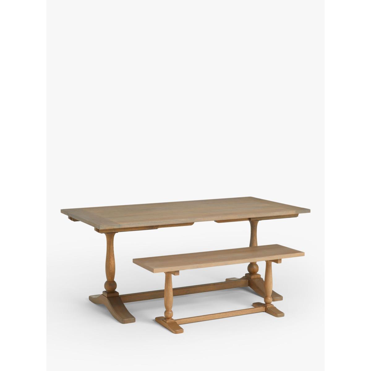 Made from light oak wood with an aged effect, this dining bench has turned legs that are cross-braced for added stability. It seats up to three. Want to see it first? You may want to see and get a feel for the furniture in one of our shops before ordering. We'll be able to tell you where the range you'd like to view is on display.
