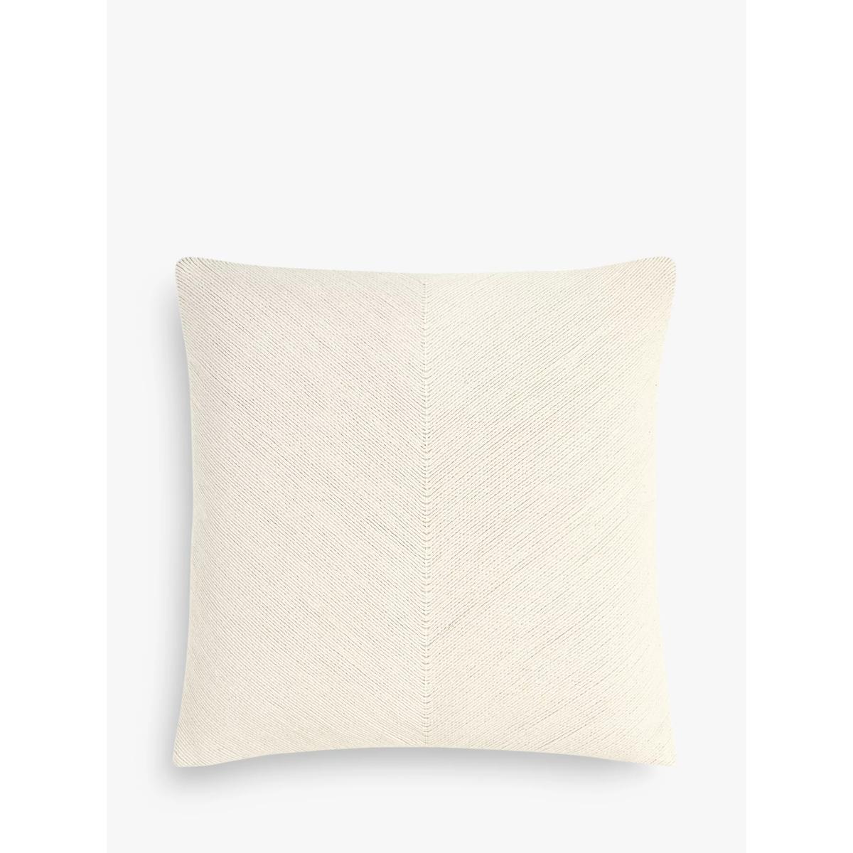 This cotton cushion is woven with a simple corded "v" design and hand-guided embroidery detail.