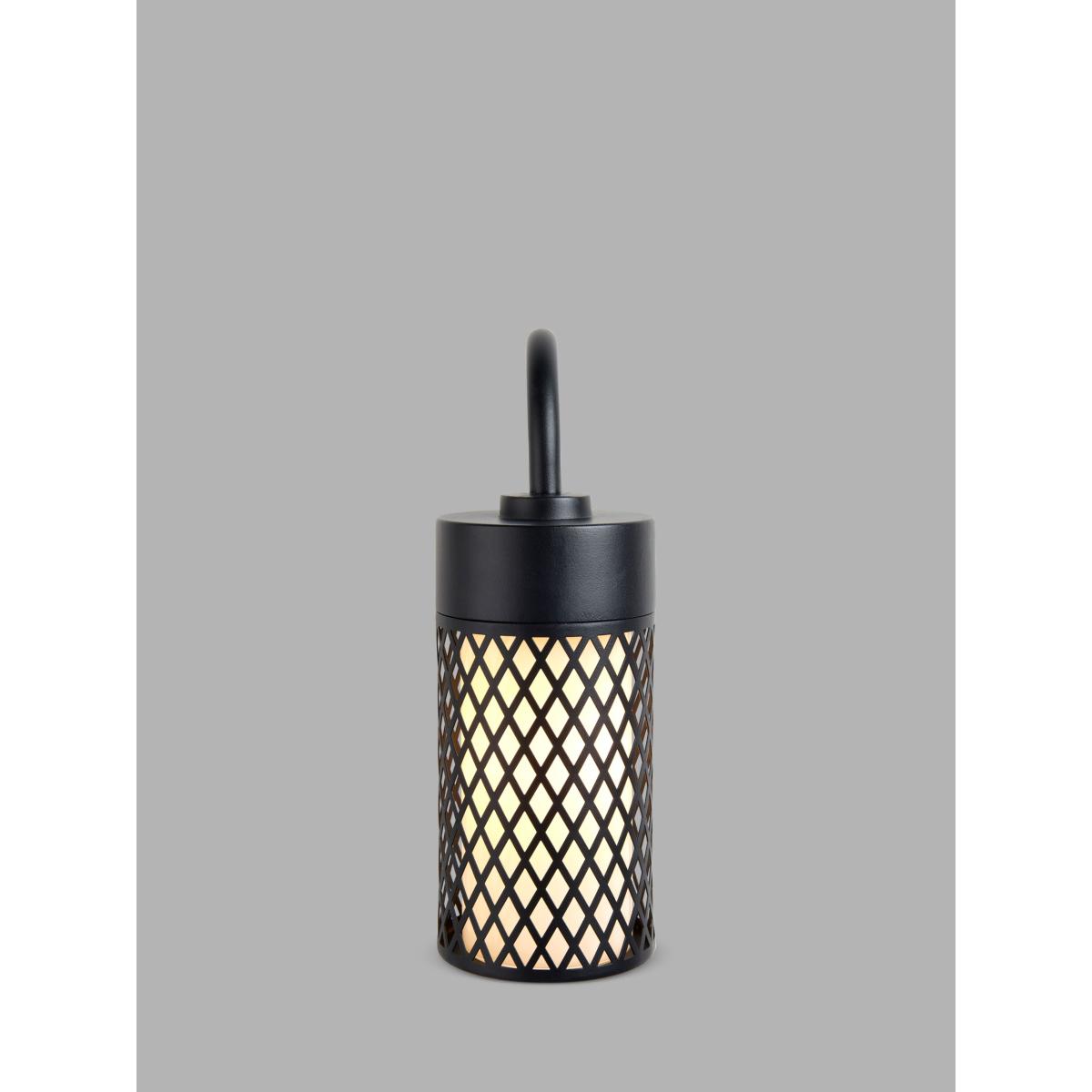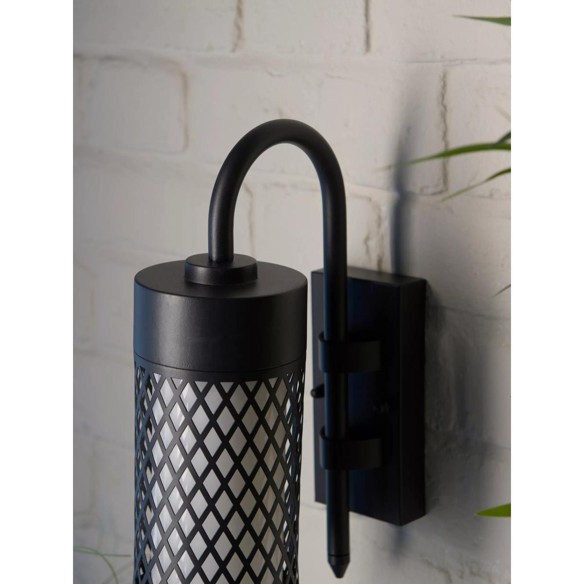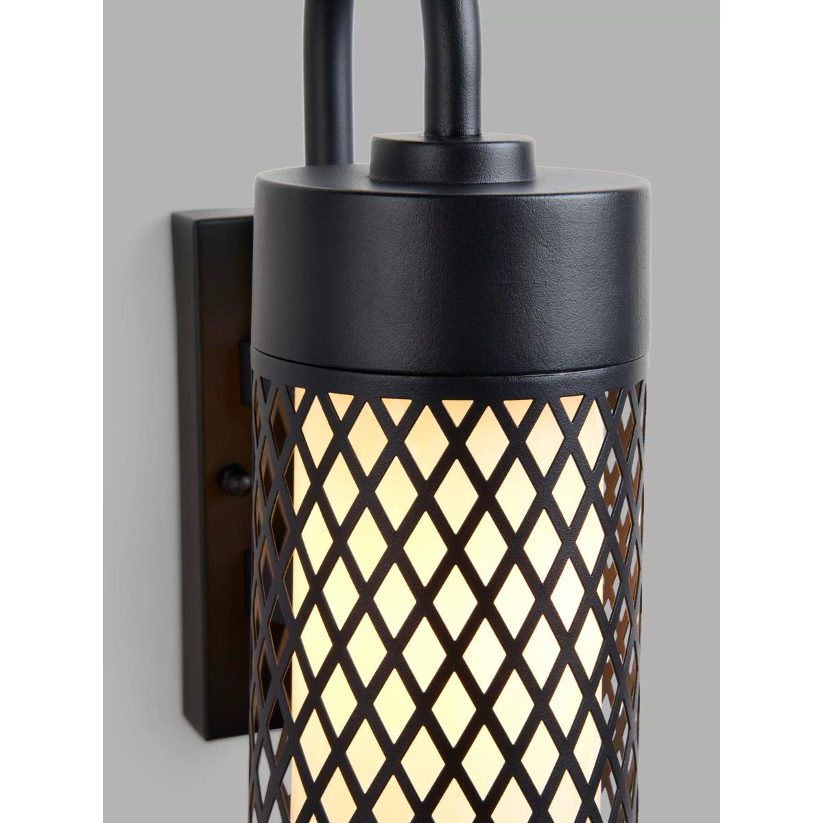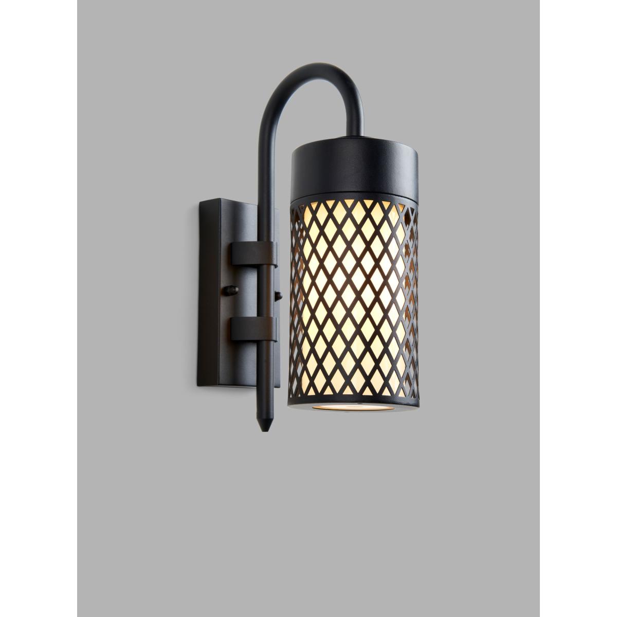With its caged lantern-style design, this modern wall light is a great option for porches or pathways. IP44-rated and resistant to splashing water, the sealed glass shade offers a soft glow when lit. One LED bulb is required.