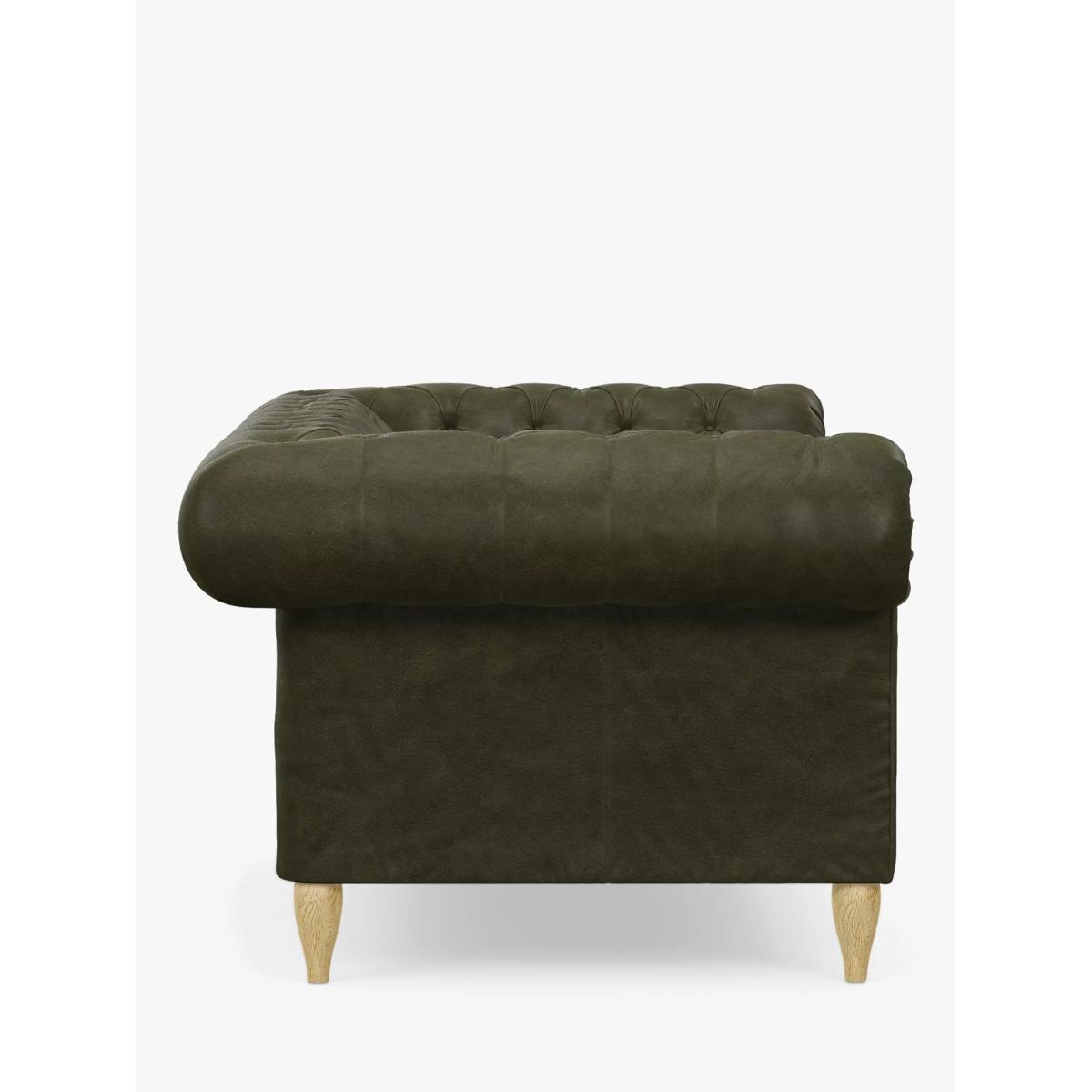 Product Information The Cromwell range has a classic Chesterfield style, with rolled arms and deep, hand pleated buttoned back. Design details Generous scroll arms Sprung seat with sumptuous fibre filling Hardwood legs Designer's notesCromwell is an authentic interpretation of the classic and timeless Chesterfield design, showcasing hand craftsmanship and traditional upholstery. Foam free cushionsThis product has a fibre seat interior sourced from the highest quality recycled content. You will notice that within the first couple of days of use in your home, the seats of your furniture will ‘flatten down’. This is quite normal and after a short time your furniture will have that luxurious ‘lived-in’ appearance. We recommend that the seat cushions are ‘plumped up’ daily. Medium: Striking a balance between support and comfort, this range has a medium comfort rating. With a structured designed to help retain shape, these sofa cushions retain more of their shape when sat on, and require less plumping. As leather is a natural product, there are natural characteristics on each leather hide used to make our sofas. These could be things like brand marks, insect bites or wrinkles. A large sofa could be made with as many as four hides so there may also be some slight colour variation, however we have strict guidelines to make sure any noticeable marks aren't in a prominent place. These distinctive qualities also mean that no two pieces of leather furniture will be exactly the same. It's the little things We care about our furniture; how it's designed, the materials used and the people who make it. That's why every detail is carefully considered, with more than 20 quality checks, to ensure you're as proud of it as we are. Try before you buy We're confident in our furniture's quality, but it's always a good idea to check that it's a good personal fit for you. Measuring Up for Furniture Guide Sofas, Sofa Beds & Chairs Buying Guide Upholstery Care Guide