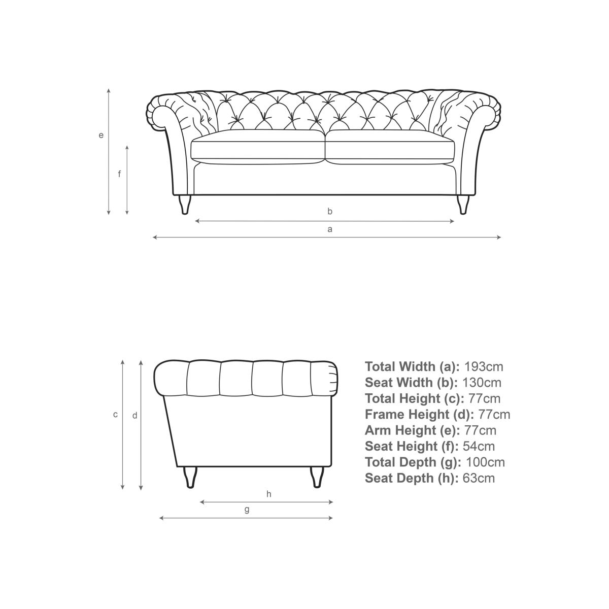 Product Information The Cromwell range has a classic Chesterfield style, with rolled arms and deep, hand pleated buttoned back. Design details Generous scroll arms Sprung seat with sumptuous fibre filling Hardwood legs Designer's notesCromwell is an authentic interpretation of the classic and timeless Chesterfield design, showcasing hand craftsmanship and traditional upholstery. Foam free cushionsThis product has a fibre seat interior sourced from the highest quality recycled content. You will notice that within the first couple of days of use in your home, the seats of your furniture will ‘flatten down’. This is quite normal and after a short time your furniture will have that luxurious ‘lived-in’ appearance. We recommend that the seat cushions are ‘plumped up’ daily. Medium: Striking a balance between support and comfort, this range has a medium comfort rating. With a structured designed to help retain shape, these sofa cushions retain more of their shape when sat on, and require less plumping. As leather is a natural product, there are natural characteristics on each leather hide used to make our sofas. These could be things like brand marks, insect bites or wrinkles. A large sofa could be made with as many as four hides so there may also be some slight colour variation, however we have strict guidelines to make sure any noticeable marks aren't in a prominent place. These distinctive qualities also mean that no two pieces of leather furniture will be exactly the same. It's the little things We care about our furniture; how it's designed, the materials used and the people who make it. That's why every detail is carefully considered, with more than 20 quality checks, to ensure you're as proud of it as we are. Try before you buy We're confident in our furniture's quality, but it's always a good idea to check that it's a good personal fit for you. Measuring Up for Furniture Guide Sofas, Sofa Beds & Chairs Buying Guide Upholstery Care Guide