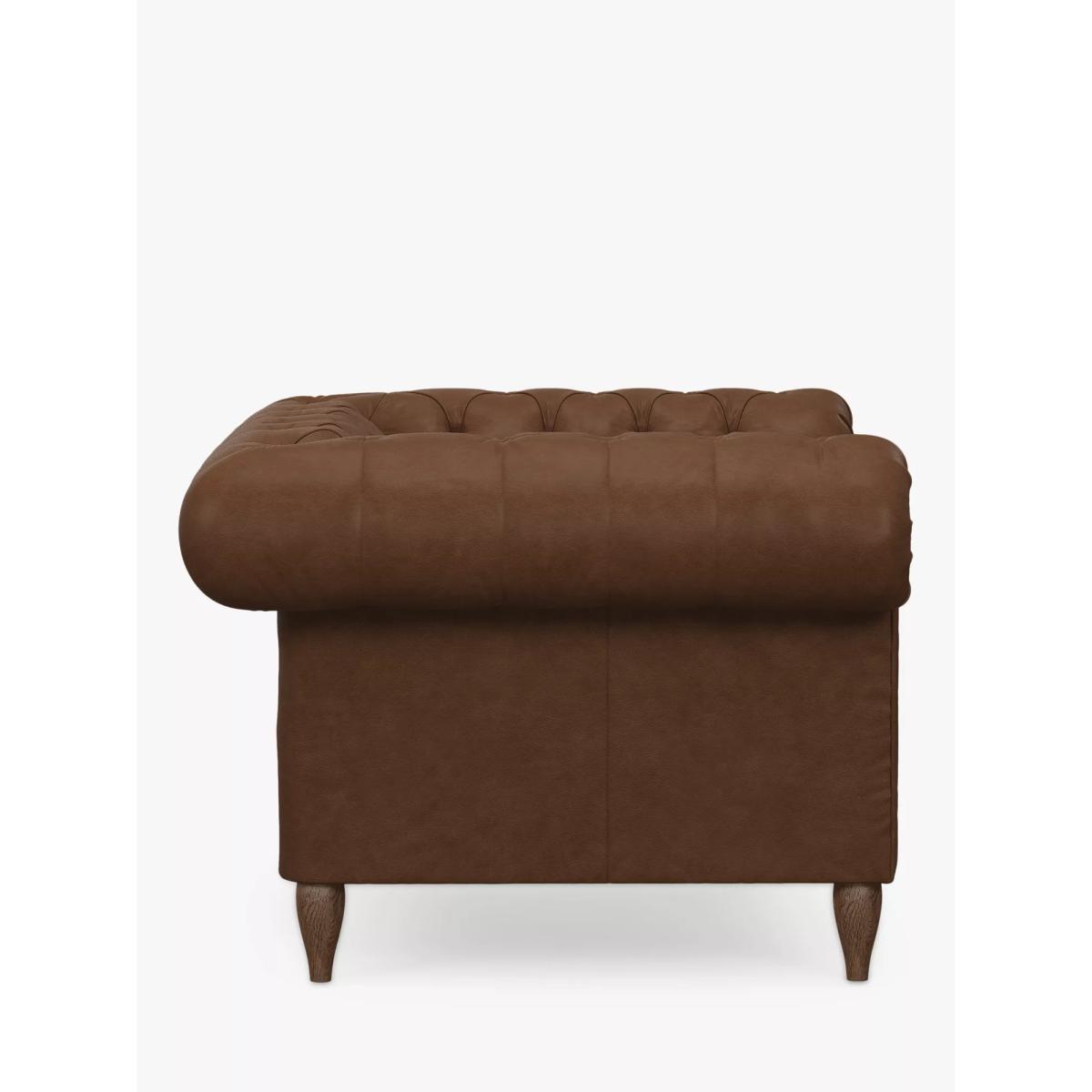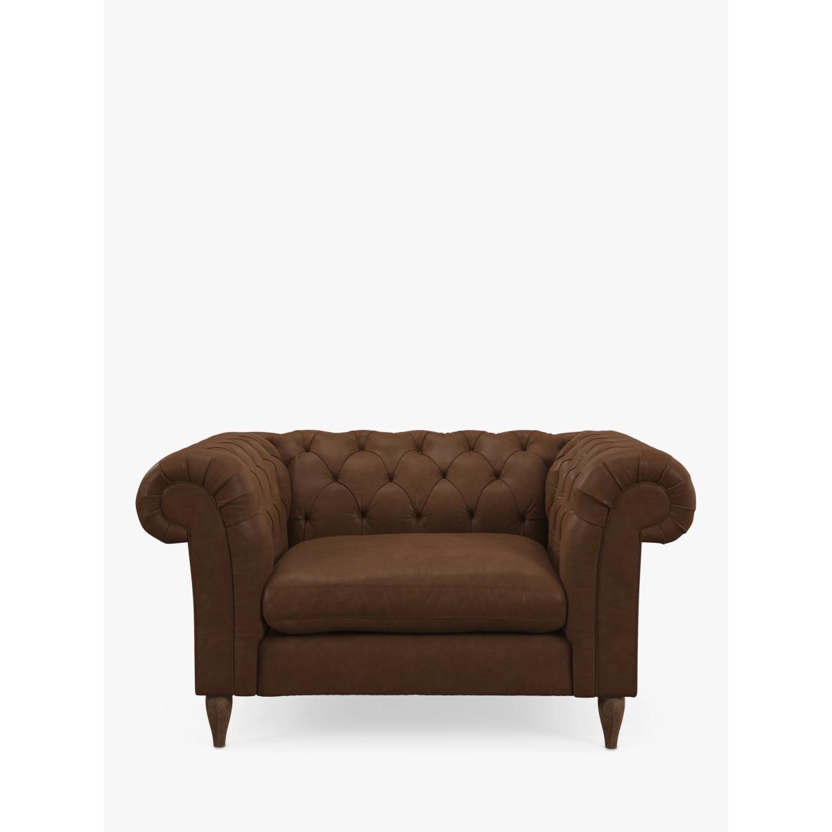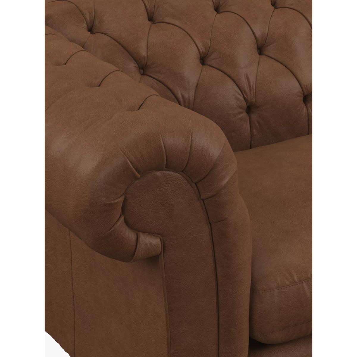 Product Information The Cromwell range has a classic Chesterfield style, with rolled arms and deep, hand pleated buttoned back. Design details Generous scroll arms Sprung seat with sumptuous fibre filling Hardwood legs Designer's notesCromwell is an authentic interpretation of the classic and timeless Chesterfield design, showcasing hand craftsmanship and traditional upholstery. Foam free cushionsThis product has a fibre seat interior sourced from the highest quality recycled content. You will notice that within the first couple of days of use in your home, the seats of your furniture will ‘flatten down’. This is quite normal and after a short time your furniture will have that luxurious ‘lived-in’ appearance. We recommend that the seat cushions are ‘plumped up’ daily. Medium: Striking a balance between support and comfort, this range has a medium comfort rating. With a structured designed to help retain shape, these sofa cushions retain more of their shape when sat on, and require less plumping. As leather is a natural product, there are natural characteristics on each leather hide used to make our sofas. These could be things like brand marks, insect bites or wrinkles. A large sofa could be made with as many as four hides so there may also be some slight colour variation, however we have strict guidelines to make sure any noticeable marks aren't in a prominent place. These distinctive qualities also mean that no two pieces of leather furniture will be exactly the same. It's the little things We care about our furniture; how it's designed, the materials used and the people who make it. That's why every detail is carefully considered, with more than 20 quality checks, to ensure you're as proud of it as we are. Try before you buy We're confident in our furniture's quality, but it's always a good idea to check that it's a good personal fit for you. Measuring Up for Furniture Guide Sofas, Sofa Beds & Chairs Buying Guide Upholstery Care Guide