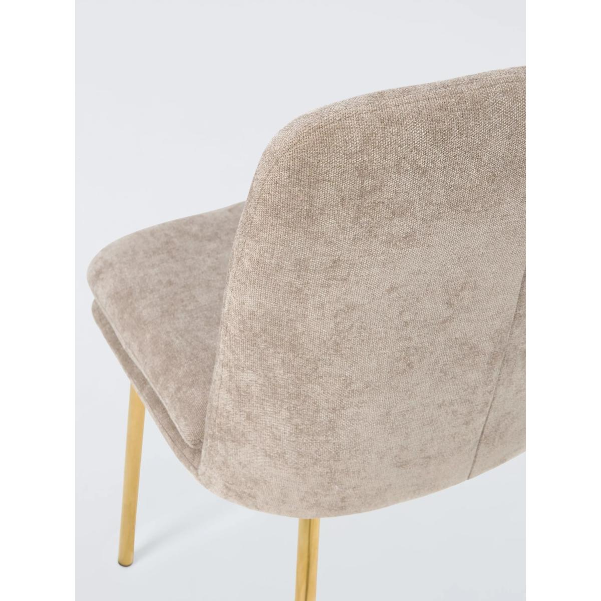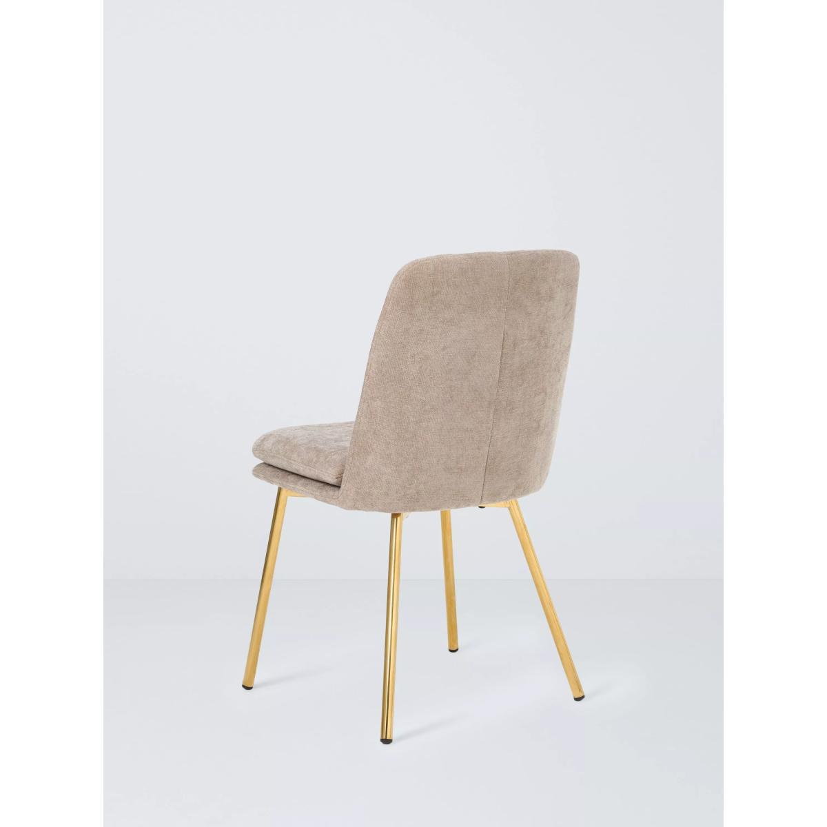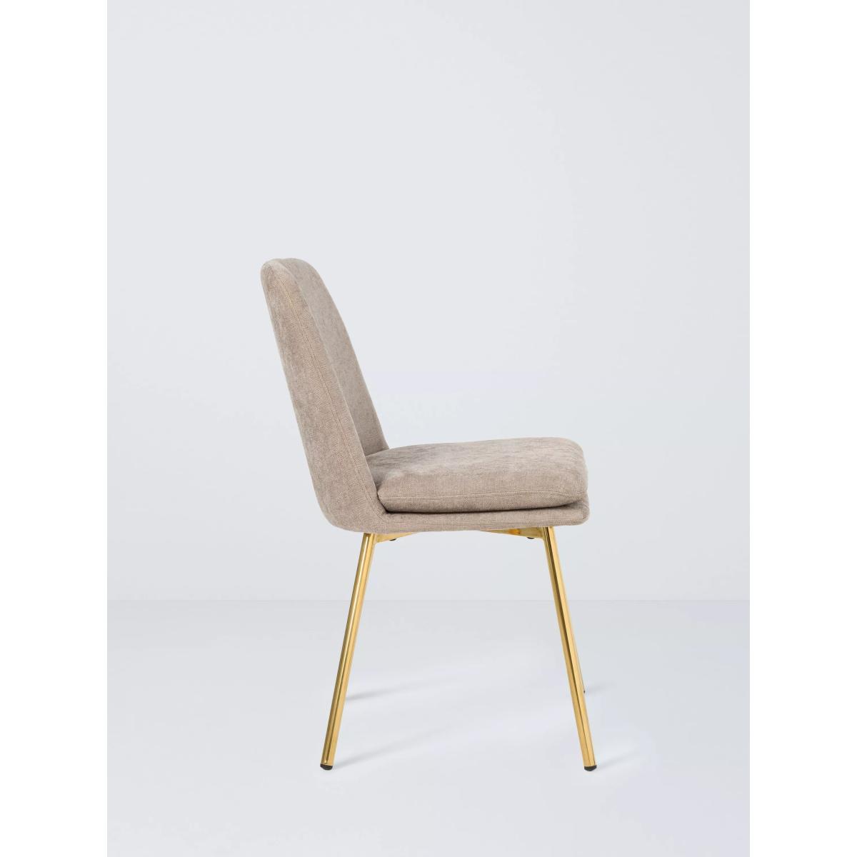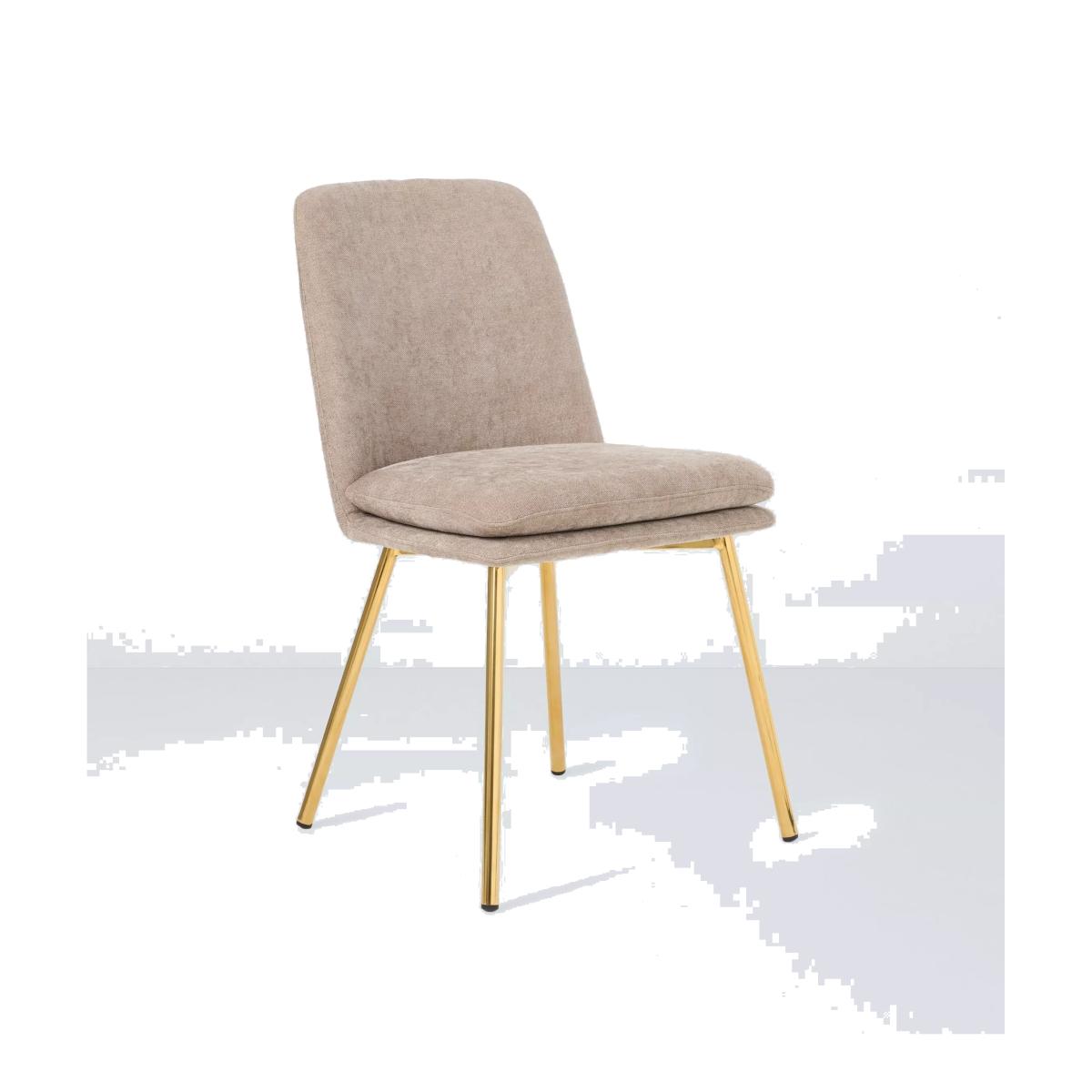 Brass legs paired with a soft, fawn fabric seat and back make for a dining chair that's modern and elegant as well a being comfortable. Want to see it first? You may want to see and get a feel for the furniture in one of our shops before ordering. We'll be able to tell you where the range you'd like to view is on display.