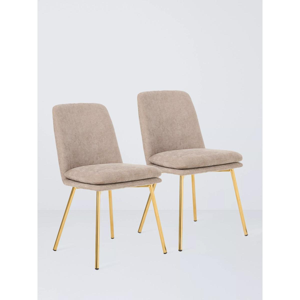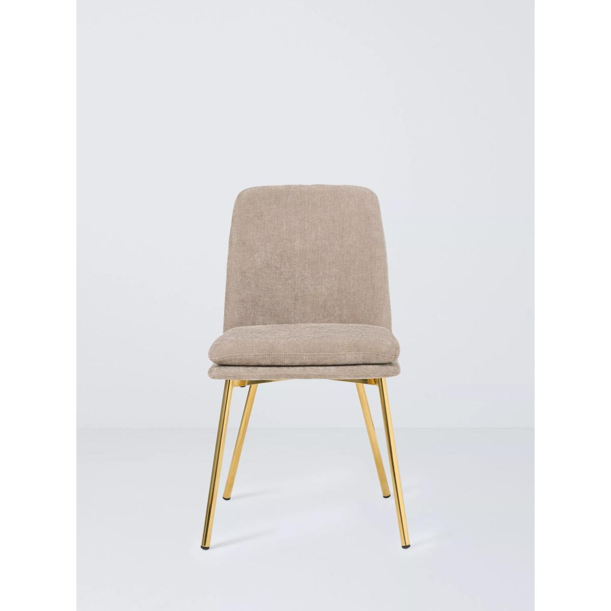 Brass legs paired with a soft, fawn fabric seat and back make for a dining chair that's modern and elegant as well a being comfortable. Sold as a pair. Want to see it first? You may want to see and get a feel for the furniture in one of our shops before ordering. We'll be able to tell you where the range you'd like to view is on display.