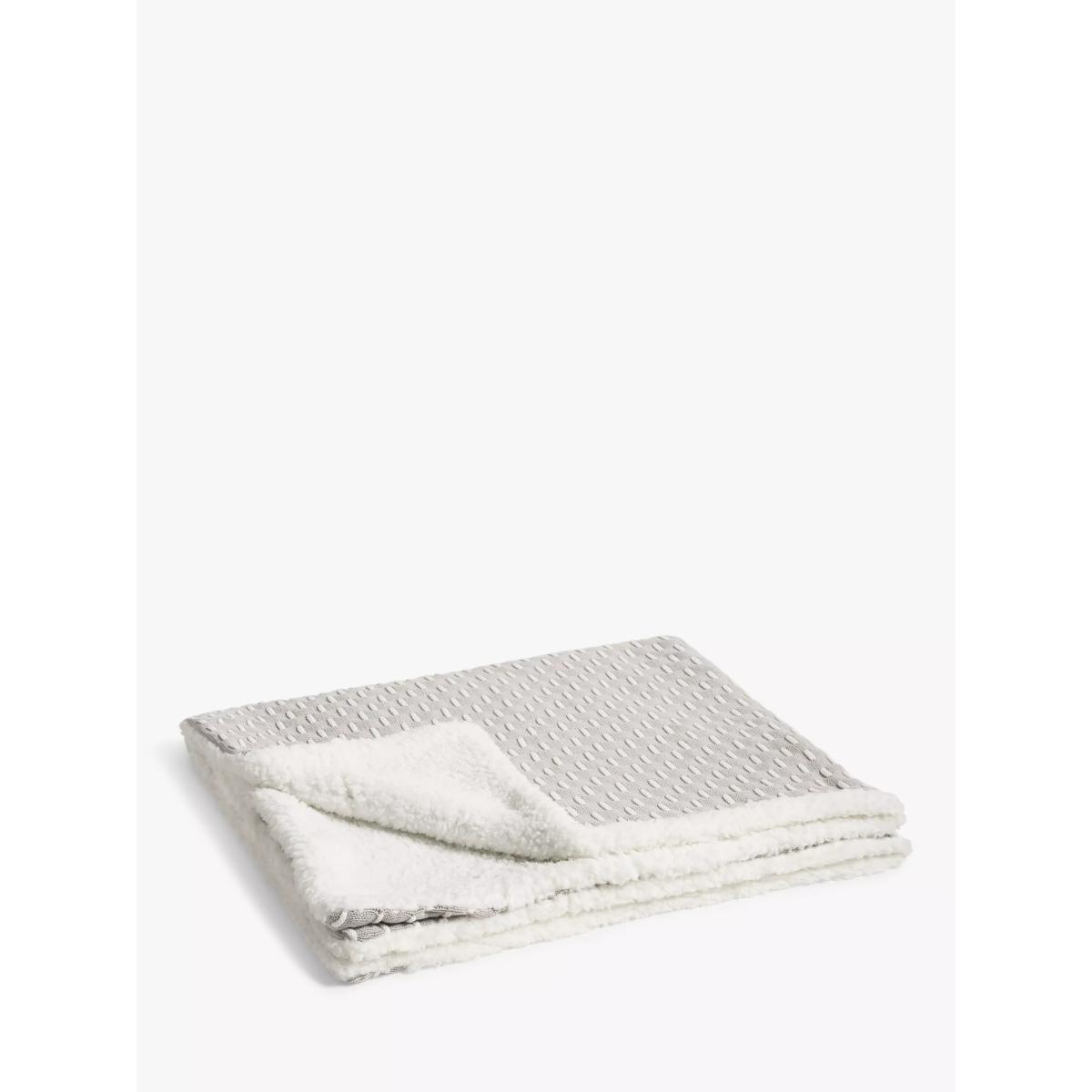 Made from soft sherpa fleece with a versatile dash pattern on the front, this cosy blanket is one you'll both love. Use it to give baby a soft surface to lie on while keeping them cosy and warm during colder months. Ever versatile, it makes a great gift idea for a new baby or baby shower, too. Better Cotton By choosing our cotton products, you’re supporting our investment in Better Cotton’s mission to help cotton communities survive and thrive while protecting and restoring the environment. Better Cotton Farmers are farmers who care for the environment and respect workers’ rights and wellbeing. This product is sourced via a system of mass balance and therefore may not contain Better Cotton. bettercotton.org/massbalance
