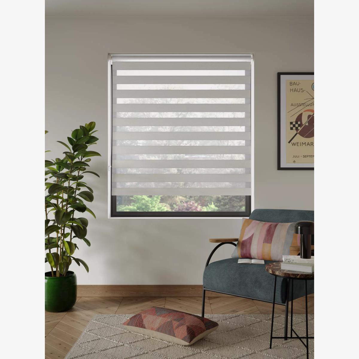 Our day and night blind allows you to control how much light you want to enter your room as the fabric alternates between sheer and opaque blocks. When adjusted to fully sheer it will allow maximum light into your room. When adjusted so it's fully opaque it has the same quality as a daylight blind, giving you some privacy but still letting light through. And you also have the option to adjust so the sheer and opaque blocks alternate, finding a happy medium of privacy and light. Pair it with curtains for when you want complete privacy from the outside world. Key features: Can be installed either inside or outside the window recess, to the wall or ceiling Can be standard or reverse rolled. Standard gives a close fit to the window, helping eliminate light. Reverse brings the material forward over the roll which conceals it and creates space between the blind and window Chain mechanism can be attached on the left or right-hand side, without affecting the way the blind is rolled Width can be cut to size Supplied with easy fit universal brackets Includes safety devices to keep children safe Worth knowing... The width stated in our product specifications is the total width of the blind including mechanisms and brackets. The width of the fabric alone will be a few centimetres less than this. Safety warning Young children can be strangled by loops in pull cords, chains, tapes and inner cords that operate the product. To avoid strangulation and entanglement, keep cords out of the reach of young children - cords may become wrapped around a child's neck Move beds, cots and furniture away from window covering cords Do not tie cords together. Make sure cords do not twist and create a loop More information on child safety can be found on our Child Safety Hub