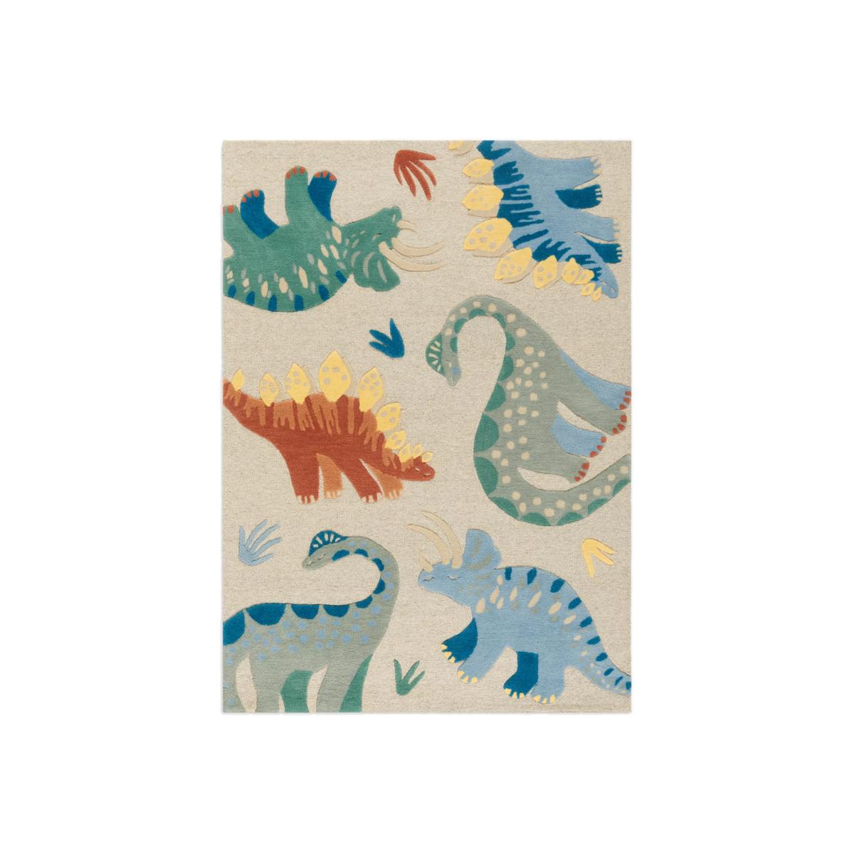Look out there are dinosaurs about! Designed with a fun dinosaur print, this rug is a great way to complete their dinosaur, animal, or jungle-themed room. The tufted rug is handcrafted in a hi-low 100% wool pile for a quality finish that's warm and soft to the touch. The blend of dusty colours and marled natural ground gives this rug an artistic flair that both parents and kids alike will love.
