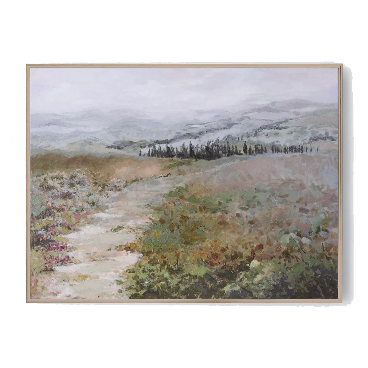 A countryside path draws the eye through to the distant landscape in this print on canvas. Framed, ready to hang on your wall. Have you thought about wall hooks and fittings? By choosing this product you are supporting responsible management of the world's forests. The Forest Stewardship Council® (FSC®) is a global, not-for-profit organisation that helps take care of forests and the people and wildlife that call them home. To learn more, visit fsc.org.