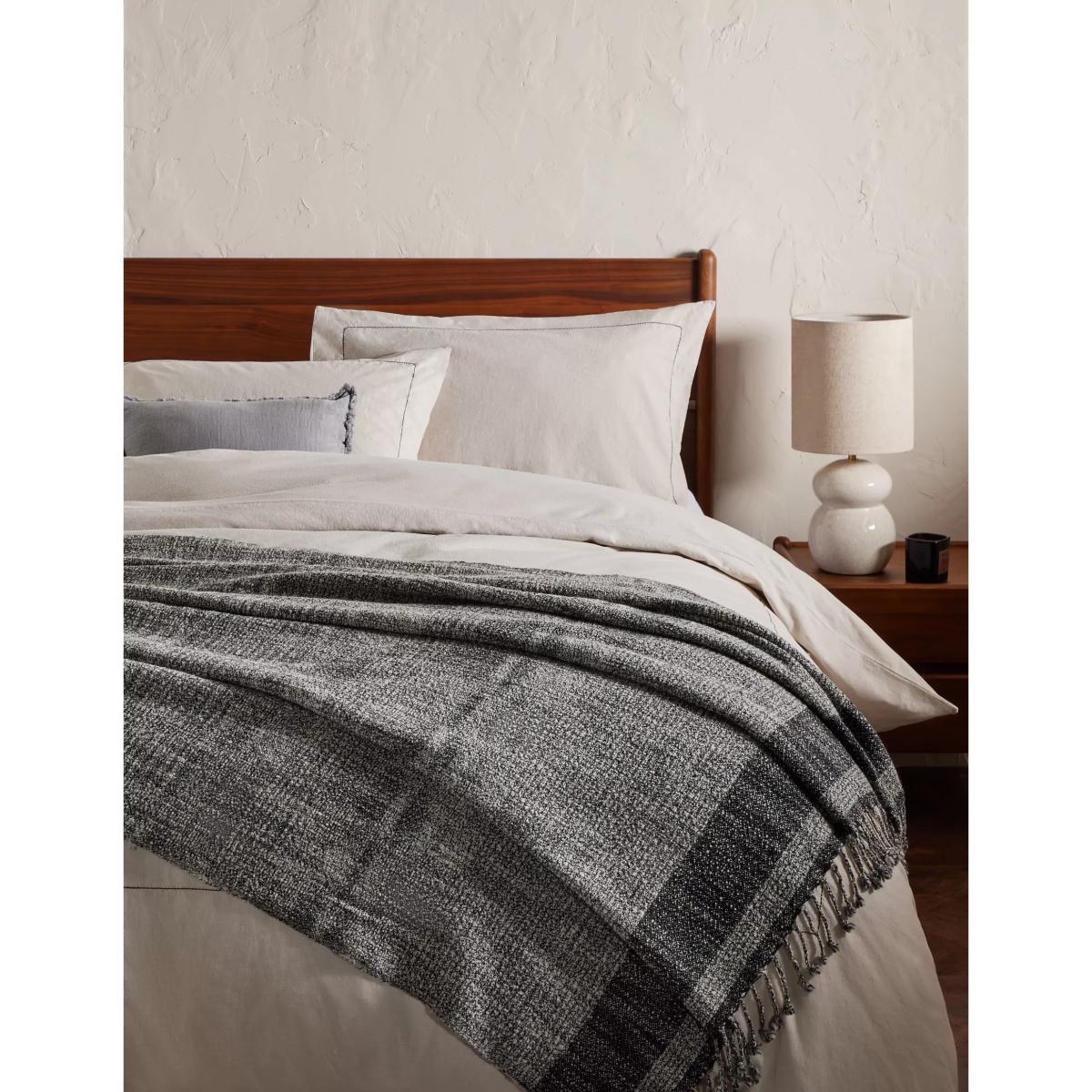 This lightweight slub wool throw has beautiful tonal gradations in shads of black and white and is finished with a fringed edge. Our generously sized throws are perfect for an extra cosy, decorative layer on your bed or keeping you cosy anywhere at home or on the move.