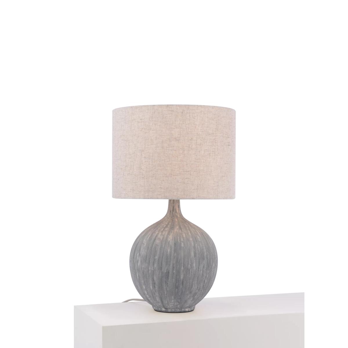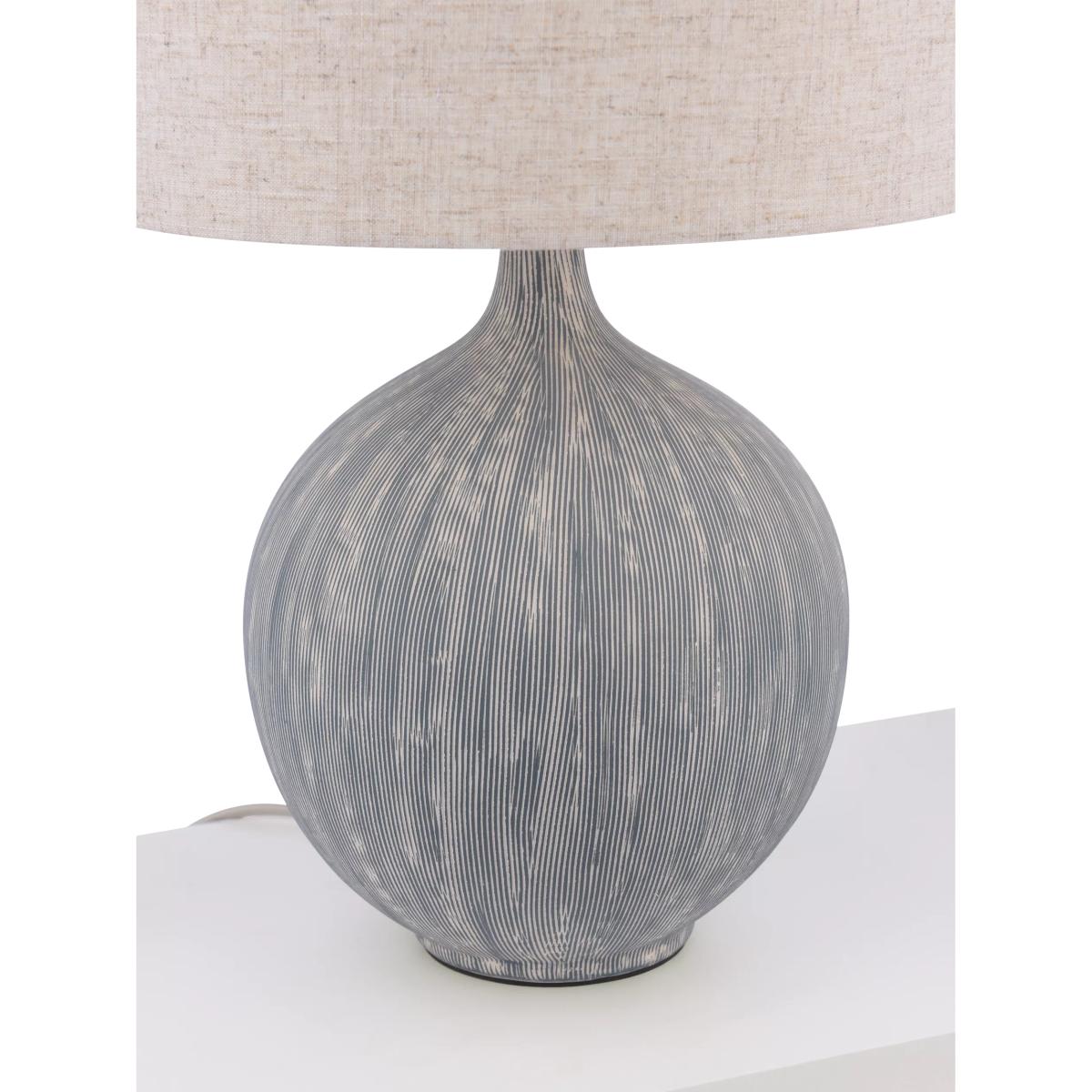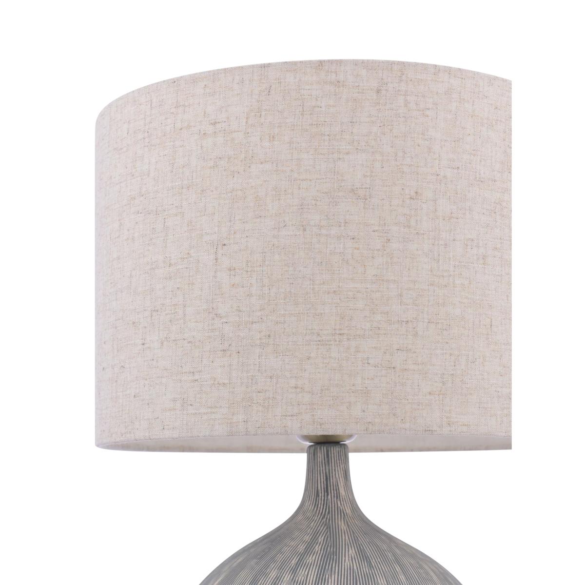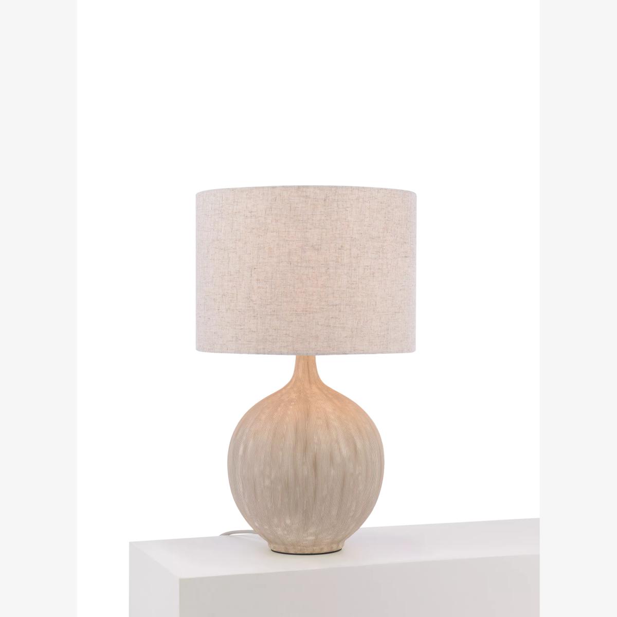 With a combed textured base for a natural easy living vibe. This table lamp comes with a linen fabric drum lampshade which looks interesting when the light is lit or when it is off. Crafted from ceramic, it sits effortlessly in both traditional and contemporary interiors.