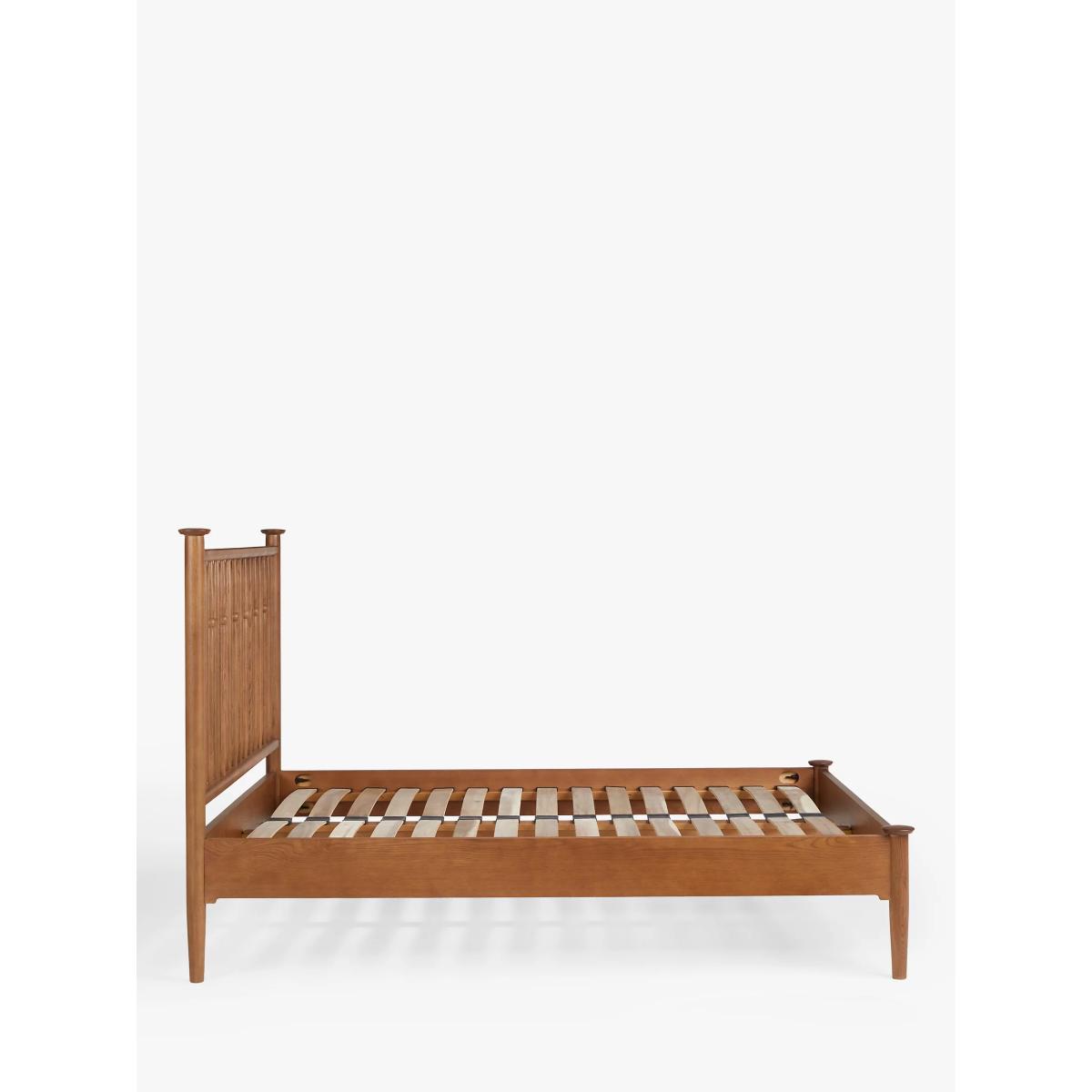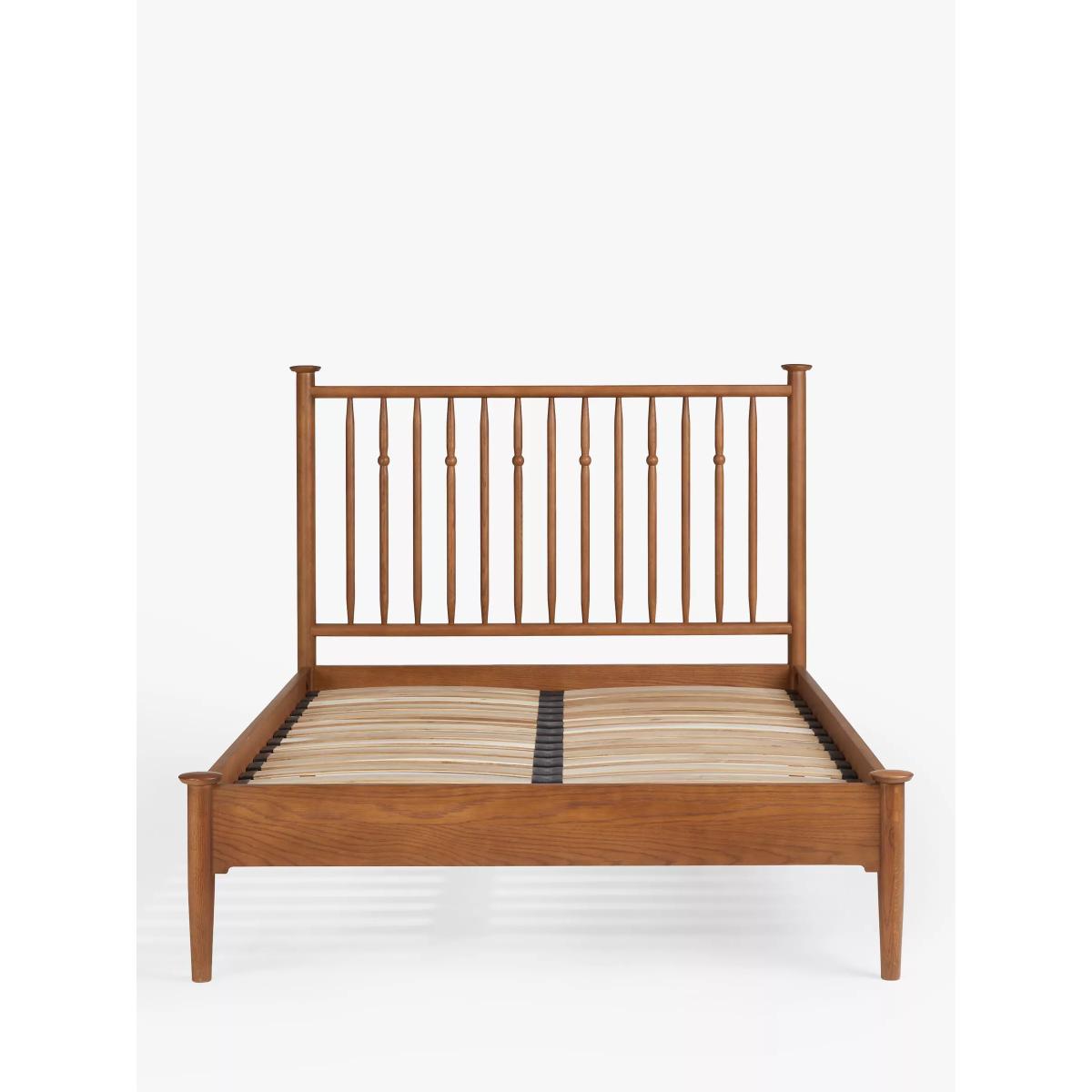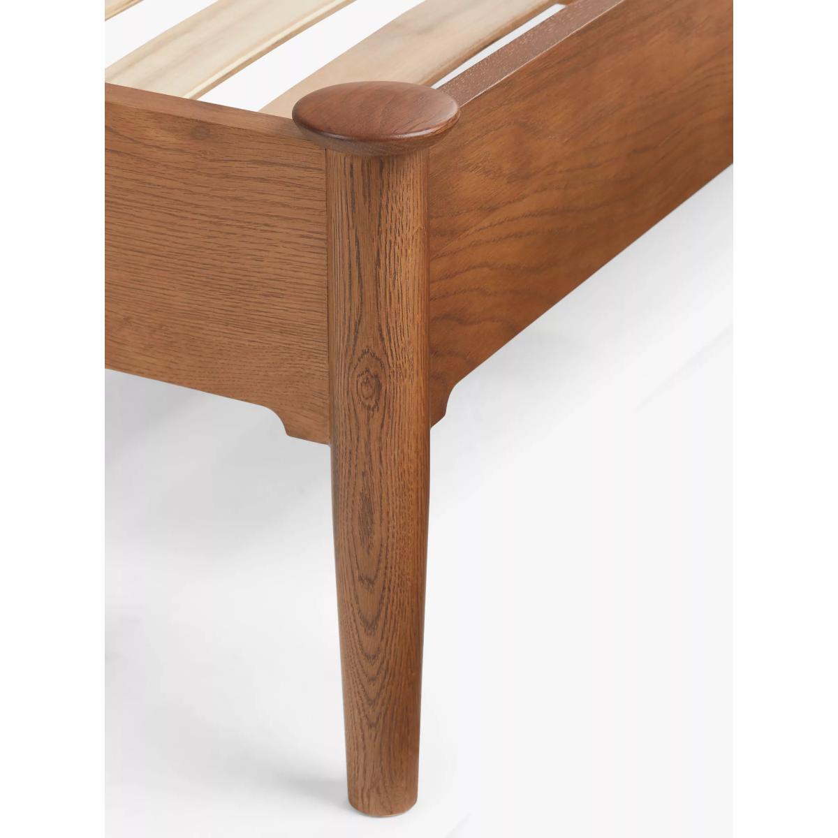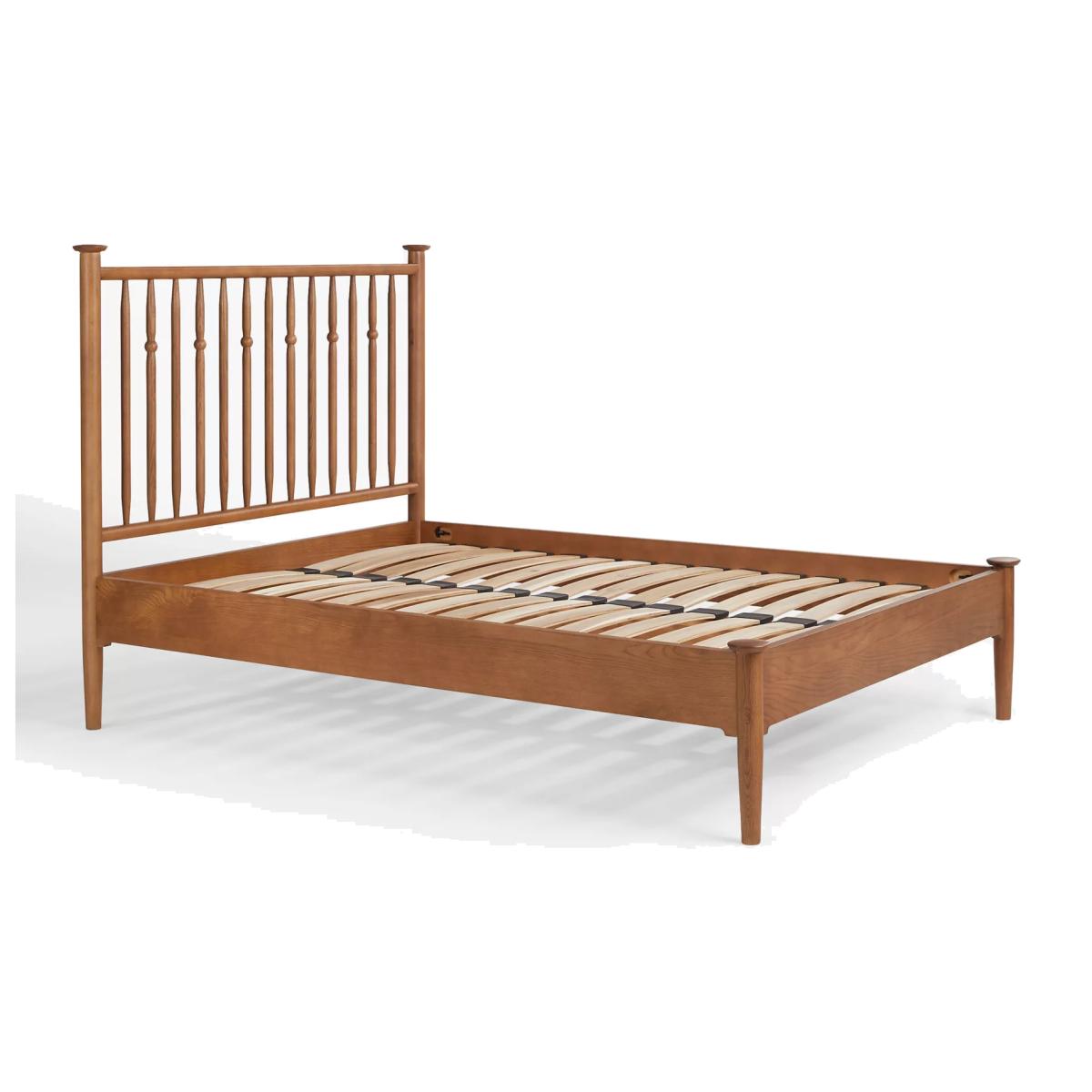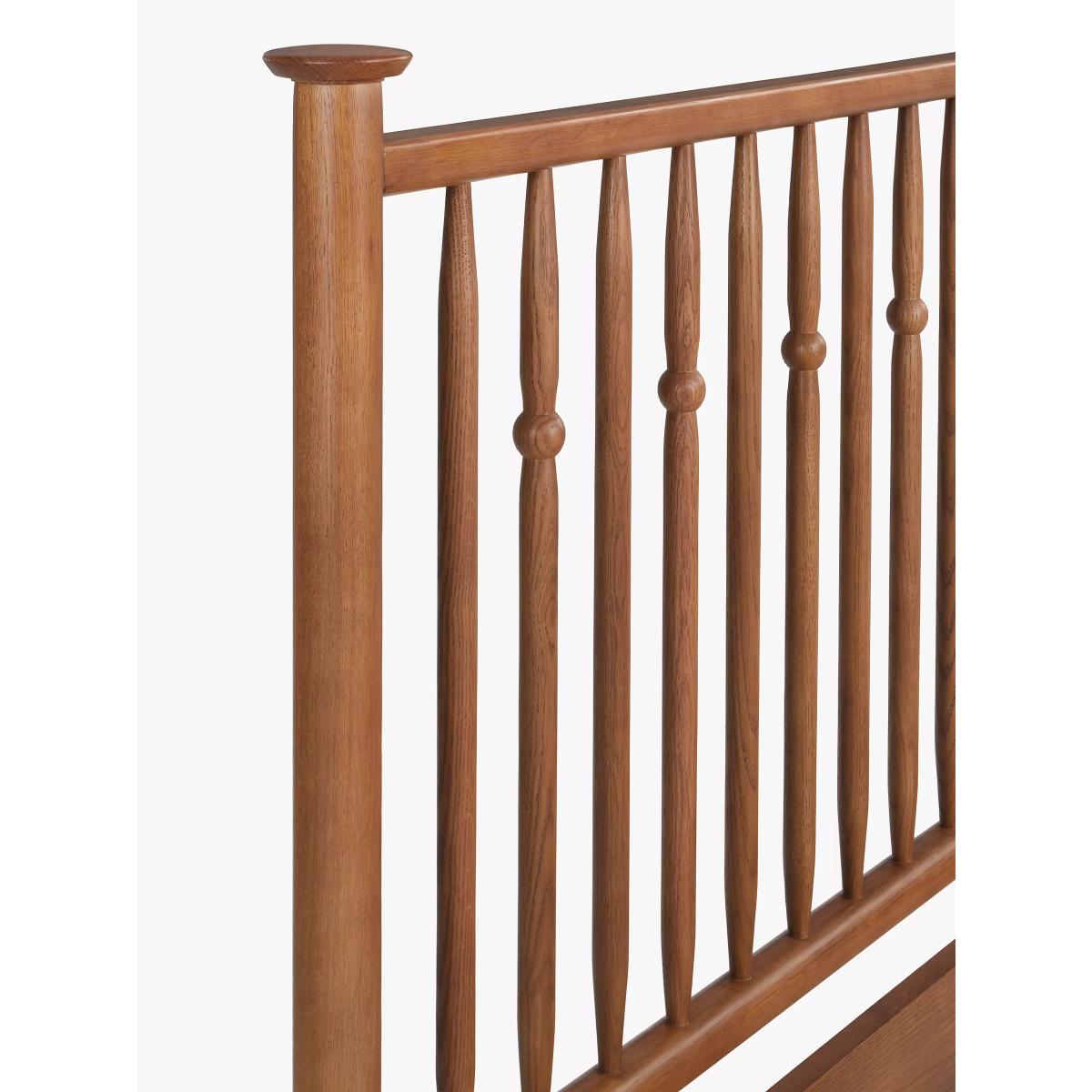 Our Edwin collection reflects influences from the Arts & Crafts movement. It includes a rich, dark stained finish with elegant solid oak knuckle and bobbin detailing, creating a sense of timeless opulence. The Edwin bed frame is crafted with a turned spindle headboard showcasing a traditional silhouette and an elegant frame, adding sophisticated charm to a classic style bedroom. Want to see it first? You may want to see and get a feel for the furniture in one of our shops before ordering. We'll be able to tell you where the range you'd like to view is on display.