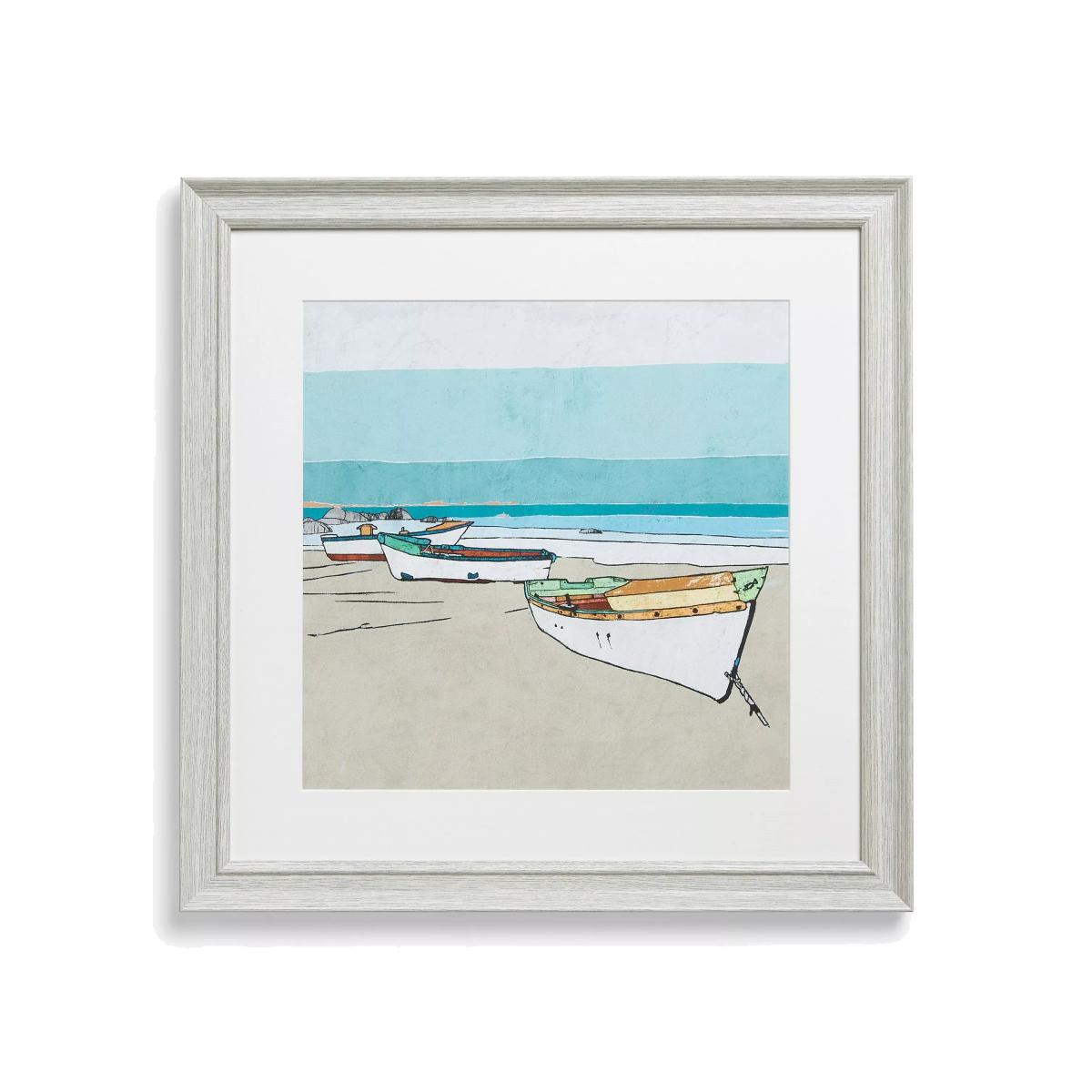 I love this print for its relaxed, seaside vibe that instantly brings a calming atmosphere to a space. It works particularly well in coastal-inspired interiors, bedrooms, or living rooms that embrace a breezy, casual style. The blue tones lend themselves to minimalist or nordic schemes, adding a splash of colour without overwhelming. Practical styling tips include pairing it with light wood or white accessories for a fresh look, and placing it above a console or sofa for maximum visual impact. To keep the focus on the artwork, opt for simple framing like this one, which complements the colours without competing for attention.