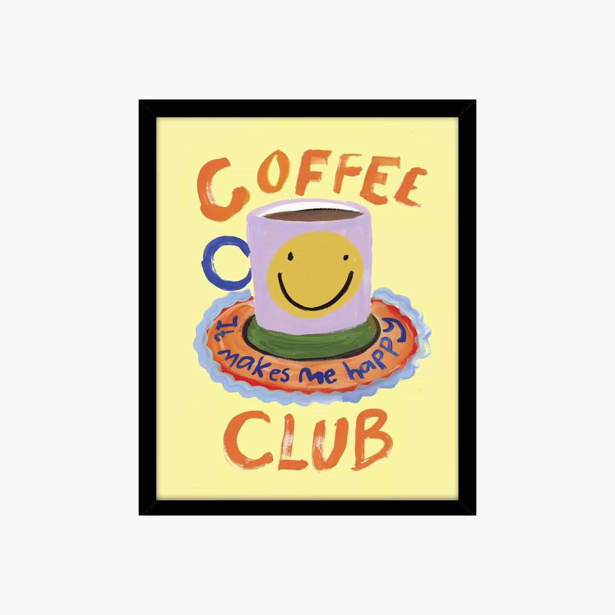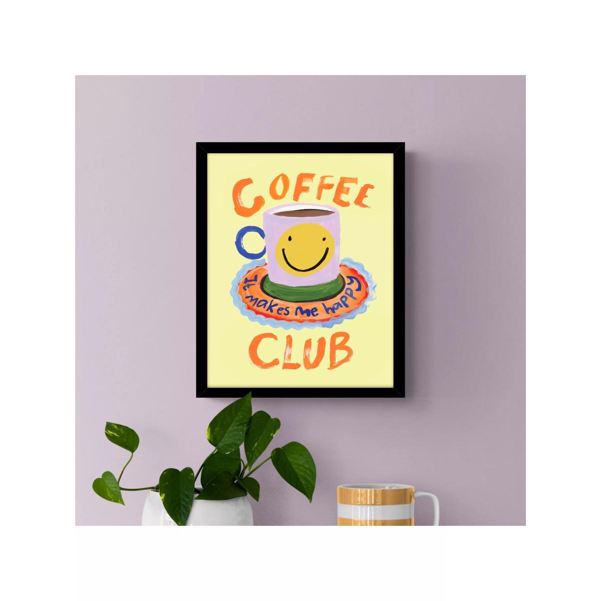 Show some love for your favourite morning ritual with this colourful framed 'Coffee Club' print from Eleanor Bowmer. Made in the UK, the print is glazed in a matt black frame, ready to hang on your wall. Every piece in Eleanor Bowmer's collection starts its journey in the heart of her Manchester studio. Here, each item is meticulously crafted with personality, bursting with colour, and drenched in unique patterns. Eleanor's talent and passion for illustration shine through every design, making her homeware and accessories truly one of a kind. Have you thought about wall hooks and fittings?