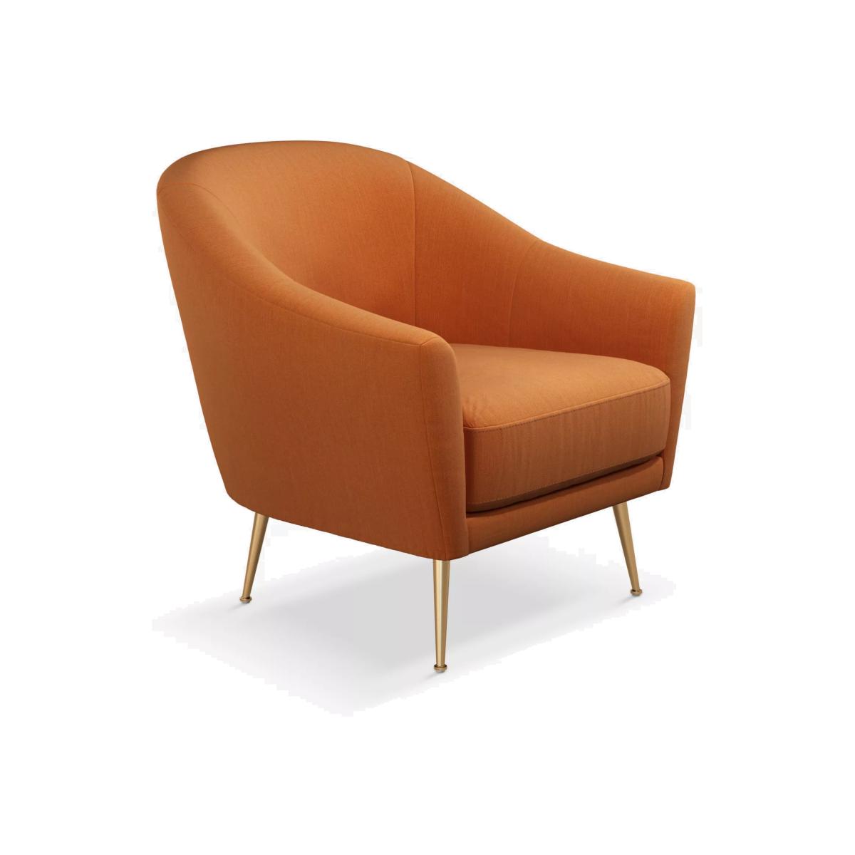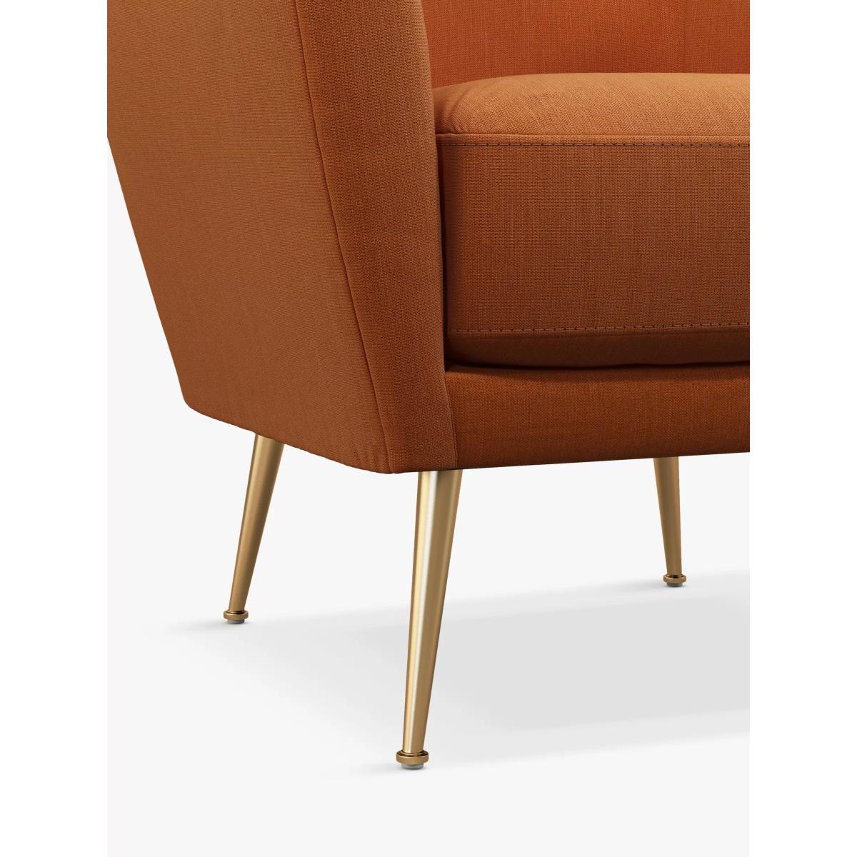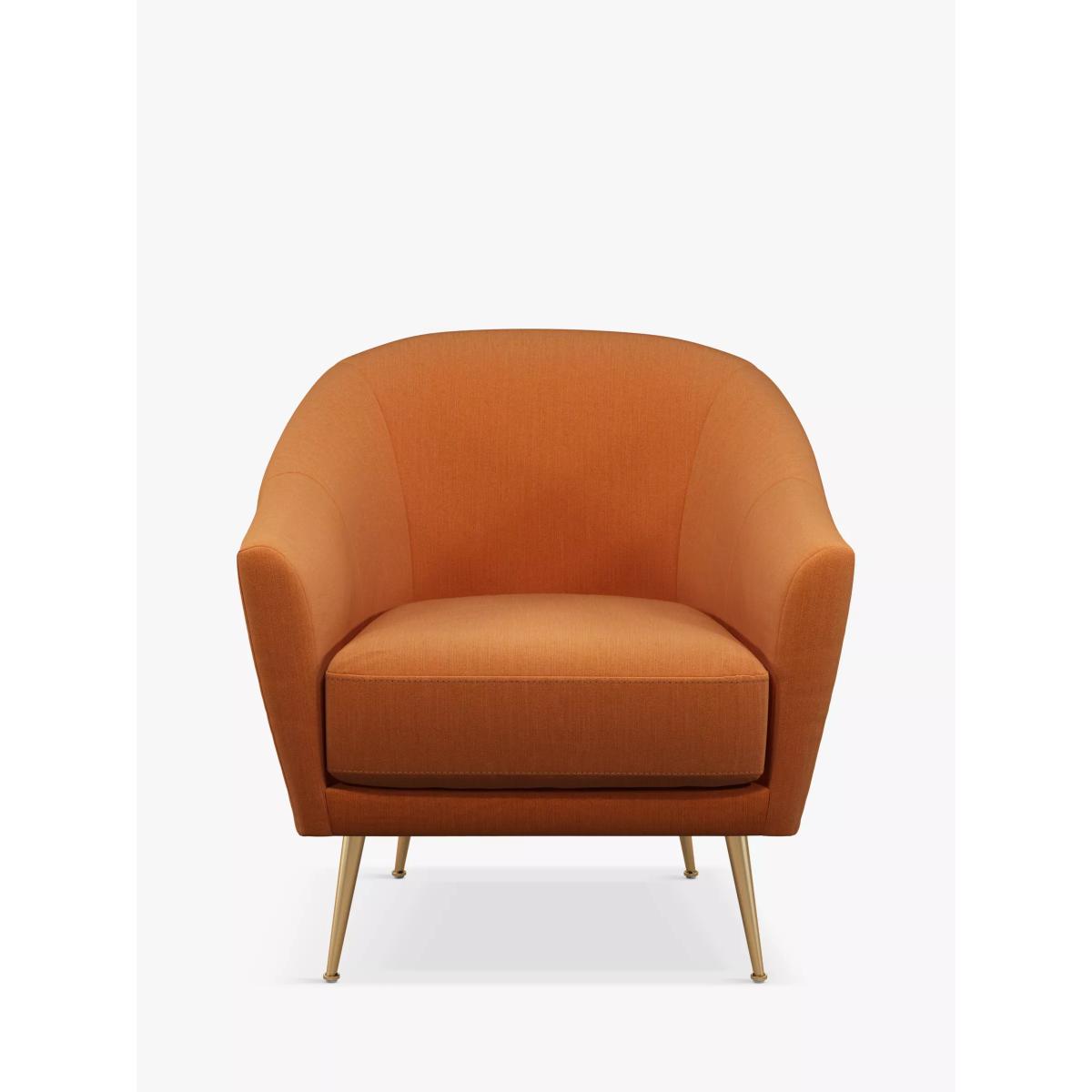 I love this armchair for its sleek, contemporary silhouette combined with a touch of glamour thanks to the gold legs. It works well in both modern and vintage-inspired interiors, offering an effortless way to add colour and personality to a space. Practical styling tips include pairing it with a textured throw or a bold cushion to highlight its shape and colour, and placing it in a reading nook or alongside a statement side table. Its warm tone makes it versatile, so it can complement earthy palettes or stand out as a statement piece in a more neutral setting.