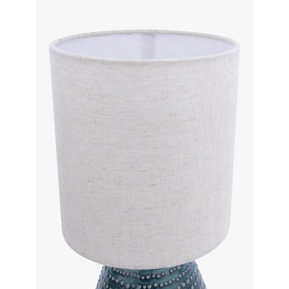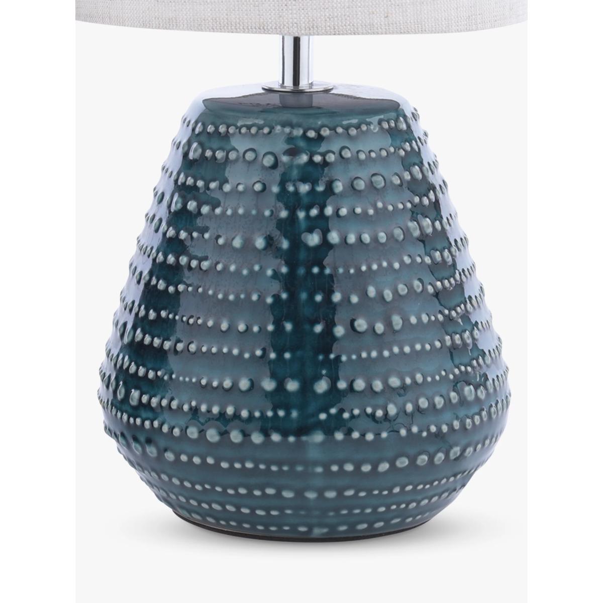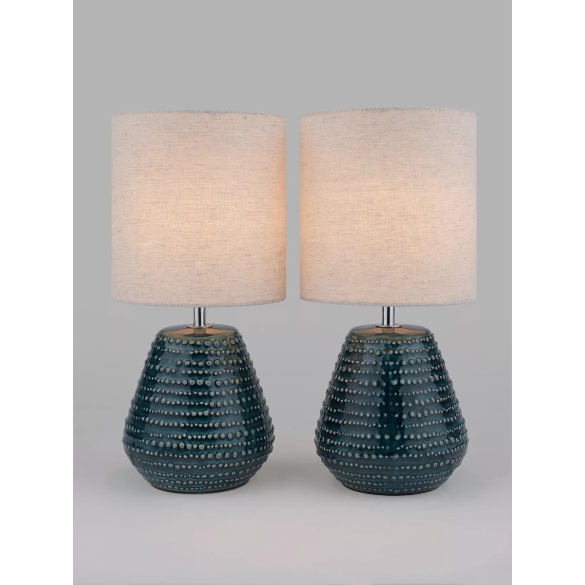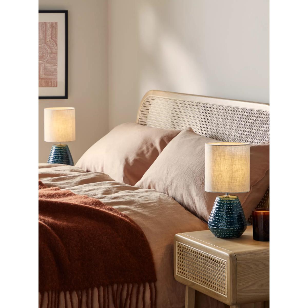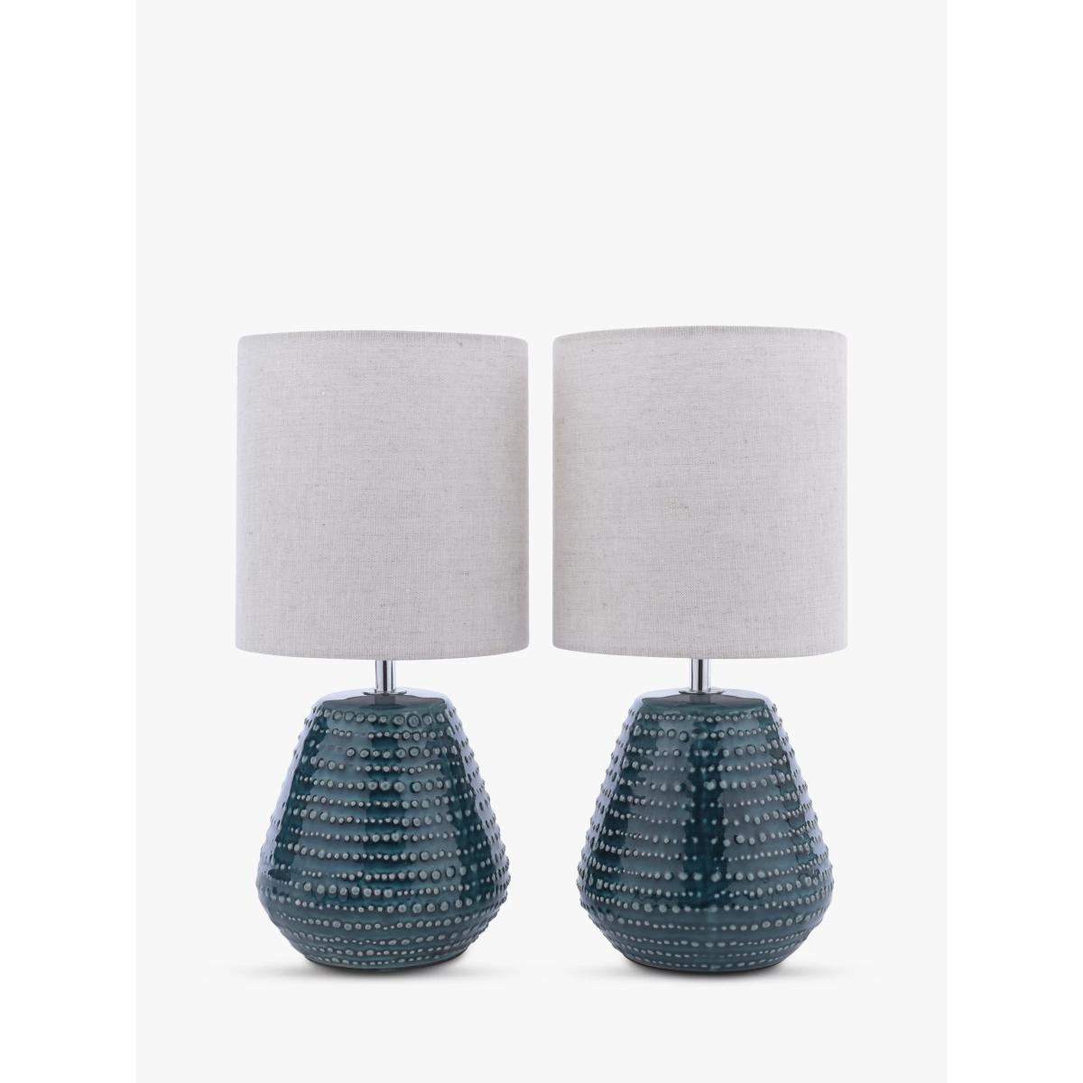 The Elwood set of two offers an eye-catching ceramic base. Finished with a stunning transparent reactive glaze which not only accentuates the textured patterned base but also adds a pop of colour. With a linen shade and fabric flex, these lamps would be fitting of any bedside table.