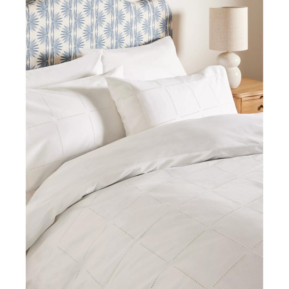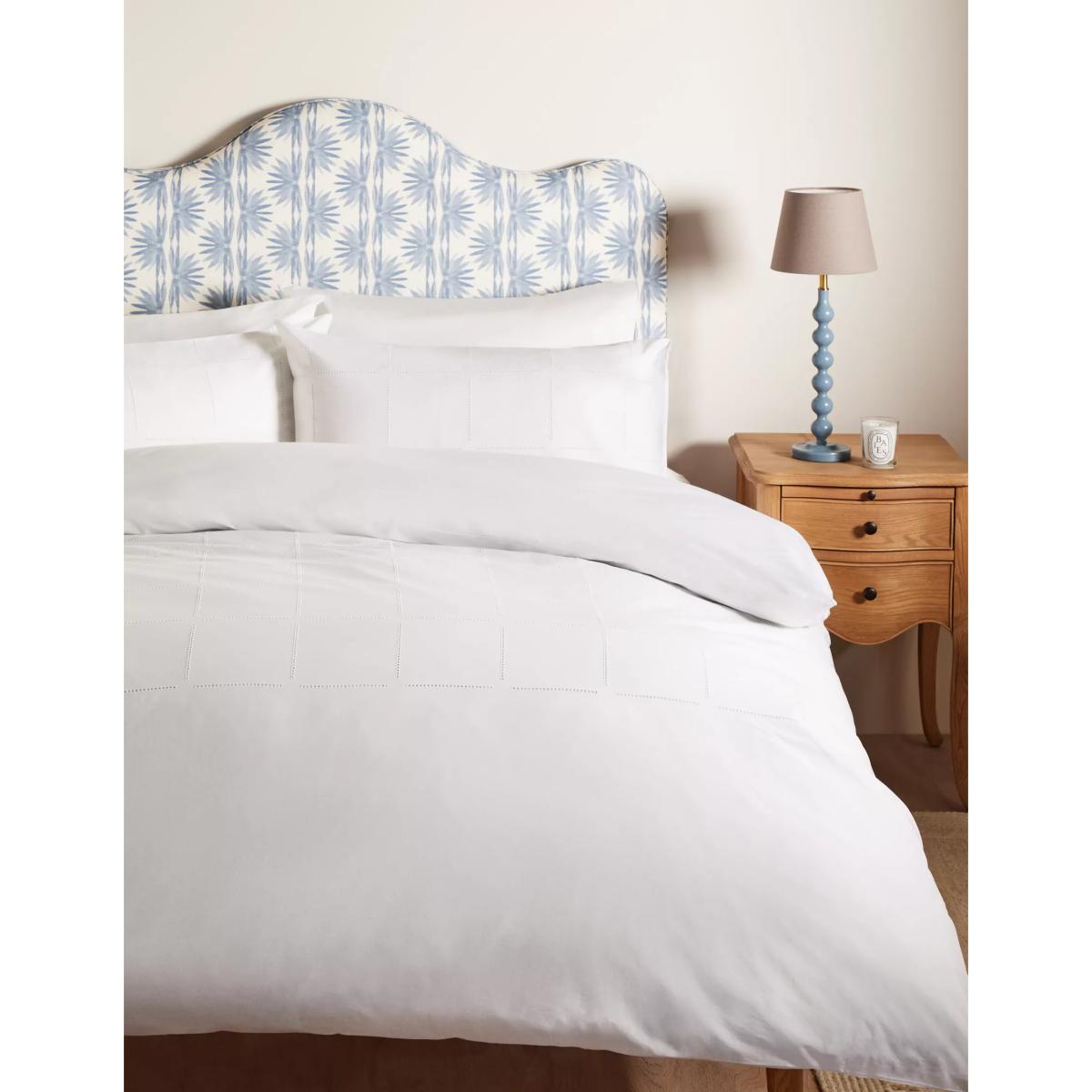 Beautiful, pure white ladder stitch embroidered bedding made from 200 thread count cotton to keep you cool and comfortable. The reverse is plain. The single set comes with one standard pillowcase, while the double, king and super king sets come with two standard pillowcases. Bedding sizes To fit duvet/pillow size (cm) Standard pillowcase, L75 x W50cm Single duvet cover, L200 x W135cm Double duvet cover, L200 x W200cm King duvet cover, L220 x W225cm Super king duvet cover, L220 x W260cm Better Cotton By choosing our cotton products, you’re supporting our investment in Better Cotton’s mission to help cotton communities survive and thrive while protecting and restoring the environment. Better Cotton Farmers are farmers who care for the environment and respect workers’ rights and wellbeing. This product is sourced via a system of mass balance and therefore may not contain Better Cotton. bettercotton.org/massbalance