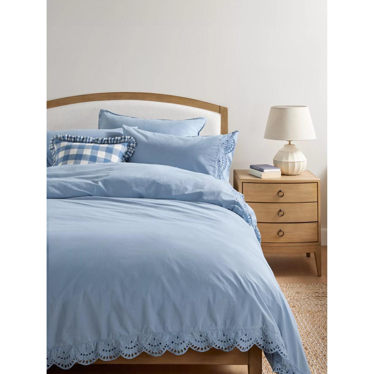 This beautiful and timeless design features a machine-embroidered edge and is made from 200-thread count cotton. The world’s most widely used natural fibre, versatile cotton makes the perfect bed linen; cool, lightweight, soft and breathable. Please note that duvet covers and pillowcases are available to purchase separately, and not in sets. Bedding sizes To fit duvet/pillow size (cm) Standard pillowcase, L75 x W50cm Single duvet cover, L200 x W135cm Double duvet cover, L200 x W200cm King duvet cover, L220 x W225cm Super king duvet cover, L220 x W260cm Better Cotton By choosing our cotton products, you’re supporting our investment in Better Cotton’s mission to help cotton communities survive and thrive while protecting and restoring the environment. Better Cotton Farmers are farmers who care for the environment and respect workers’ rights and wellbeing. This product is sourced via a system of mass balance and therefore may not contain Better Cotton. bettercotton.org/massbalance