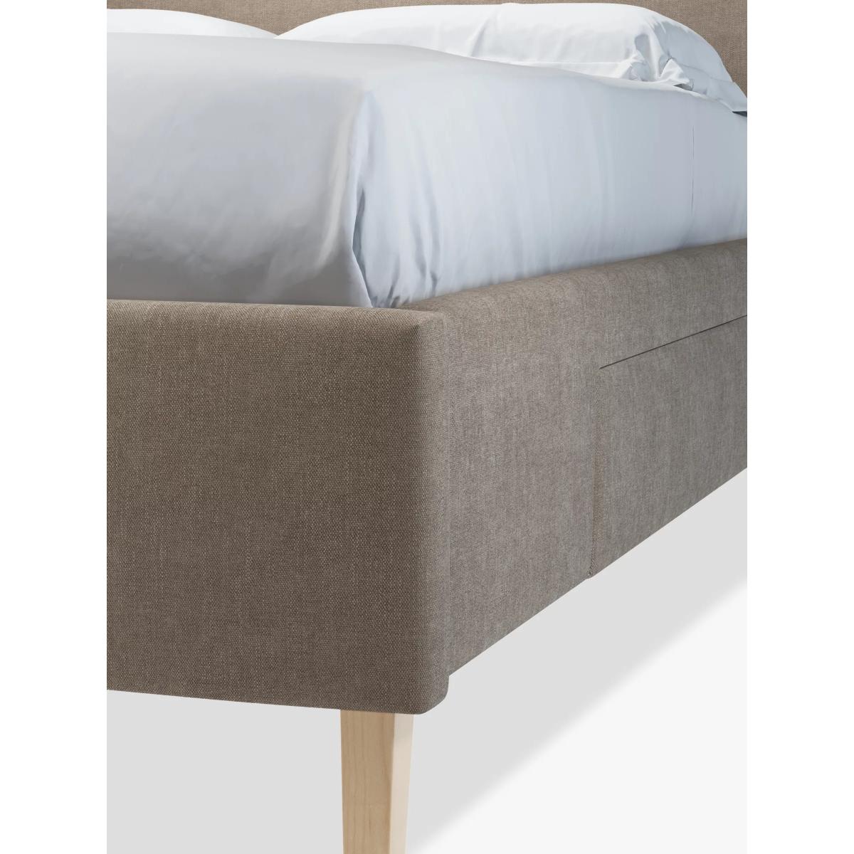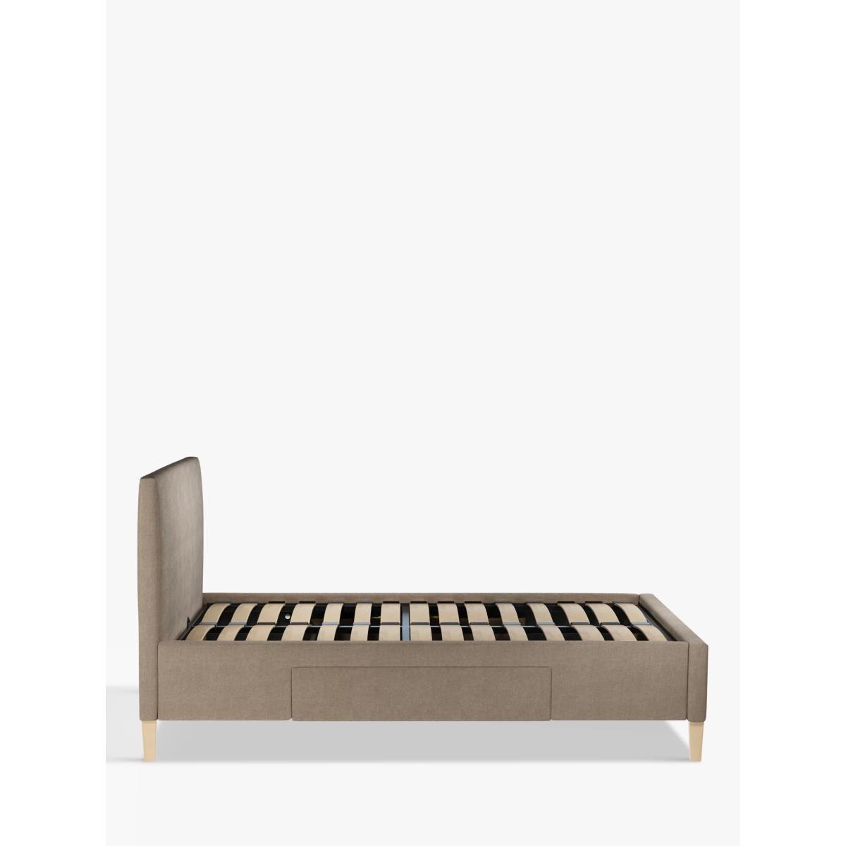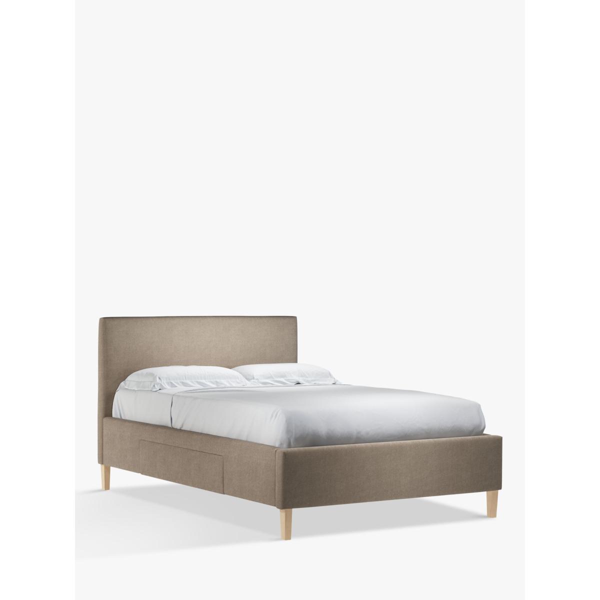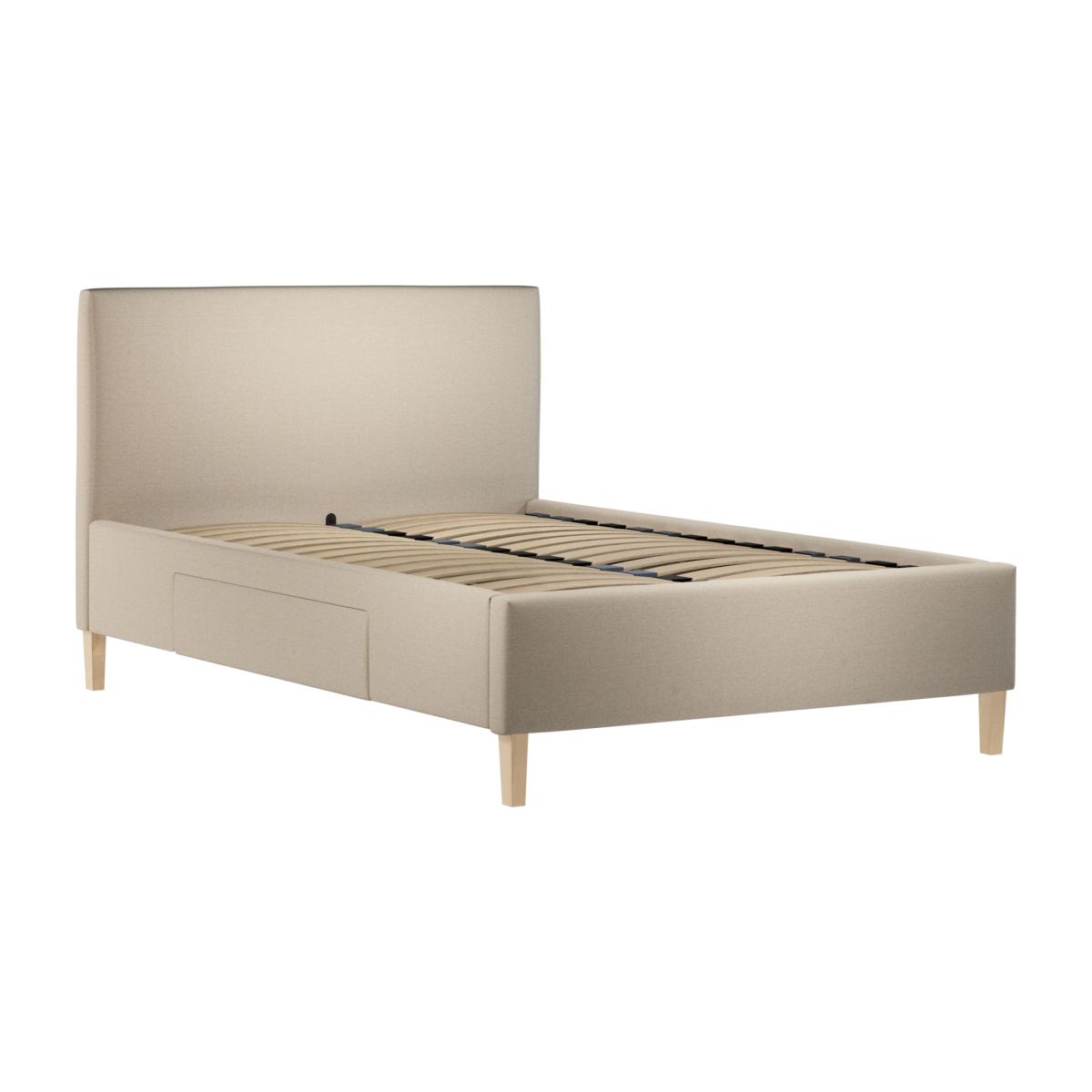 We've kept the design of our Emily storage bed frame simple and clean-lined so it's a practical choice for modern bedrooms. Easy to assemble and made from high-quality timbers, its versatile shape incorporates a large and well-padded headboard and there's a spacious, soft-close drawer on either side of the frame. We've added sprung slats in the base to provide a more supportive foundation for your mattress. Built with Smart Slats This bed frame is designed with wider slats at the shoulders, lumbar and feet. They provide maximum support for you and your mattress so that you experience perfect spinal alignment while you sleep. The standard slat caps are black so we have added grey slat caps to ensure that you know where to place the wider slats. Choose from one of our fabrics: Our Band A fabric, Cotton Effect has a laid-back and fine-textured look that looks like cotton, but it's made from durable polyester fibres Our Band A fabric, Brushed Tweed is made with a brushed herringbone weave that has a cosy wool look and soft 'peach skin' feel. It's really hard-wearing and a brilliant all-rounder Our Band A fabric, Soft Weave has a casual cotton look with a brushed finish that's soft-to-touch and a suble texture that's created by slight variations in the tones of the woven fibres Our Band B fabric, Deep Velvet will bring warmth and luxury to your bedroom. It's a short pile velvet with a soft, plush feel Our Band B fabric, Soft Touch Chenille is made from a blend of fibres that give it a super-soft feel and added durability Our Band B fabric, Boucle is luxe and oh-so cosy. This plush knitted fabric is super-soft and durable with a thick texture that calls for comfort Our Band B fabric, Deep Velvet will bring warmth and luxury to your bedroom. It's a short pile velvet with a soft, plush feel Our Band B fabric, Mole is a soft and cosy woven wool-blend. Piling and bobbling may occur naturally over time Our Band B fabric, Cord is rich in texture and available in neutral shades that will suit every space. Our Band B fabric, Relaxed Linen gives you the fine texture of cotton, the durability of synthetic fibres and the laid-back look of linen Our Band C fabric, Marylamb is woven from both man-made and natural fibres, creating a tactile and soft-touch feel. Our Band C fabric, Aquaclean Velvet will liven up your bedroom. It's plush, available in a range of bold colours and treated with Aquaclean so that it can be wiped clean with just water. A smart choice for families and those with pets Want to see it first? You may want to see and get a feel for the furniture before ordering. Pop into one of our shops to see the full range of colours and fabrics on offer. We'll be able to tell you where the range you'd like to view is on display.