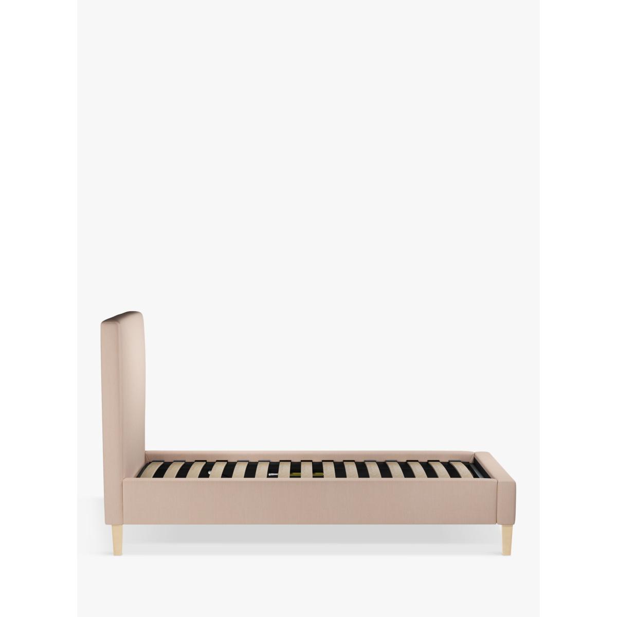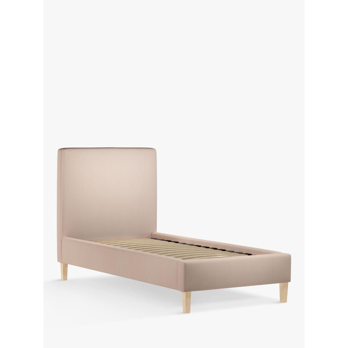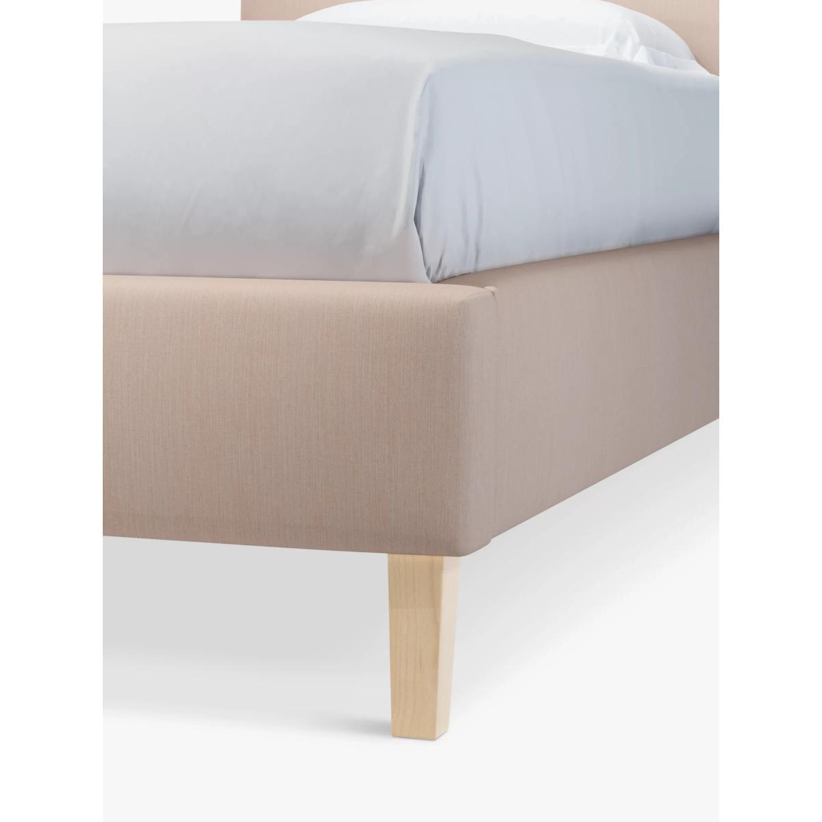 The Emily bed frame is a simple and versatile option for modern settings. With a clean-lined shape and large headboard, it can be upholstered in a fabric of your choice. It's supported by minimalist wooden legs and has supportive, sprung slats in the base. Built with Smart Slats This bed frame is designed with wider slats at the shoulders, lumbar and feet. They provide maximum support for you and your mattress so that you experience perfect spinal alignment while you sleep. The standard slat caps are black so we have added grey slat caps to ensure that you know where to place the wider slats. Choose from one of our fabrics: Our Band A fabric, Cotton Effect has a laid-back and fine-textured look that looks like cotton, but it's made from durable polyester fibres Our Band A fabric, Brushed Tweed is made with a brushed herringbone weave that has a cosy wool look and soft 'peach skin' feel. It's really hard-wearing and a brilliant all-rounder Our Band B fabric, Soft Touch Chenille is made from a blend of fibres that give it a super-soft feel and added durability Our Band B fabric, Deep Velvet will bring warmth and luxury to your bedroom. It's a short pile velvet with a soft, plush feel Our Band B fabric, Mole is a soft and cosy woven wool-blend. Piling and bobbling may occur naturally over time Our Band B fabric, Relaxed Linen gives you the fine texture of cotton, the durability of synthetic fibres and the laid-back look of linen Our Band C fabric, Aquaclean Velvet will liven up your bedroom. It's plush, available in a range of bold colours and treated with Aquaclean so that it can be wiped clean with just water. A smart choice for families and those with pets Worth Knowing: Child Compliant bed frames This bed conforms to BS 8509:2008+A1:2011 (Childrens beds for domestic use. Safety requirements and test methods). We recommend it is used with a standard single mattress, L190 x W90cm. Not suitable for children under the age of 4 years. Want to see it first? You may want to see and get a feel for the furniture before ordering. Pop into one of our shops to see the full range of colours and fabrics on offer. We'll be able to tell you where the range you'd like to view is on display.