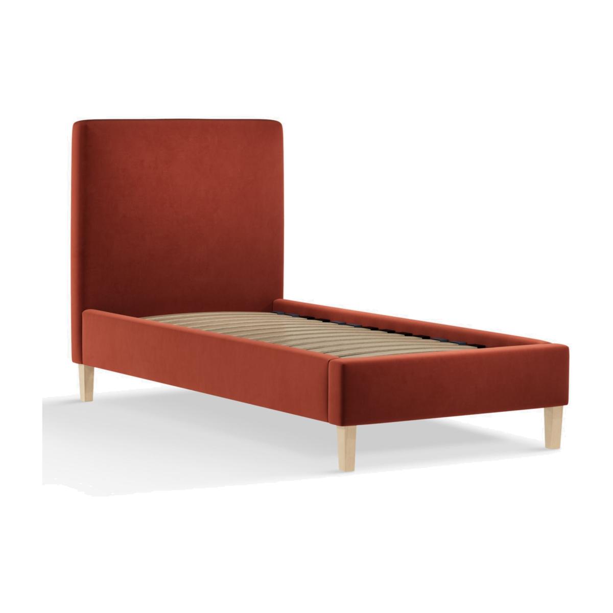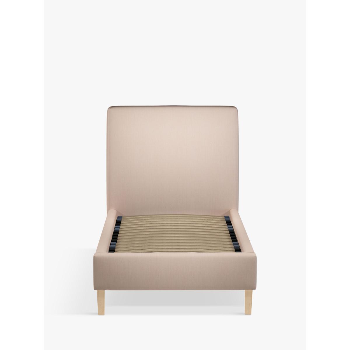 The Emily bed frame is a simple and versatile option for modern settings. With a clean-lined shape and large headboard, it can be upholstered in a fabric of your choice. It's supported by minimalist wooden legs and has supportive, sprung slats in the base. Assembly service Our assembly service is included in the selling price for our Made to Order beds. At the same time as delivery, we'll build your new bed and place it in your room of choice. We'll take away all of the packaging too, for recycling. Built with Smart SlatsThis bed frame is designed with wider slats at the shoulders, lumbar and feet. They provide maximum support for you and your mattress so that you experience perfect spinal alignment while you sleep. The standard slat caps are black so we have added grey slat caps to ensure that you know where to place the wider slats. Choose from one of our fabrics: Our Band A fabric, Cotton Effect has a laid-back and fine-textured look that looks like cotton, but it's made from durable polyester fibres Our Band A fabric, Brushed Tweed is made with a brushed herringbone weave that has a cosy wool look and soft 'peach skin' feel. It's really hard-wearing and a brilliant all-rounder Our Band B fabric, Soft Touch Chenille is made from a blend of fibres that give it a super-soft feel and added durability Our Band B fabric, Deep Velvet will bring warmth and luxury to your bedroom. It's a short pile velvet with a soft, plush feel Our Band B fabric, Mole is a soft and cosy woven wool-blend. Piling and bobbling may occur naturally over time Our Band B fabric, Relaxed Linen gives you the fine texture of cotton, the durability of synthetic fibres and the laid-back look of linen Our Band C fabric, Aquaclean Velvet will liven up your bedroom. It's plush, available in a range of bold colours and treated with Aquaclean so that it can be wiped clean with just water. A smart choice for families and those with pets Worth Knowing: Child Compliant bed frames This bed conforms to BS 8509:2008+A1:2011 (Childrens beds for domestic use. Safety requirements and test methods). We recommend it is used with a standard single mattress, L190 x W90cm. Not suitable for children under the age of 4 years. Want to see it first? You may want to see and get a feel for the furniture before ordering. Pop into one of our shops to see the full range of colours and fabrics on offer. We'll be able to tell you where the range you'd like to view is on display.